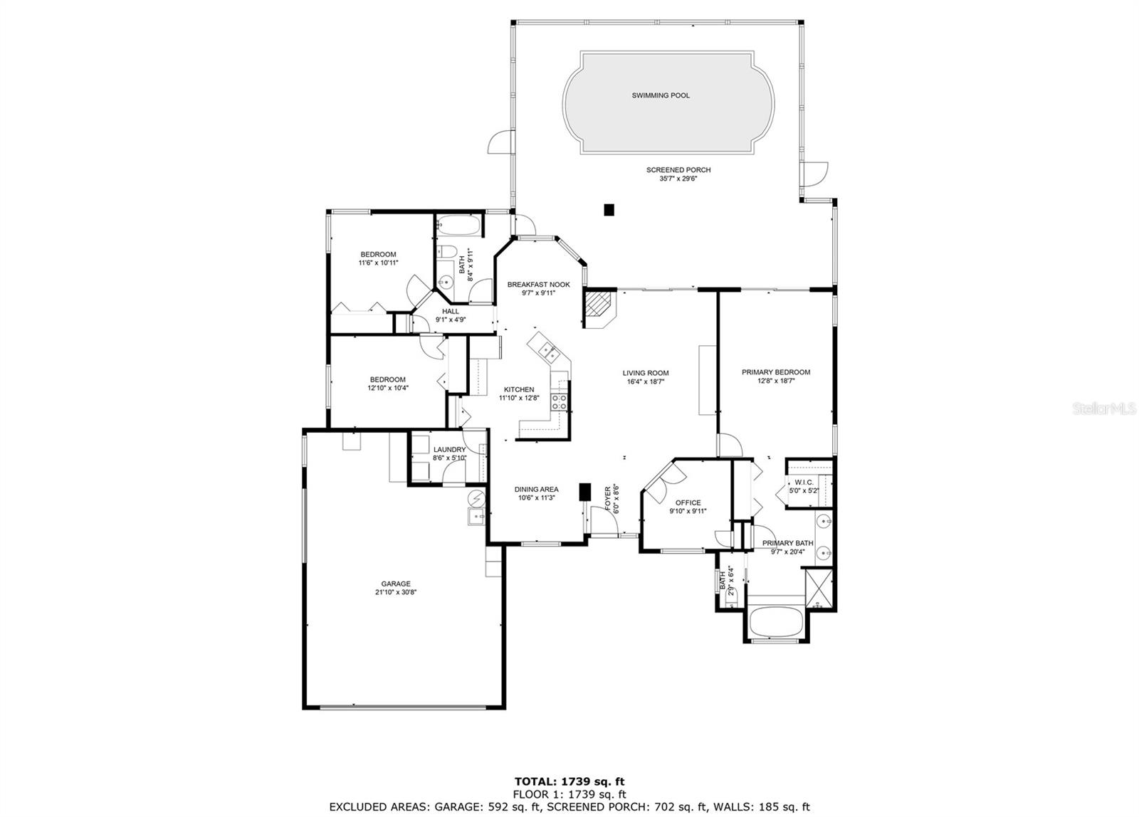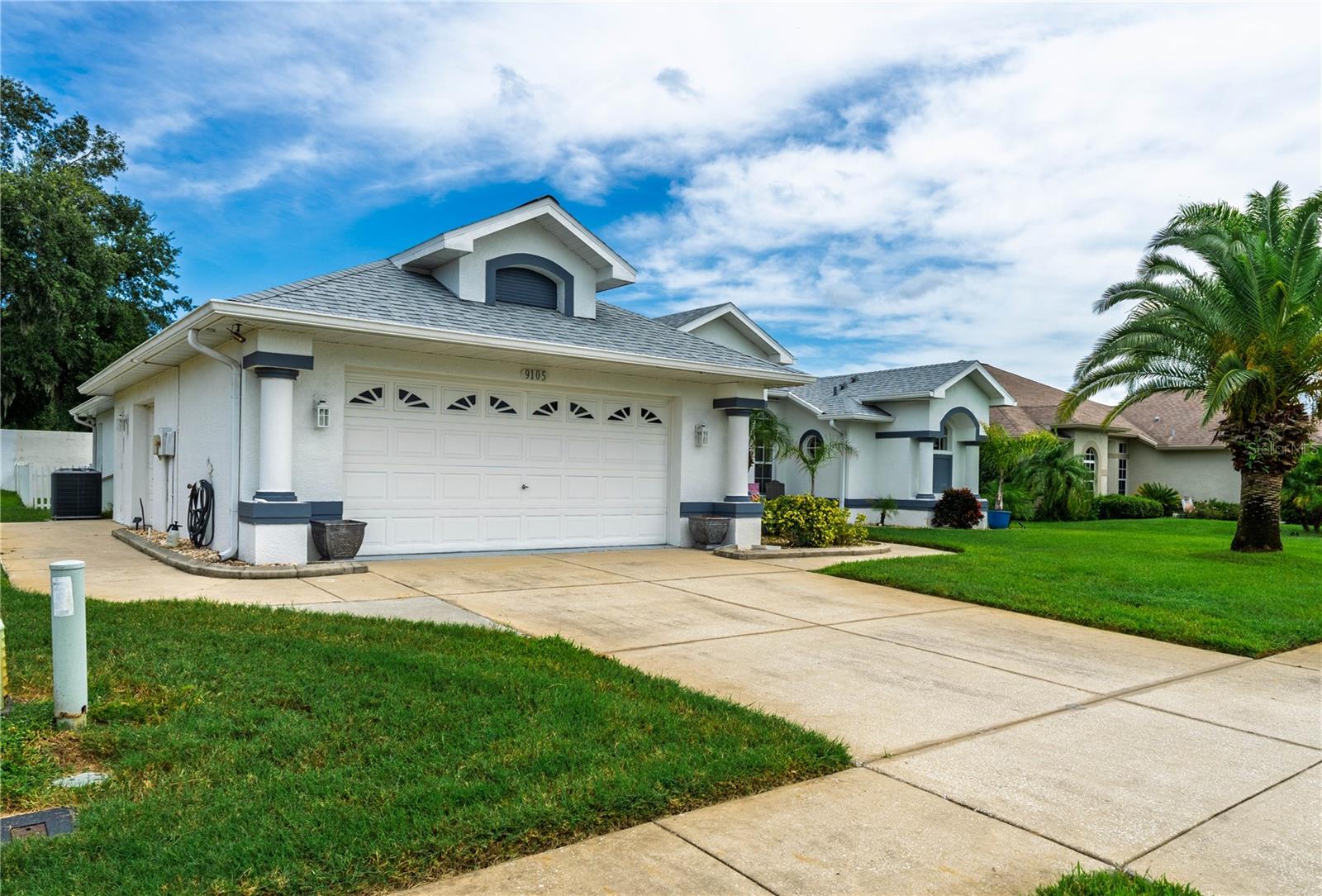 Welcome to Woodland Oaks, a charming community of just 37 homes tucked away in Hudson. With no CDD fees and a low HOA of only $147 per quarter, this neighborhood offers both privacy and convenience just off Little Road. This well maintained home is filled with thoughtful updates, including a new roof 2021 with 25 year transferable warranty, AC 2020, hurricane-rated windows, and a new gas pool heater and screen enclosure. The washer and dryer 2022, water softener 2019, and professionally finished epoxy garage floors make this home move-in ready. The side entry garage even includes a third bay, ideal for golf cart parking and lots of room for storeage. Inside, this home offers a split floor plan with the primary bedroom on the opposite side of the home. The primary bedroom is designed for comfort and functionality, with a beautiful view of the pool with its own sliding glass doors to the pool area. The spacious primary suite also features two walk-in closets and a generous ensuite bath. On the other side of the home are two guest bedrooms and large shared second bath that also doubles as a convenient pool bath. A formal dining area provides the perfect spot for hosting, while the oversized sliding glass doors fill the living spaces with natural light and showcase the sparkling pool. The kitchen offers an additional eat in area with laundry room off the kitchen. The home has an extra room that could be used for office/bonus room/nursery. Step outside to your own fenced backyard retreat — a screened, gas-heated pool perfect for year round enjoyment. Whether it’s morning coffee poolside or entertaining friends for dinner, this outdoor space is made for relaxing. Plus, the easy to program Toro irrigation will keeps your lawn green without affecting your water bill. Custom easy to install aluminum hurricane shutters are also included. Has had previous ground settlement that was completely remediated and insured. Nestled in one of Hudson’s best-kept secrets, this home combines quiet residential living with quick access to shopping, dining, hospitals and the coast — all just minutes away.