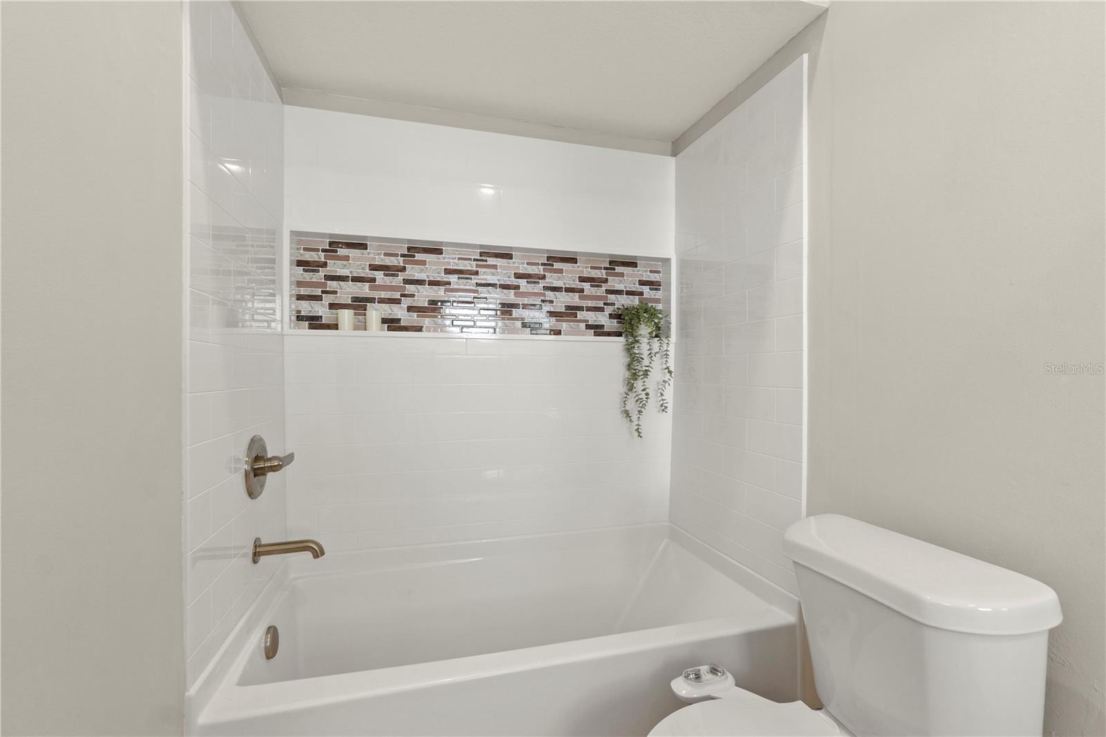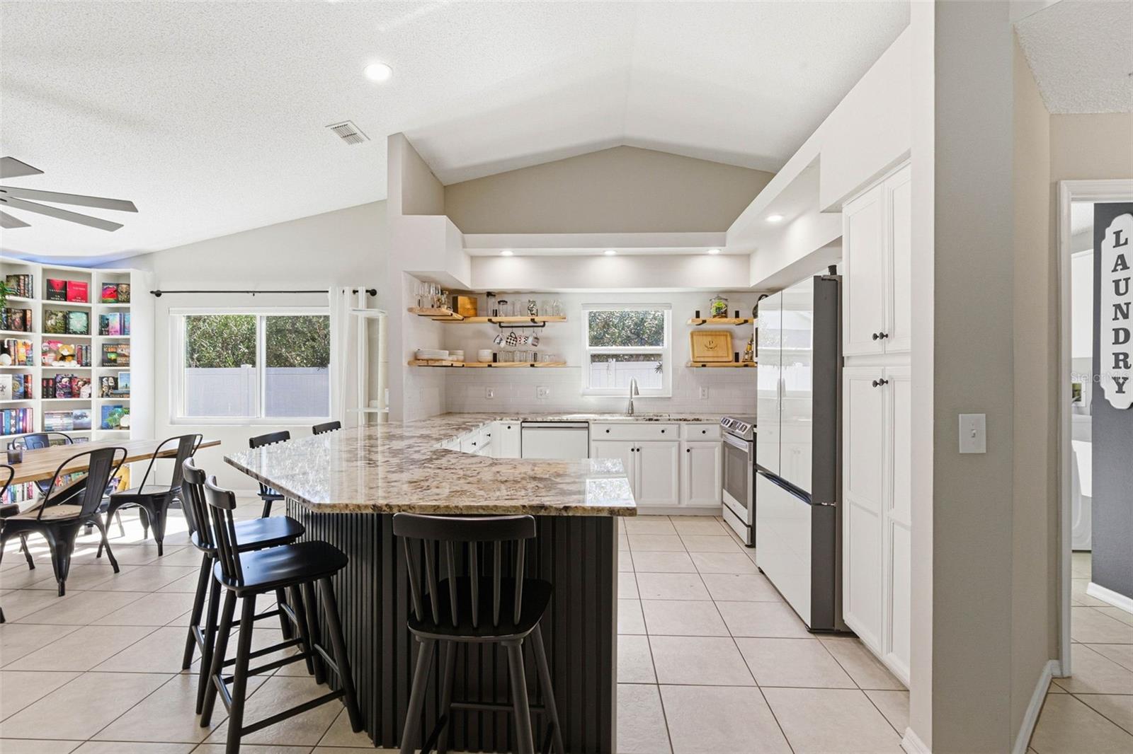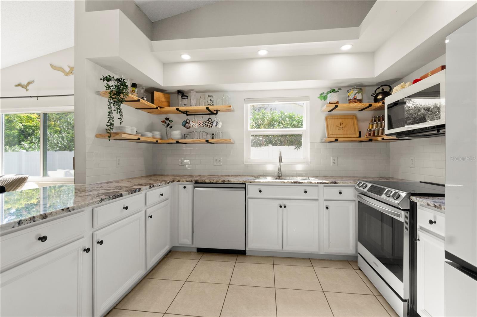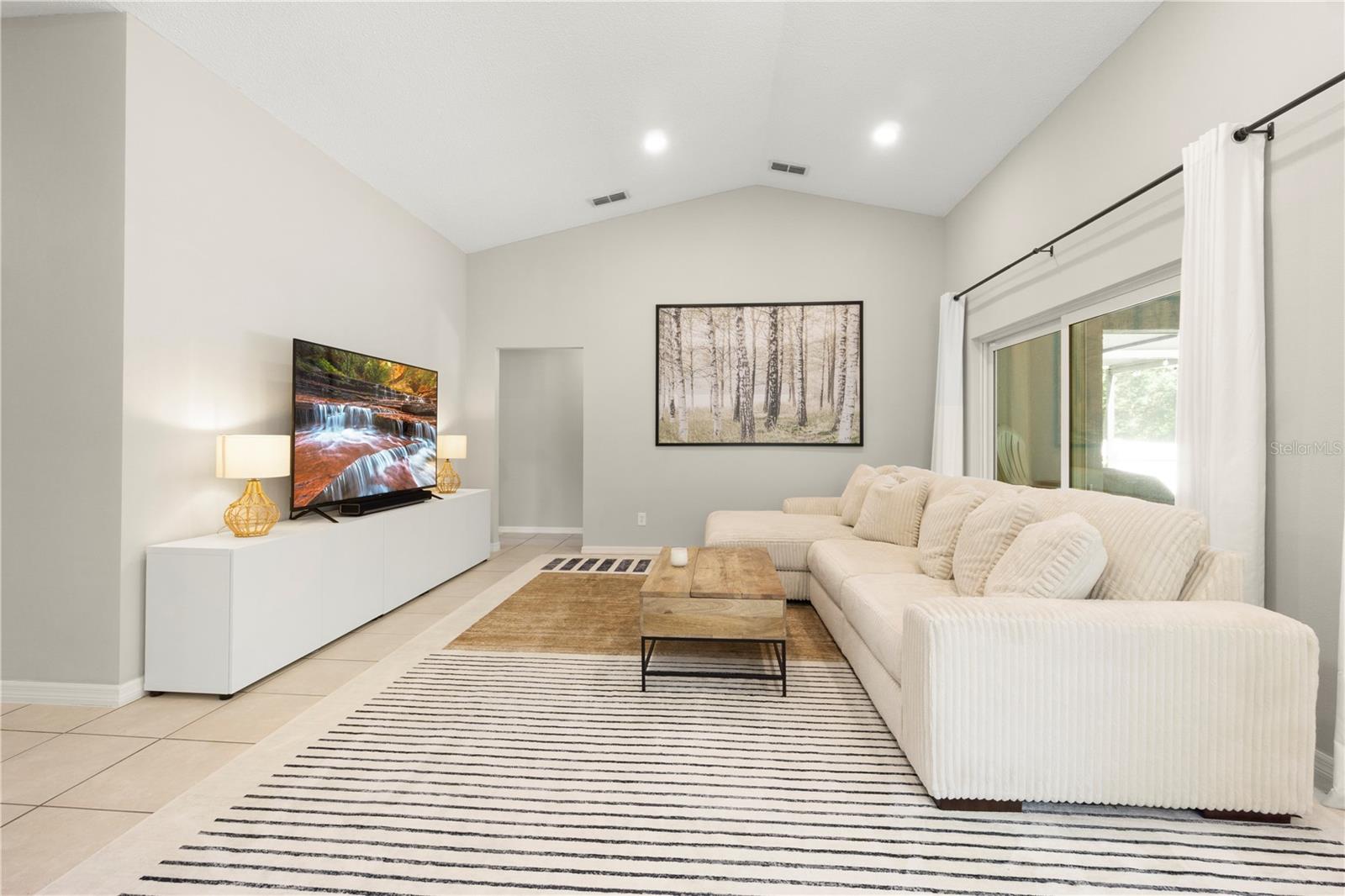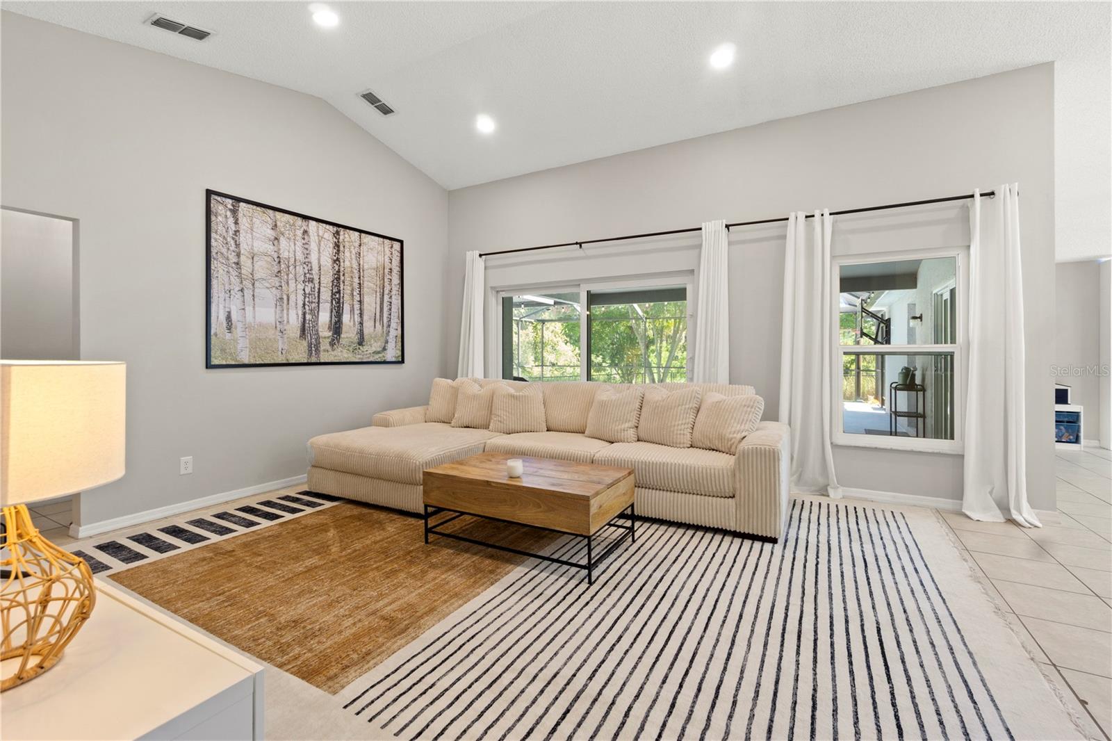 Welcome to this beautifully updated and move-in-ready home located in a desirable low-HOA community. This versatile property offers 3 bedrooms, 3.5 bathrooms, plus a spacious office that can easily serve as a 4th bedroom. A rare private studio apartment with separate entrance, full bath, and kitchenette (no range) makes this home ideal for multigenerational living, guests, or potential rental income. The main home features an open and elegant layout with vaulted ceilings, designer lighting, and a fully remodeled kitchen showcasing open shelving and new appliances, perfect for entertaining. The large living room provides ample space for relaxing and gatherings. The primary suite opens directly to the pool and includes a spa-inspired bath with a brand-new soaking tub and walk-in shower. Secondary bedrooms are generously sized and filled with natural light. Step outside to your private resort-style saltwater pool, recently resurfaced, with new pump and salt system, all overlooking a serene bird preservation area with no rear neighbors. The fully fenced backyard, expansive patio, and screened-in pool offering exceptional privacy and the perfect Florida lifestyle. Major upgrades include: • New roof, A/C, and water heater (2021) • Hurricane impact windows and doors with lifetime warranty (2024) • Fully remodeled kitchen and bathrooms (2024) • Pool resurfaced (2023); new pump and salt system (2024) • Fresh interior and exterior paint (2024) • Finished garage with epoxy floors and insulated door (2025) • New vinyl fence with double gate (2025) Conveniently located just ½ mile from Veterans Memorial Park, featuring a new playground and seasonal splash pad, with sidewalks and walking trails throughout the neighborhood. This home offers comfort, flexibility, privacy, and peace of mind. Schedule your private showing today.