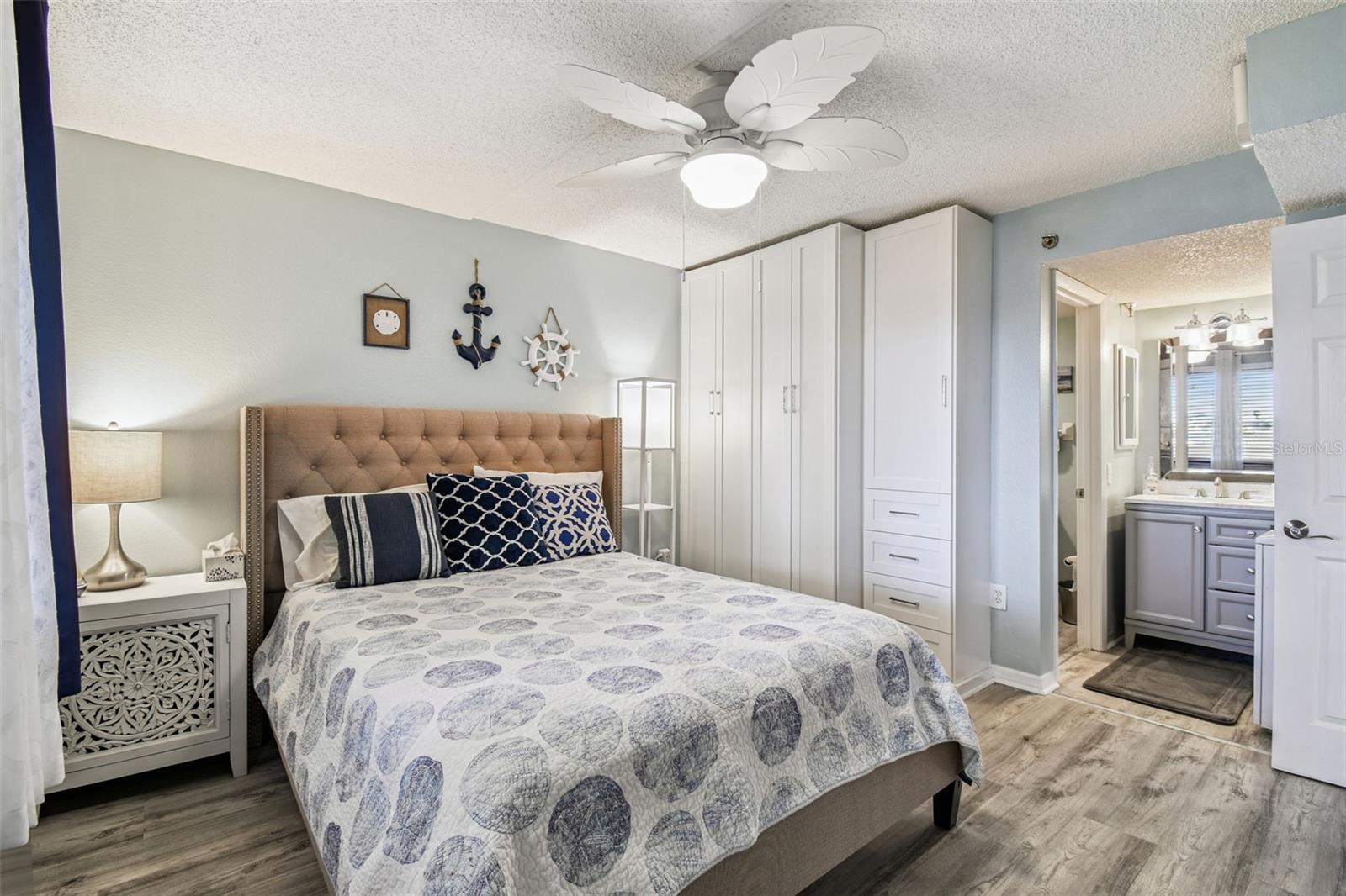 Welcome to Paradise! Stunning remodeled 1st floor condo on the Gulf of Mexico is beautifully designed with new furniture, new appliances, new washer/dryer, and new bathrooms. Designer features include: Stainless steel appliances, granite and shaker style cabinets in the kitchen, continuous laminate flooring throughout, beautifully tiled master walk in shower, updated vanities, updated and modern lightning, custom built-in wardrobe in the 2nd bedroom, hurricane impact sliders, and a cabinet murphy bed in the living room. This condo is being sold fully furnished and ready to move in! Gulf Island Beach and Tennis Club Complex is a resort-style community offering a private beach, heated swimming pool just steps from the unit, barbecue facilities, tennis courts, and clubhouse. Association fee includes water, trash, Spectrum cable TV and in-unit WiFi. Community Features: 24hr Guard, Heated Olympic sized pool, clubhouse, game room and fitness center, tennis/pickleball courts, private beach, lagoon, BBQ areas & nature trail! Access to community workshop with drill press, table saw, benches, etc. Gulf Island Beach & Tennis Club is truly the hidden GEM of Pasco County, this community offers residents and owners an active waterfront lifestyle. Community has undergone many improvements within the last 4 years, new breezeway flooring, new elevators, roof improvements, new pool liner, new pool furniture, new carpet in the clubhouse, and repaved parking lots.