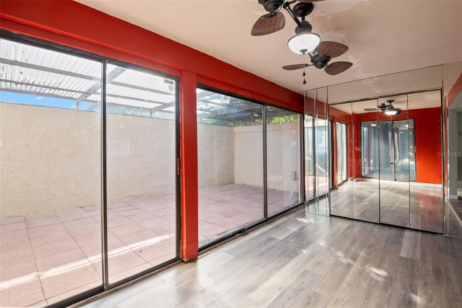 Welcome to a beautifully designed Mediterranean-style two-story patio home nestled at the end of a quiet cul-de-sac in the desirable Beacon Woods Village community of Hudson. With approximately 1,876 square feet of living space, this 3-bed, 2½-bath residence features a spacious 2-car garage, trailer/boat parking capacity, and an expanded driveway for additional vehicles. A gated wrought-iron front courtyard creates an inviting sense of privacy as you approach the double-door entry. Inside, the open floorplan is filled with natural light from multiple glass doors and large windows that connect the living areas with the outdoors. The main level includes a full-sized primary suite with its own bathroom and walk-in closet, offering convenient one-level living. Upstairs, two generously sized bedrooms and a full bathroom form a separate upper-level wing ideal for guests or additional living space. Outdoor living is a highlight here: three sets of sliding doors lead to a screened paver patio, and both front and rear courtyards provide beautifully enclosed spaces perfect for dining, relaxing, or entertaining. The home sits on a low-maintenance corner lot in a quiet cul-de-sac and enjoys access to community amenities including a clubhouse, pool, tennis courts, basketball courts, and nearby public golf. Combining privacy, space, and an adaptable layout, this Hudson home offers excellent comfort and lifestyle appeal in the 34667 area. Property is being sold “AS-IS” with right to inspect. It is the buyers and buyer’s agent responsibility to verify all room measurements, utilities info, lot size, schools zoning, building addition permits, building materials, along with all property information in this listing. All room measurements and dimensions are estimates.