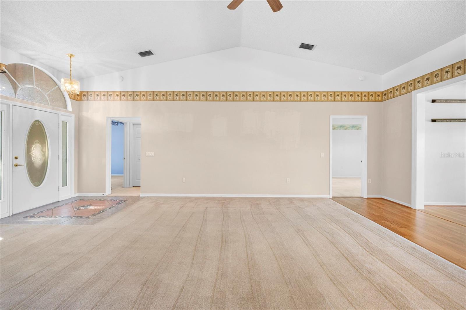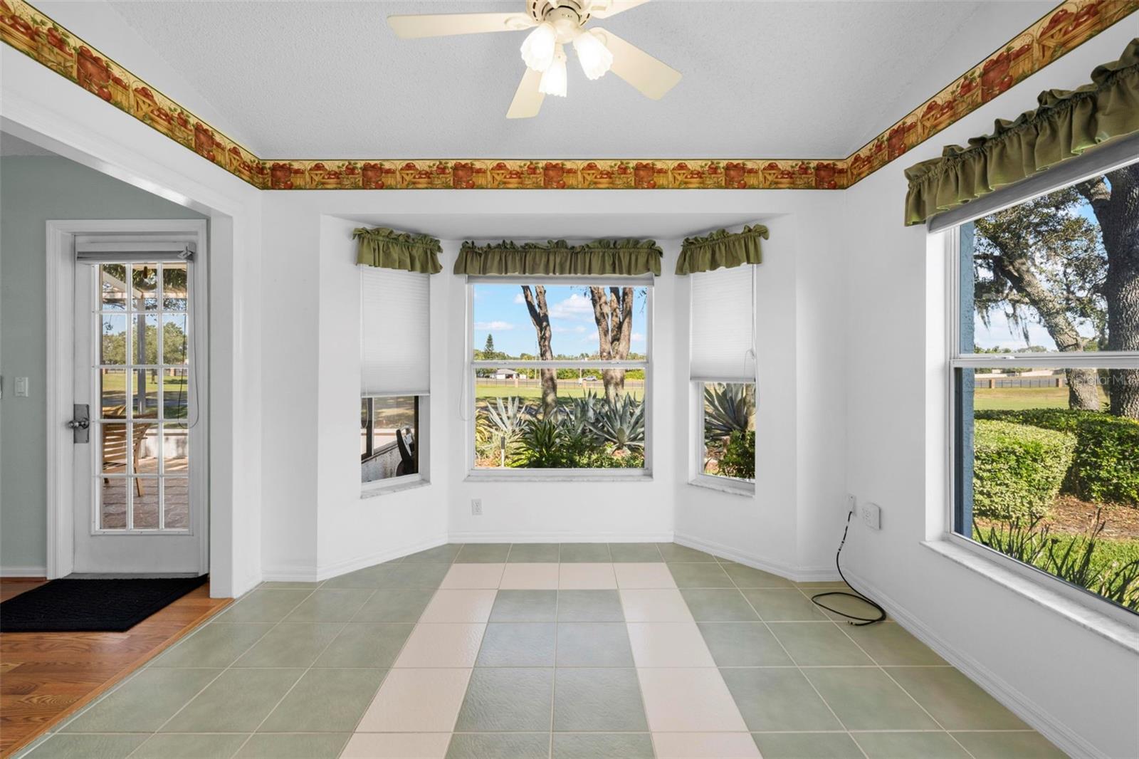 Discover refined golf-course living at 11231 Sun Tree Rd, located within an active-adult golf community. This well-maintained single-level home offers 3 bedrooms, 2 bathrooms and approximately 2,119 square feet of thoughtfully designed living space on a 7,405 square foot homesite. The open living and dining area features a mirrored accent wall that enhances natural light and creates a spacious feel. The primary bedroom includes a bay window with golf-course views, two walk-in closets, and an ensuite bathroom with dual sinks, a walk-in shower, vaulted ceiling and jetted tub. The guest bedroom includes an adjoining full bathroom, and the third bedroom/den plus separate study offer additional flexibility for office, hobby or guest needs. The bright kitchen provides ample cabinet and counter space and opens to a breakfast area overlooking the fairway. A Florida room offers additional living space for media or casual seating. The large screened and tiled lanai is shaded by mature oak trees and overlooks the golf course, providing a relaxing outdoor setting. Additional features include an extended garage with storage cabinets, interior laundry area and side-entry door. Major updates include HVAC (2024), roof (2018) and water heater (2021). This property offers a comfortable year-round or seasonal living opportunity in a well-established golf community with an active lifestyle setting.