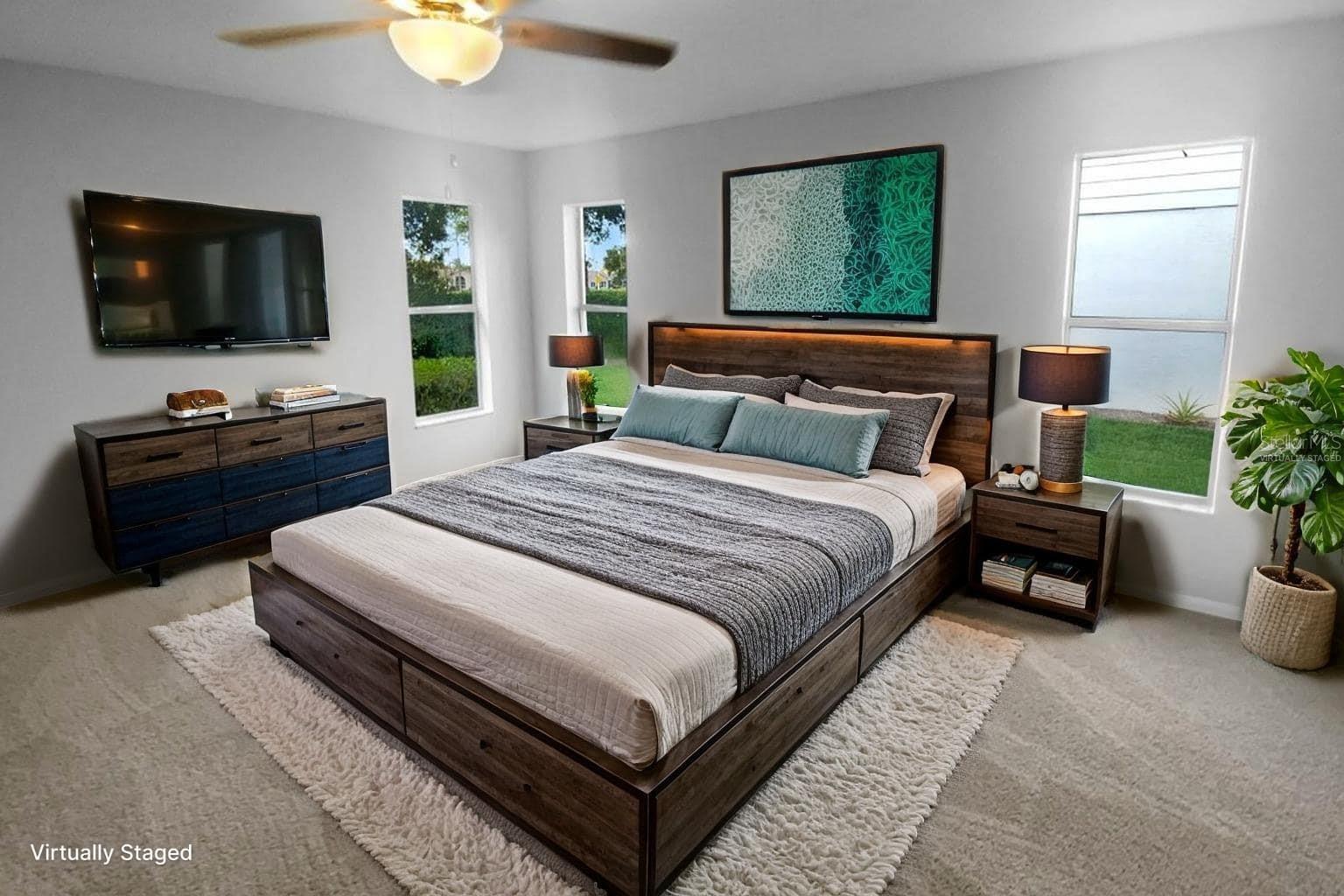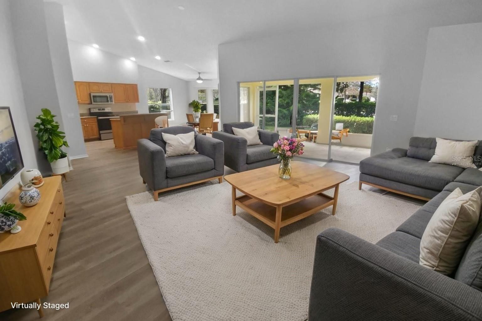 One or more photo(s) has been virtually staged. Welcome home to this beautifully maintained 3-bedroom, 2-bathroom, 2-car garage residence located in the highly desirable Heritage Pines Village 55+ community! This vibrant, golf cart–friendly community offers an array of amenities including a sparkling community pool, on-site restaurant, clubhouse activities, and so much more—perfect for those seeking an active and relaxing lifestyle. Step inside and you’ll immediately appreciate the bright, open layout enhanced by a neutral color palette and abundant natural light. The living room features soaring ceilings and expansive sliding glass doors that create a seamless indoor-outdoor flow. Just beyond the sliders, you’ll find a peaceful screened-in porch—an ideal space to unwind and enjoy your mornings or evenings in comfort. The home boasts a chef’s dream kitchen equipped with stainless steel appliances, granite countertops, bar seating, and a cozy breakfast nook—perfect for casual dining. A generously sized laundry room with a utility sink adds to the home’s convenience and functionality. The spacious primary suite includes a large walk-in closet and an ensuite bathroom featuring dual vanities and a walk-in shower. The third bedroom offers direct access to the primary bathroom, making it a great option for a home office, den, or guest room. Conveniently located near restaurants, entertainment, shopping, and medical facilities, this home offers both comfort and accessibility. Don’t miss the opportunity to make this wonderful property yours—schedule your private showing today!
