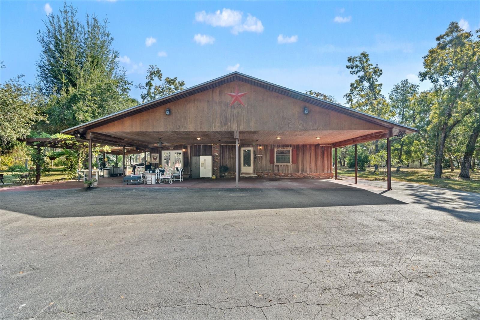 Two homes on this one-of-a-kind custom estate on 10 beautiful acre; a perfect blend of craftsmanship and character with an income-producing opportunity. The main home is a 3-bed, 2-bath custom home was built with extraordinary attention to detail. The kitchen features antique brick sourced from historic Ybor City and handcrafted cabinets made from North Florida pecan trees. In the living room, locally harvested from Moon Lake cypress beams complement the stunning North Carolina rock fireplace, all set atop hardwood floors. The master suite is a warm, inviting retreat lined with cedar and rare wormy chestnut boards. The custom bathroom includes walnut accents and a handcrafted double-sink vanity. Rockwork from northern New York surrounds the jacuzzi and shower, while the guest bathroom highlights additional North Carolina stone around a custom-made tub. The second home, is a fully furnished manufactured home that is currently being used as an Airbnb. It's a 3-bed, 2-bath house with a carport, offering immediate income potential or it can be used as a in-law suite. The estate also includes a full horse-boarding facility with 11 paddocks, 4 pastures, 6 stalls, a barn, and additional supporting structures which are ideal for continuing the property’s successful history of boarding revenue. Two garages/workshops provide ample space for equipment, hobbies, or business use. Outdoors, enjoy an orchard, nursery, goldfish pond, and a hydroponic greenhouse complete with tilapia. This property offers exceptional craftsmanship, natural beauty, and proven income streams through both Airbnb and horse boarding, a rare opportunity you won’t want to miss. Whether you would like to have the property for your future homestead or as an income producing property, this one has it all. Schedule your showing today!