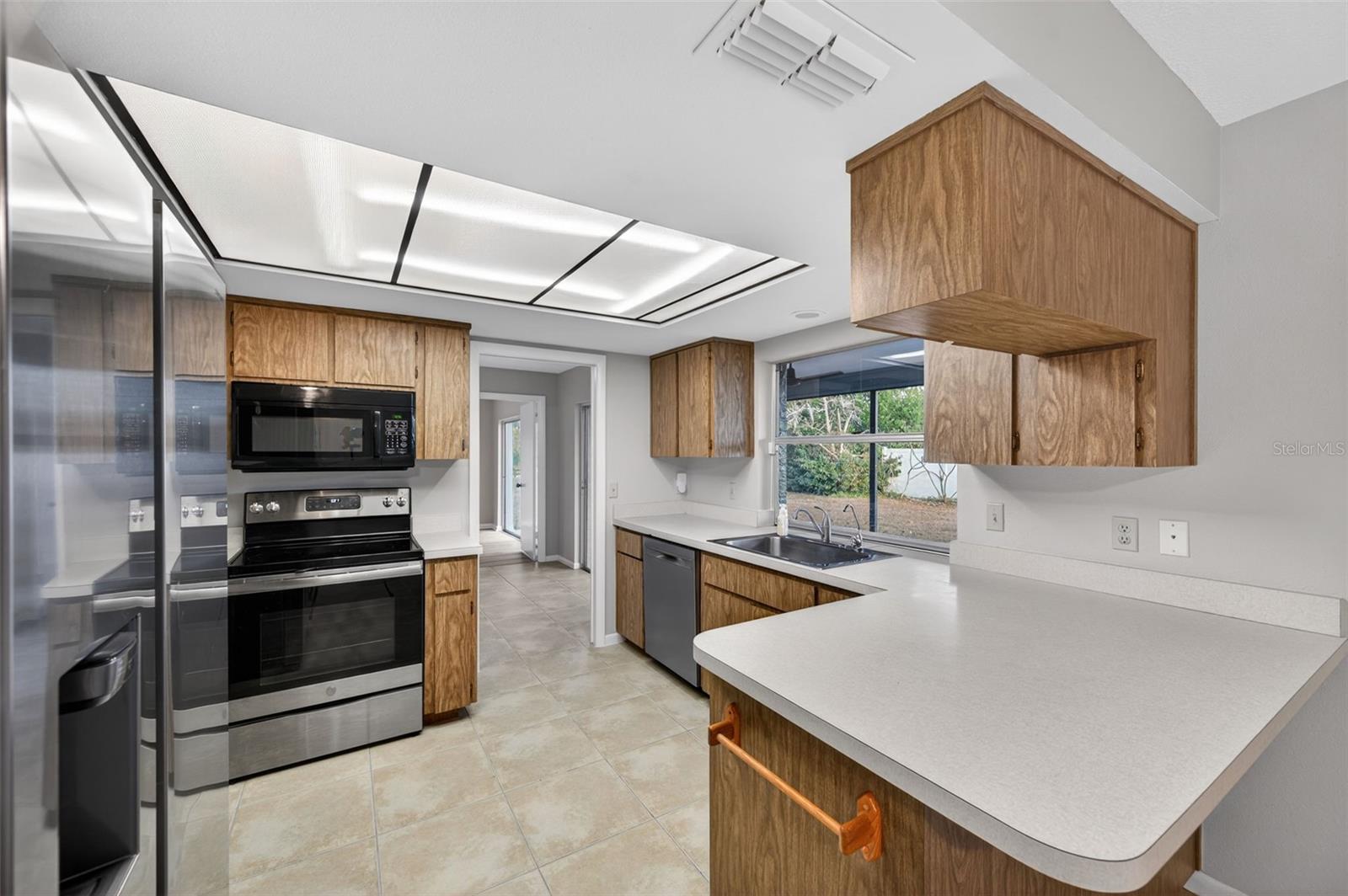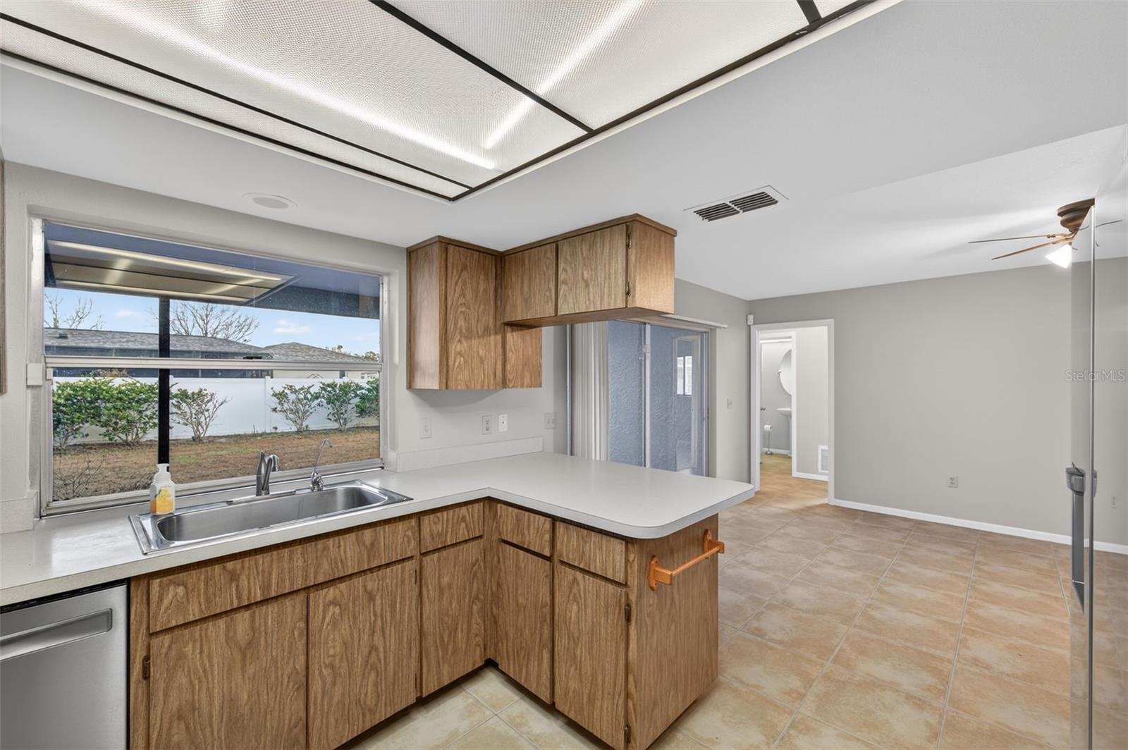 PEACEFUL SETTING & CURB APPEAL. Well maintained concrete block home situated at the end of a quiet cul-de-sac, providing a tranquil environment. Wide, roomy streets and sidewalks throughout the neighborhood provide an open and inviting feel, perfect for leisurely walks and enjoying the surroundings. Upon entering the community, decorative flags surround the central pond, offering a charming first impression just off Lake Shore Boulevard. 3 bedrooms, 2 bathrooms with a two-car garage offers 1,590 square feet of heated living space and approximately 2,480 square feet total under roof, situated on a just under quarter acre lot in a non-required flood zone. Major updates include a NEW ROOF installed in January 2026, along with FULL INTERIOR & EXTERIOR painting completed January 2026. All ceilings have had the popcorn finish REMOVED and replaced with a modern texture. New electrical ceiling fans were installed in the primary bedroom and living room. A Sentricon termite bait system was installed in 2024. Features to consider; The home has multiple pocket doors thoughtfully placed throughout, providing flexibility and privacy, offering a quiet retreat when desired. There are gutters and downspouts, exterior flood lighting, and decorative pavers located just off the primary bedroom. Glass sliding doors provide natural light and seamless outdoor access from the dining area, kitchen, and guest bedroom. The eat-in kitchen offers a comfortable casual dining space. UPGRADED kitchen appliances. The garage has a freshly painted floor and includes an automatic garage door opener, a utility sink, and a convenient side access door. The primary bedroom features a private bathroom, walk-in closet measuring at approximately 10x 6 along with glass sliders out to the backyard. The screened porch measures approximately 28X10 and provides an estimated 267 square feet of additional living area, ideal for relaxing or entertaining. An extended driveway offers ample parking for family and guests. WASHER & DRYER included. Additional highlights include low HOA dues, no CDD fees. FENCING ALLOWED. Prime location being minutes to US Hwy 19., close to Hudson Beach, hospitals & medical offices, major chain stores and more. Buy a Little Piece of Florida Now.