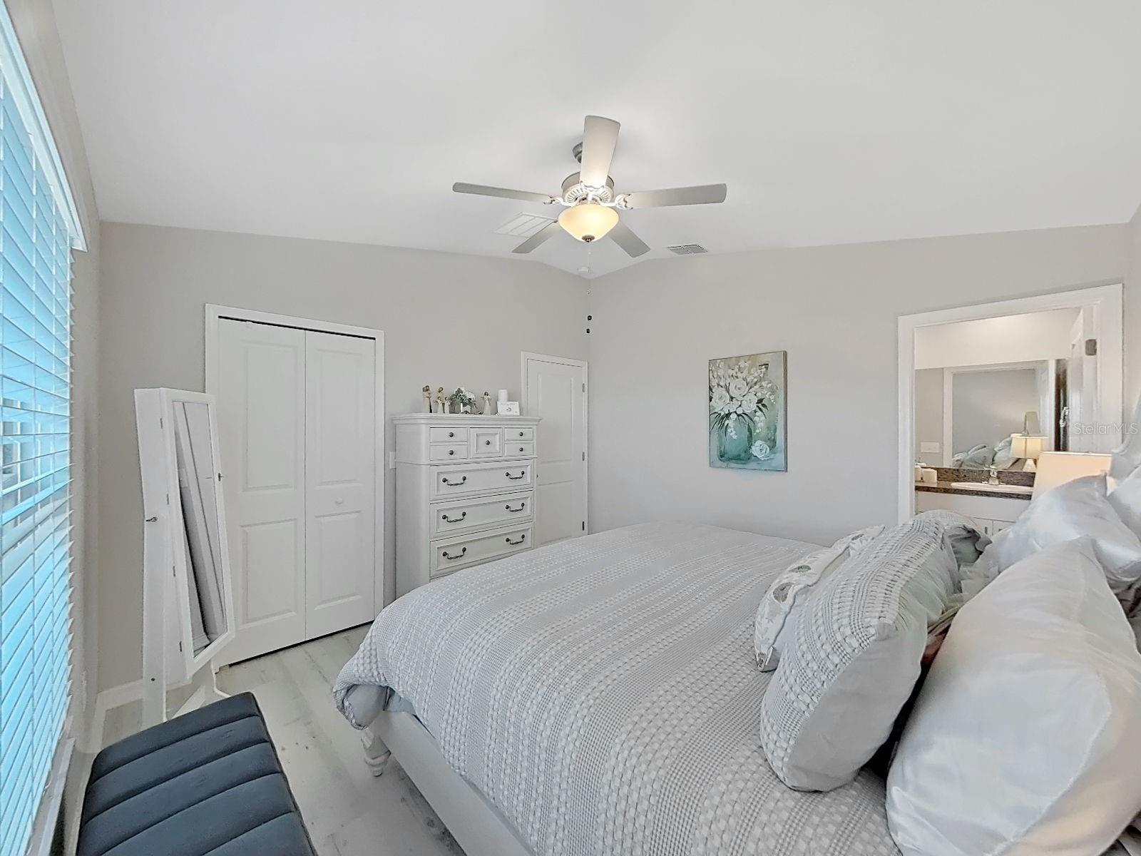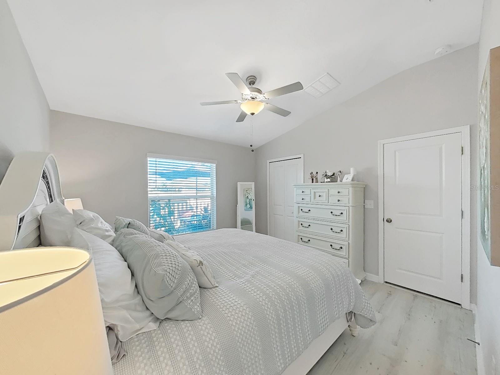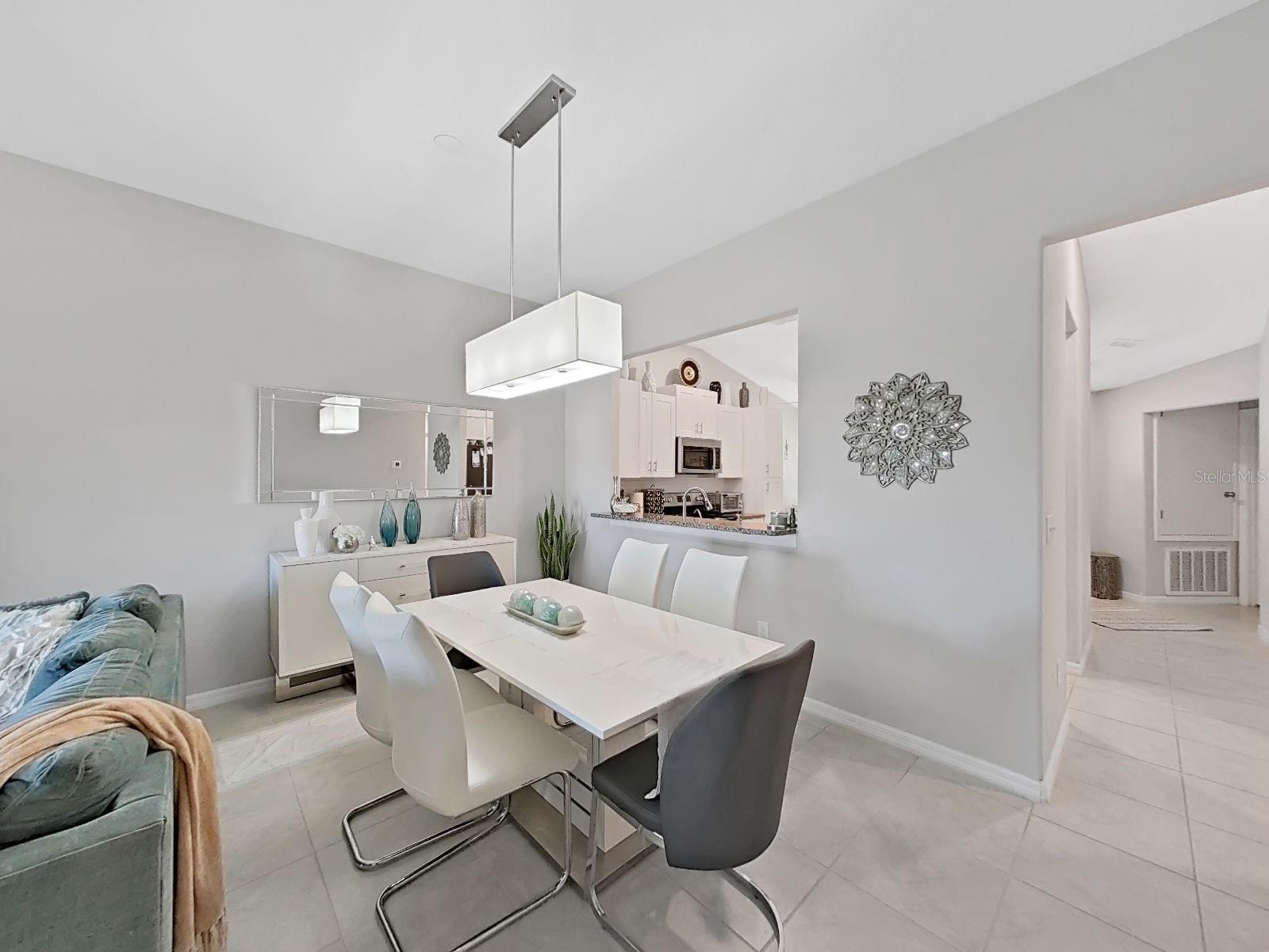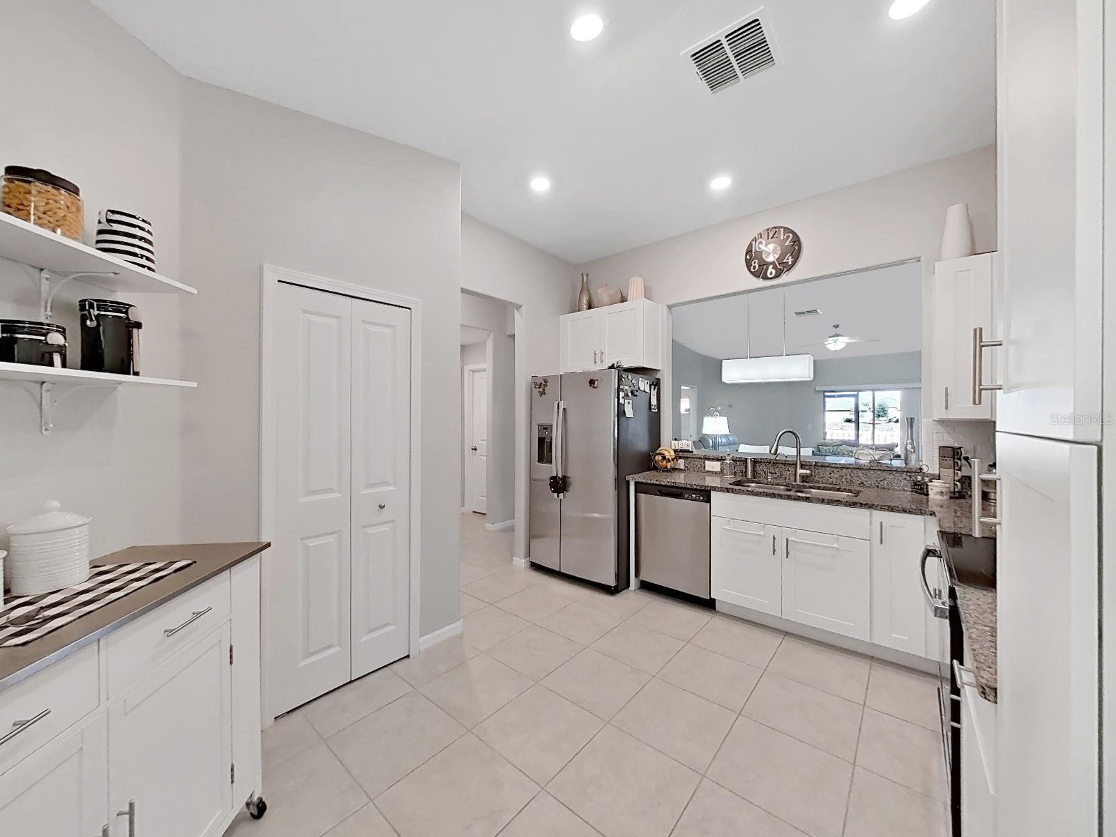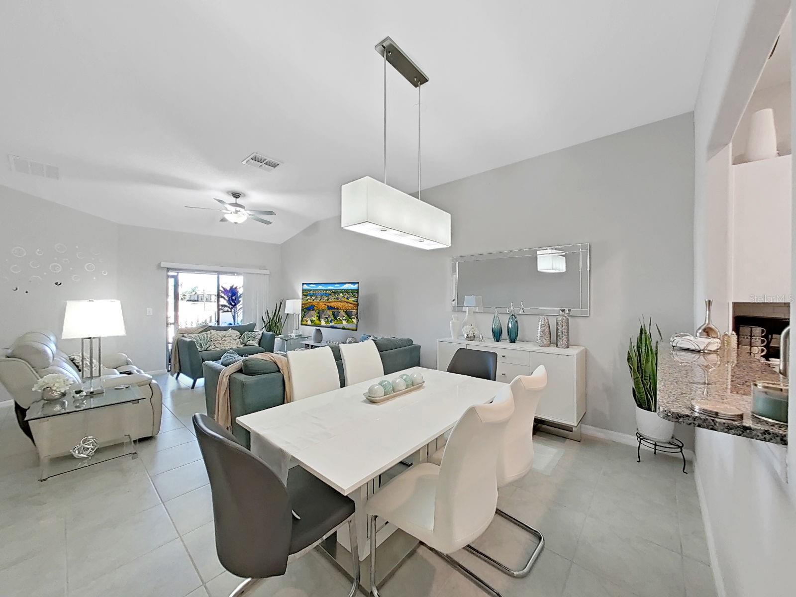 Welcome home to this beautifully maintained 2021-built villa-style residence offering 3 bedrooms, 2 bathrooms, and a 2-car garage, perfectly positioned with peaceful water and preserve views. This move-in-ready home features a spacious open floor plan, high ceilings, and a light-filled family room with sliding glass doors that seamlessly connect indoor and outdoor living. The modern kitchen is designed to impress with stainless steel appliances, white staggered-height cabinetry, an eat-in kitchen, and a dining area conveniently located just off the kitchen—ideal for both everyday living and entertaining. Enjoy Florida living at its best outdoors on the screened, covered lanai with ceiling fan, overlooking a large brick-paver patio and vinyl-fenced backyard, complete with a rear picket fence and gate. The low-maintenance exterior makes this home as practical as it is inviting. Additional features include tile and laminate flooring, ceiling fans in every bedroom and the great room, energy-efficient LED recessed lighting, and washer and dryer included. Located in a desirable lakeside community, residents enjoy a waterfront clubhouse with fitness center, resort-style pool, basketball and tennis courts, playgrounds, picnic areas, fire pit, gazebos, nature trails, community dock, and dog parks—all surrounded by scenic natural beauty. This home offers the perfect blend of comfort, style, and resort-style amenities—schedule your showing today!
