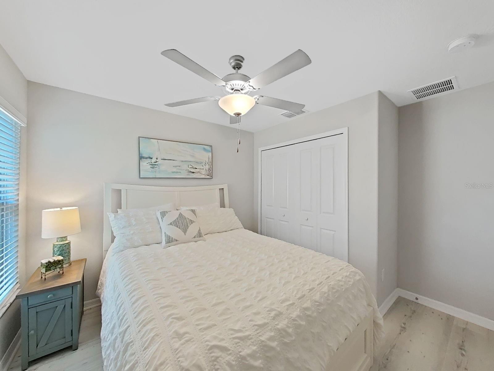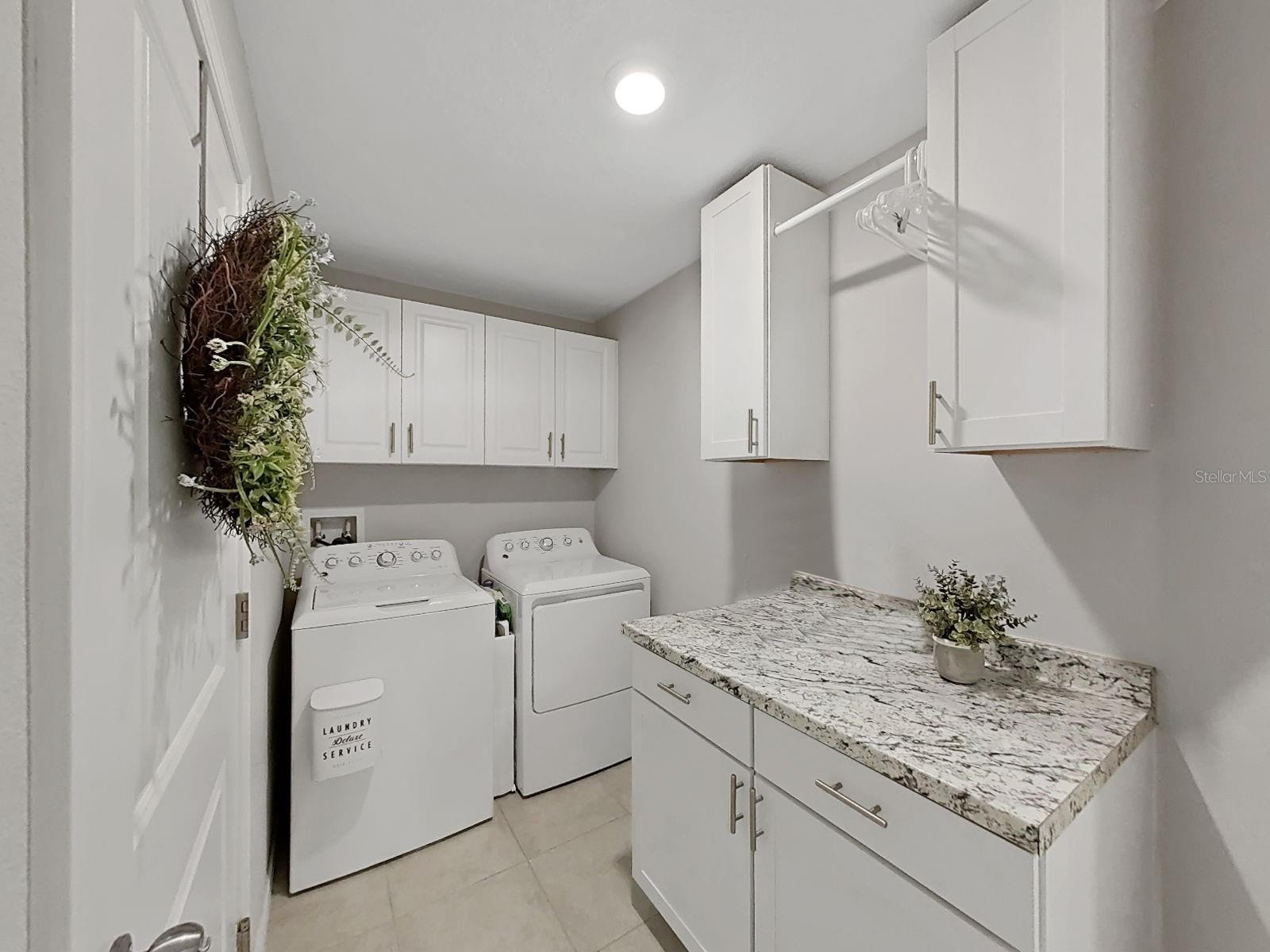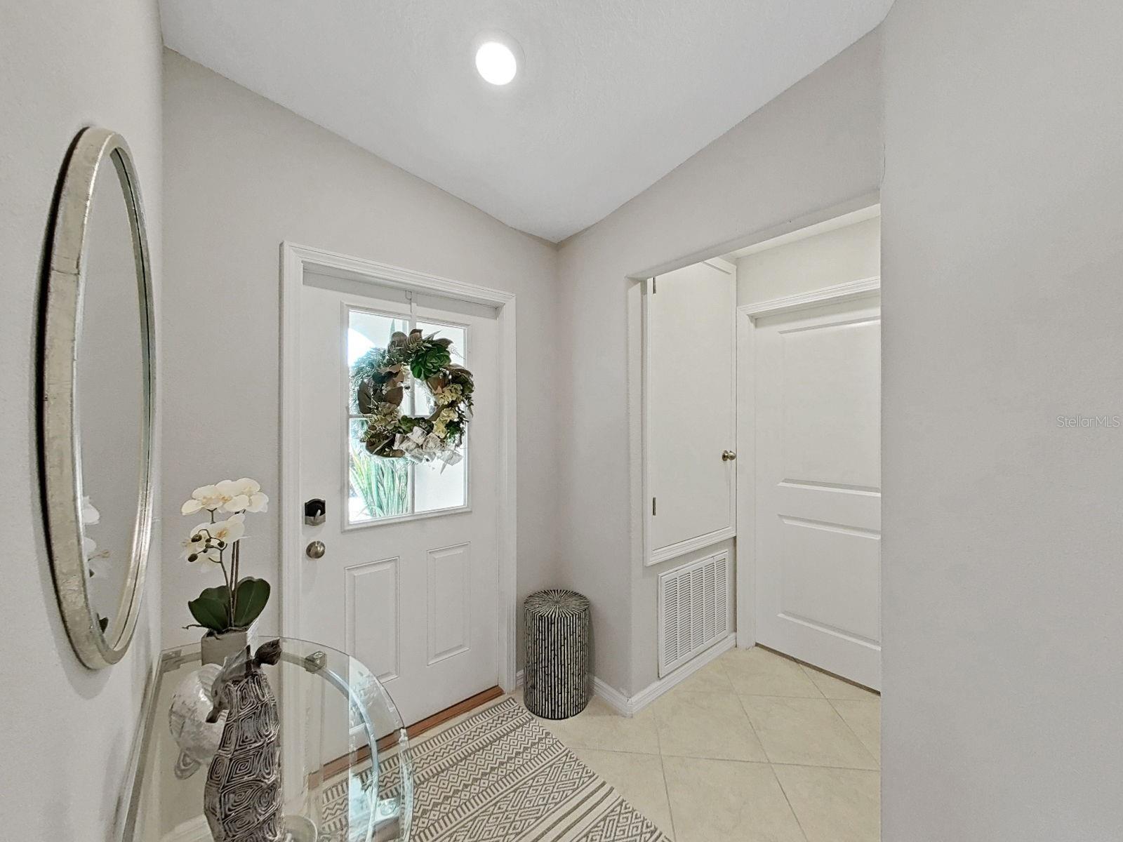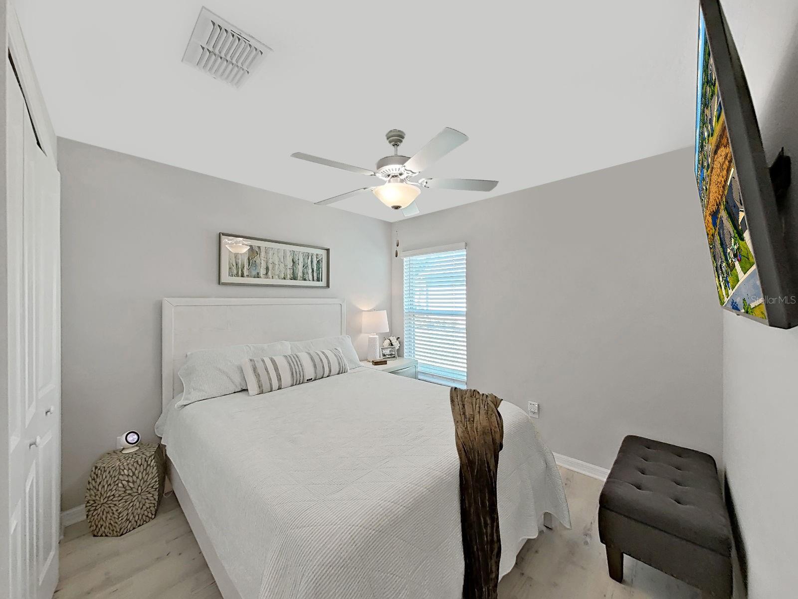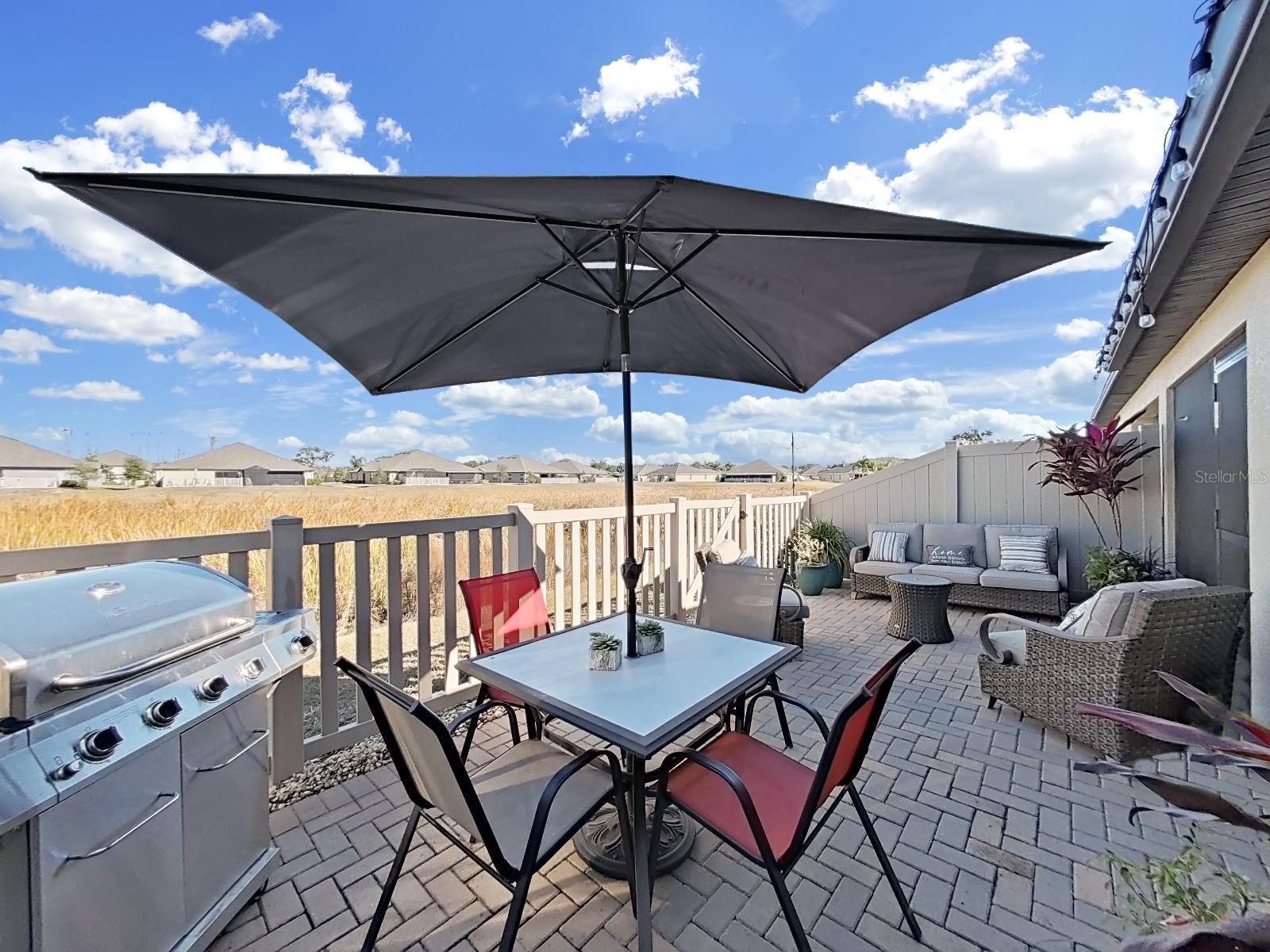 Welcome home to this beautifully maintained 2021-built villa-style residence offering 3 bedrooms, 2 bathrooms, and a 2-car garage, perfectly positioned with peaceful water and preserve views. This move-in-ready home features a spacious open floor plan, high ceilings, and a light-filled family room with sliding glass doors that seamlessly connect indoor and outdoor living. The modern kitchen is designed to impress with stainless steel appliances, white staggered-height cabinetry, an eat-in kitchen, and a dining area conveniently located just off the kitchen—ideal for both everyday living and entertaining. Enjoy Florida living at its best outdoors on the screened, covered lanai with ceiling fan, overlooking a large brick-paver patio and vinyl-fenced backyard, complete with a rear picket fence and gate. The low-maintenance exterior makes this home as practical as it is inviting. Additional features include tile and laminate flooring, ceiling fans in every bedroom and the great room, energy-efficient LED recessed lighting, and washer and dryer included. Located in a desirable lakeside community, residents enjoy a waterfront clubhouse with fitness center, resort-style pool, basketball and tennis courts, playgrounds, picnic areas, fire pit, gazebos, nature trails, community dock, and dog parks—all surrounded by scenic natural beauty. This home offers the perfect blend of comfort, style, and resort-style amenities—schedule your showing today!