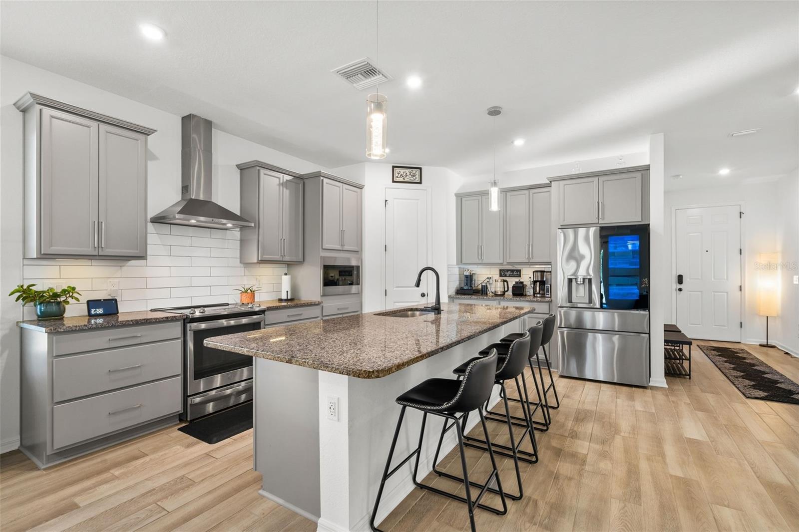 Welcome to this exceptional 2022-built home, perfectly situated on a premium corner lot in the highly sought-after Lakeside community. Offering 4 spacious bedrooms, 3 full bathrooms, and a 2-car garage, this residence effortlessly combines modern elegance with everyday functionality. From the moment you enter, you’ll be captivated by the light-filled, open-concept design—ideal for both relaxing and entertaining. The gourmet kitchen is a true centerpiece, featuring stylish cabinetry, sleek granite countertops, and updated appliances, all seamlessly flowing into the expansive living and dining areas. Step through sliding glass doors to your private patio, perfect for outdoor gatherings or quiet evenings at home. The thoughtfully designed split-bedroom layout provides added privacy, while the versatile flex space is ideal for a home office, media room, or play area—tailored to fit your lifestyle. Living in Lakeside means enjoying resort-style amenities, including a clubhouse, sparkling swimming pool, fitness center, basketball and tennis courts, dog-park, playgrounds, and picturesque lakes. Conveniently located near major roadways, shopping, dining, and top destinations, this move-in ready home offers the perfect blend of luxury, comfort, and convenience. Don’t miss your opportunity to own this beautifully upgraded home in one of the area’s most desirable communities—schedule your private showing today!
