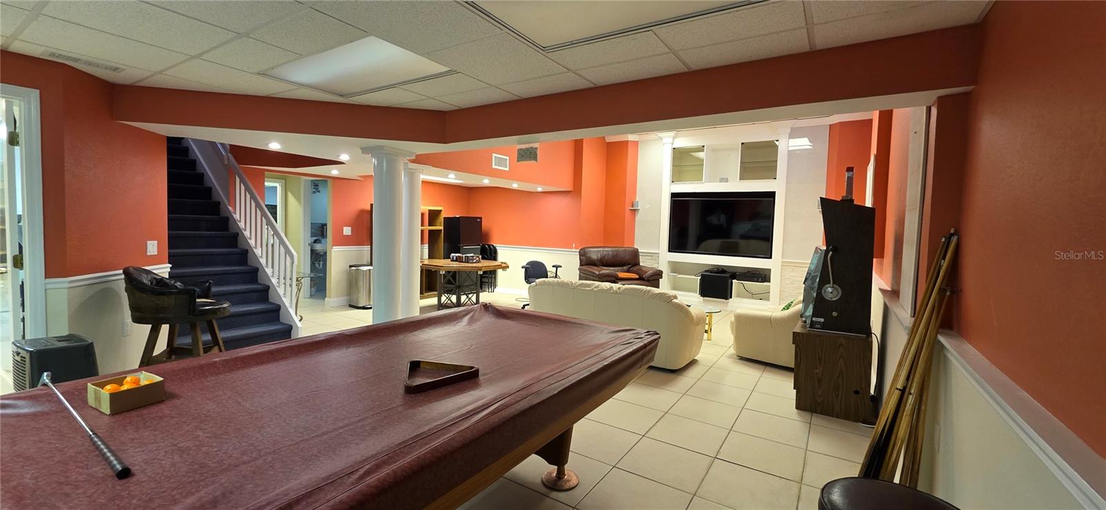 Set privately on 2.39 beautifully wooded acres in the sought-after Lakewood Acres community, this one-of-a-kind multi-level estate was thoughtfully designed for the way families truly live and entertain. Enchanting mature trees, a sprawling manicured yard, and welcoming curb appeal make you feel at home the moment you arrive. Step through the front entry into a lovely light-filled foyer showcasing the home's character-rich design — soaring cathedral ceilings, elegant tray ceilings, rich crown molding, and classic chair rail detail throughout. The gracious living room offers the perfect gathering space, and flowing naturally into the formal dining room, ideal for holiday dinners and memorable evenings with friends. At the heart of the home, the centrally located kitchen is a true entertainer's dream — spacious, ready for the cook in your family to create THEIR FAVORATE DISH. A convection oven, bar fridge, tankless water heater, whole-house reverse osmosis system, water softener, and generous eating space make it as functional as it is beautiful. Just off the kitchen, step onto the expansive deck where grilling and indoor-outdoor entertaining come naturally. Adjacent, the inviting sunken family room is a cozy retreat for movie nights and quiet mornings, while a dedicated main-level office provides a quiet space to work or pursue hobbies. Upstairs, five generously sized bedrooms filled with natural light include a serene primary suite with a walk-in closet and ample room to unwind. Walk-in and built-in closets throughout offer exceptional storage. One of this home's most extraordinary features is the full finished basement — an exceptionally rare find in Florida! This expansive bonus level is a blank canvas with endless possibilities: epic game room, private home theater, media lounge, fitness studio, playroom, or in-law suite. You simply don't find this kind of space in Florida homes, making this property truly one-of-a-kind. Your Private Backyard Paradise: Step down from the deck into a screen-enclosed oasis featuring a heated gunite pool with solar cover and an in-ground heated spa. A convenient outdoor half bath and outdoor shower make poolside living effortless, while the fully screened patio and rear porch offer bug-free lounging year-round. Built for Adventure and Peace of Mind: A massive 40x40 pole barn serves as the ultimate workshop, entertainment space, or hobbyist's haven. Additional sheds, storage building, workshop, and a three-car attached garage provide room for vehicles, toys, and projects. The home is equipped with a whole-house Generac generator, two wells, private septic, 500-gallon propane tank, full irrigation, exterior lighting, a private balcony, and a mix of masonry and chain-link fencing. With AR zoning, there's even room for horses. Offering the rare combination of privacy, acreage, low taxes, and remarkable craftsmanship, this Hudson estate is ready to welcome its next family. Flood Zone X | No HOA