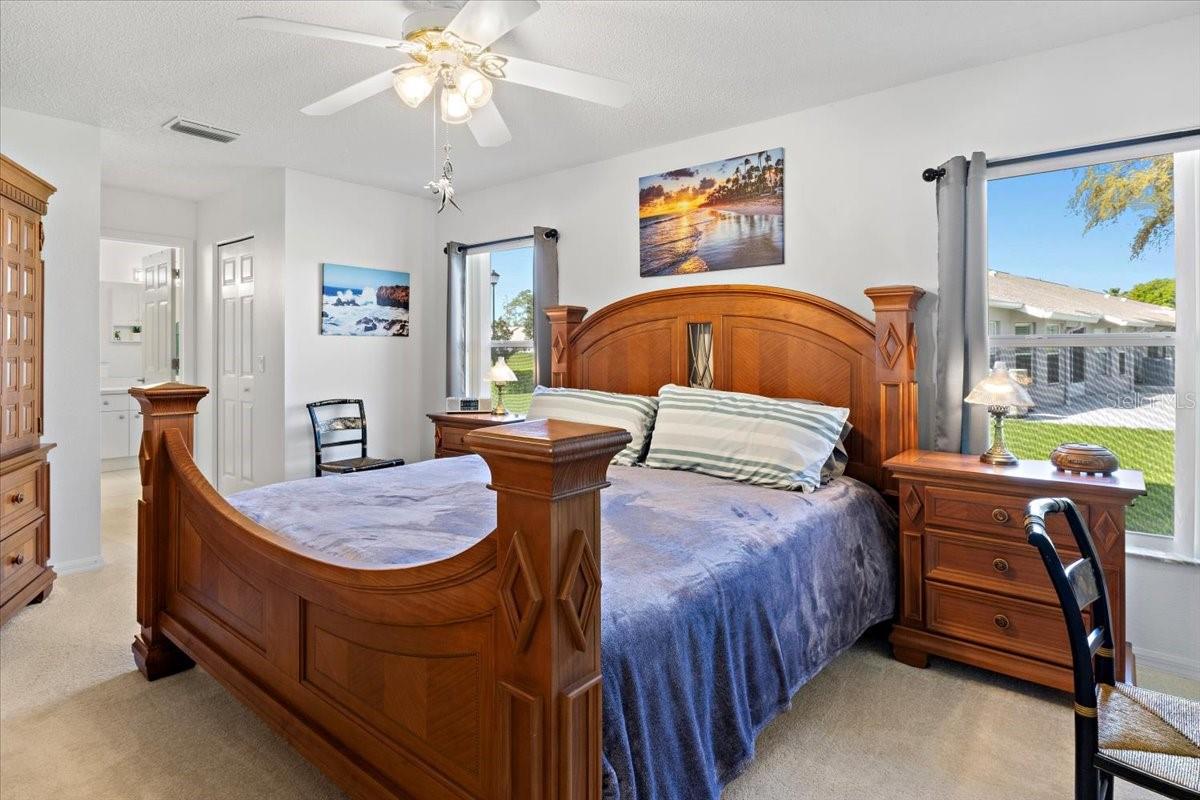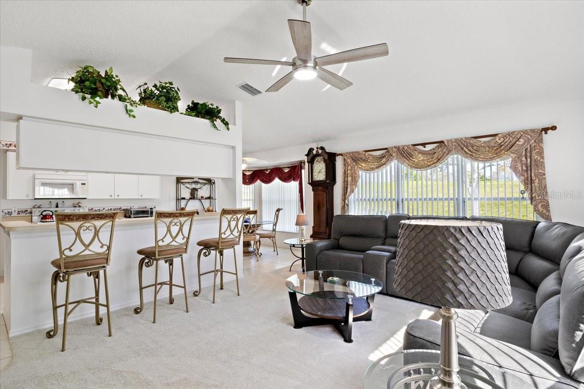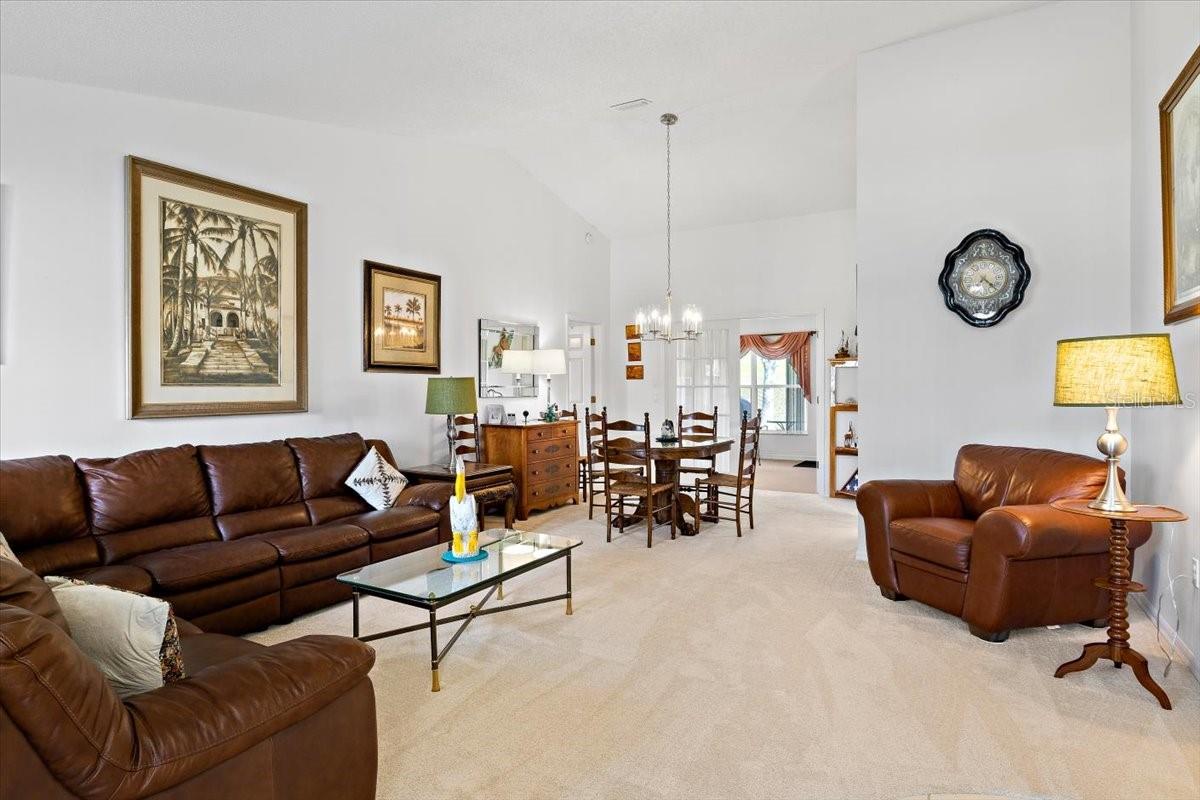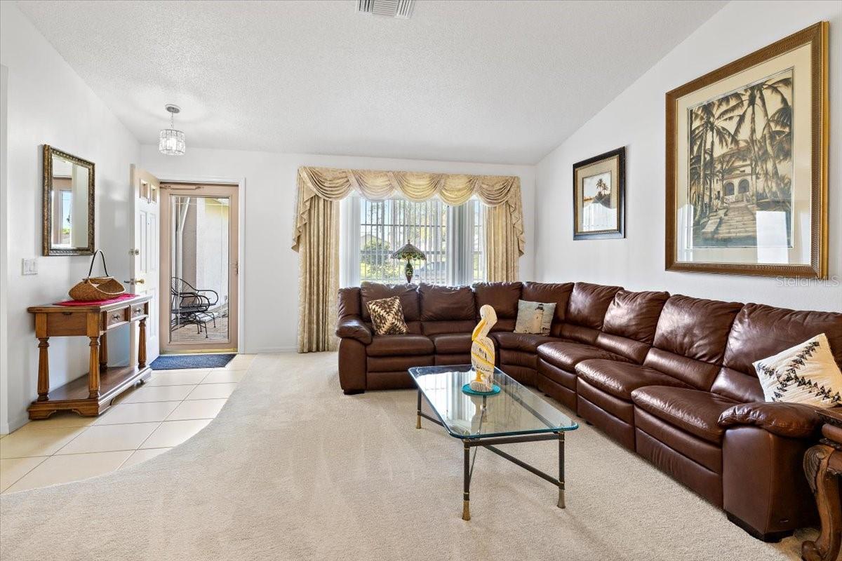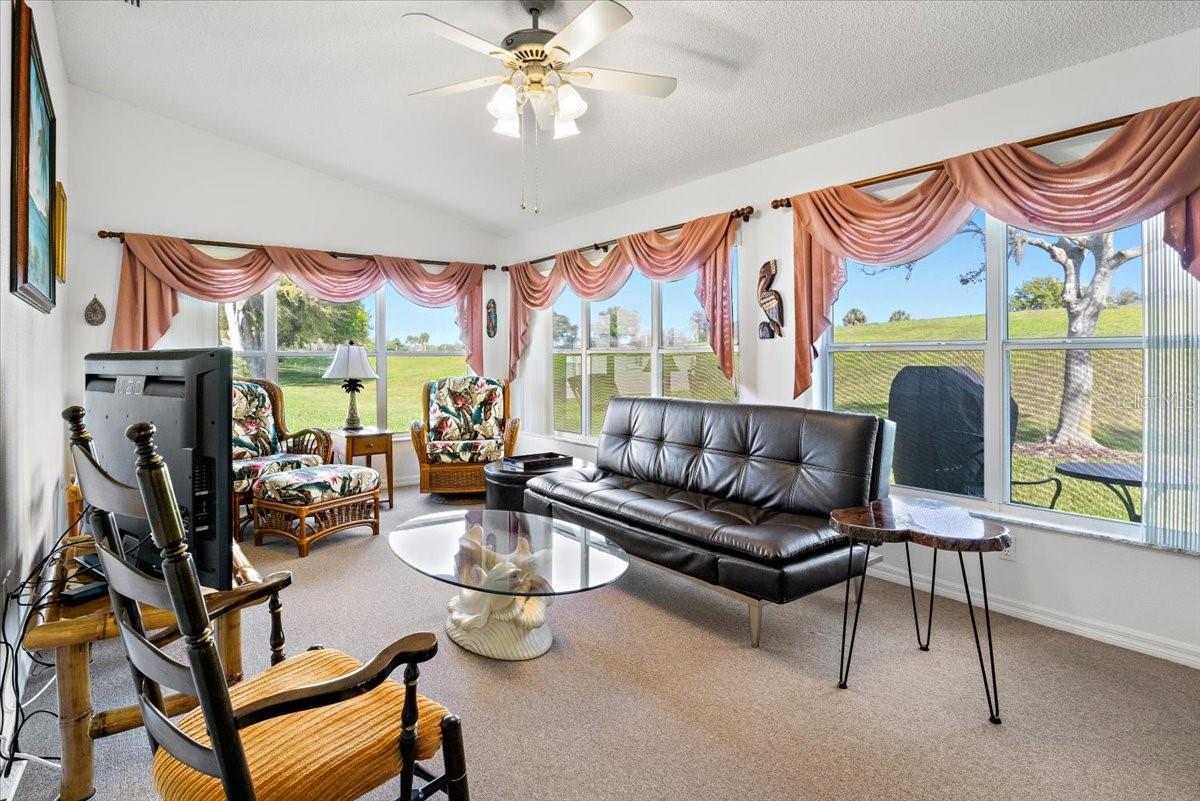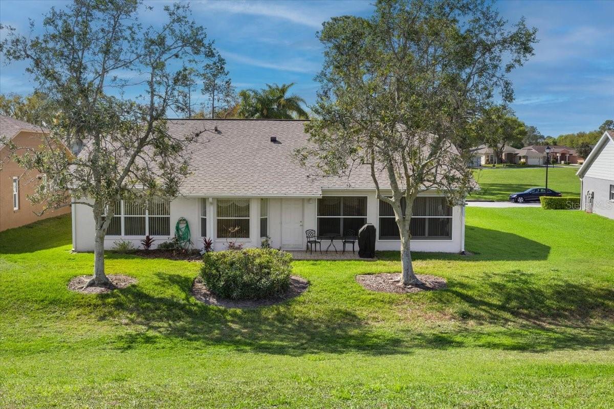 This spacious, very clean and move-in ready home is located in a fully maintained village and backs up to a beautiful private golf course. New roof in 2021, HVAC in 2019. Pavers on the driveway lead up the entry walkway to a glass storm door. Inside you will find a formal living & dining room with a bay window & vaulted ceilings, locking French doors leading to a large climate-controlled Florida room, an open concept kitchen with lots of cabinet and counter space, breakfast nook area with a second bay window, family room with a vaulted ceiling, the primary bedroom offers his & her walk-in closets and a bathroom w/ his & her sinks along with a walk-in shower, bedroom #2 also has a walk-in closet and a second bathroom with tub & shower, inside laundry room with utility tub and of course a 2-car extended garage. This 55+ active retirement community offers a 24/7 guarded entrance, security services, tennis courts, pickleball courts, bocce ball courts, horseshoe pits, golf course, pro shop, heated pool & jacuzzi, restaurant & lounge, performing arts center, fitness center, library, billiards, crafts room, a woodworking shop, computer facility and daily activities for all kinds of interest! While only 45 minutes North of the Tampa International Airport, it's also conveniently located close to professional sporting events, fine arts, amusement parks and fine dining. The owner of this awesome home is very motivated and ready to sell!