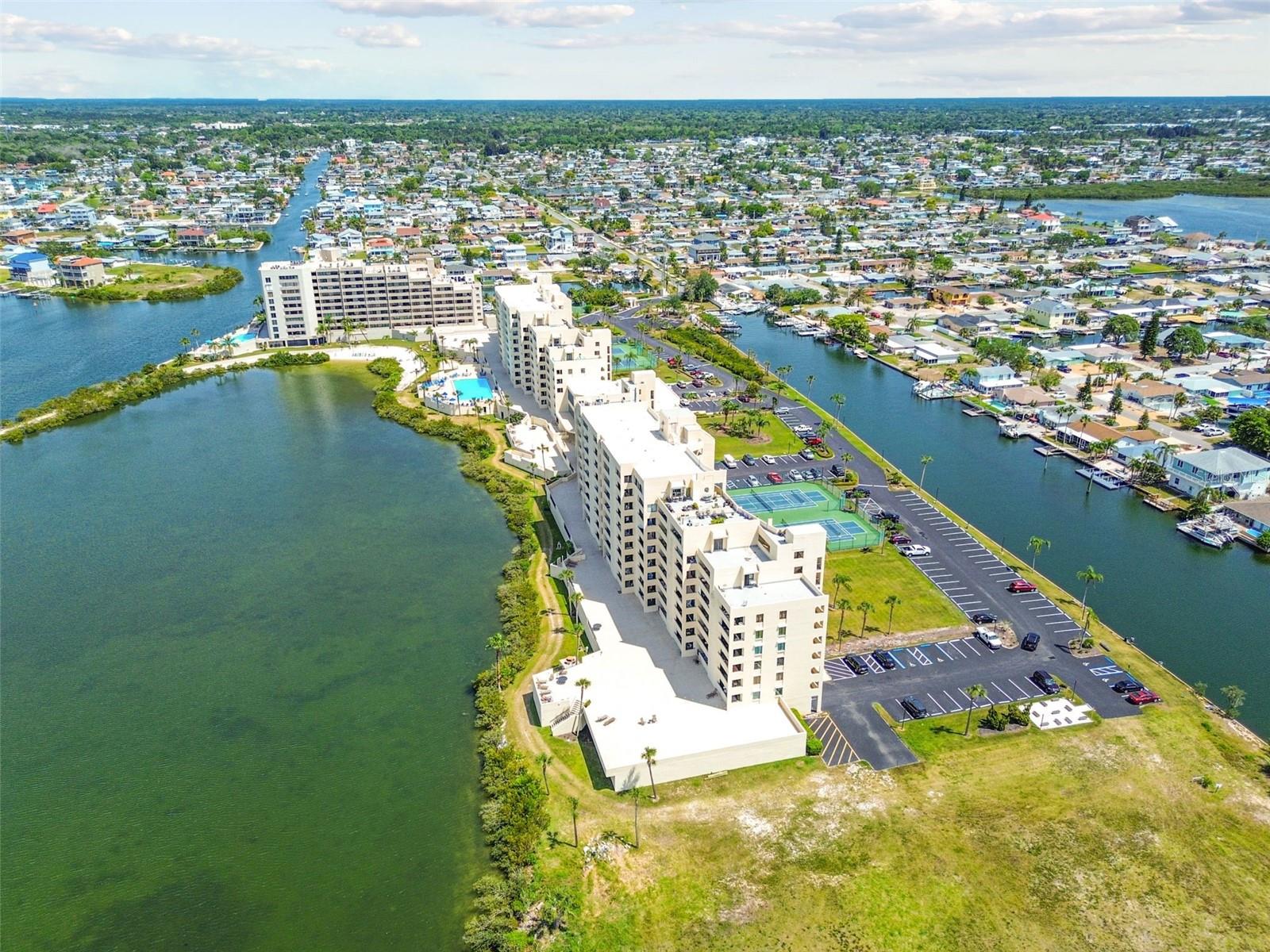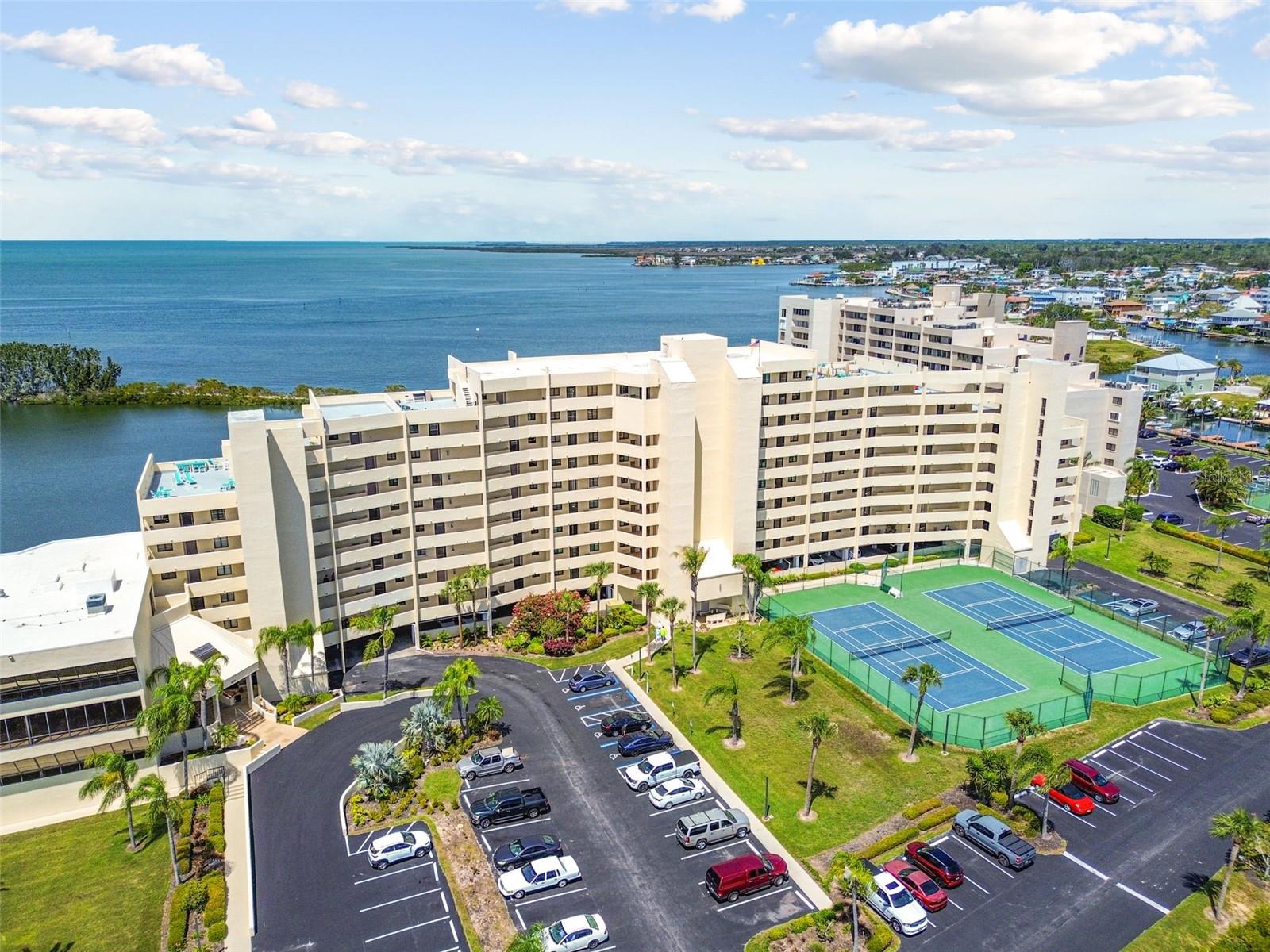 WELCOME TO PARADISE! This 2 bedroom/2 bath completely remodeled FURNISHED first-floor unit is GORGEOUS! Great unit to make your own residence or purchase as an investment, unit has excellent rental history with future bookings including 2025 seasonal guests. The condo comes with an ASSIGNED PARKING SPOT under building 2. This turn-key condo with tile flooring throughout and every inch exceptionally remodeled. The kitchen has floor-to-ceiling soft-close shaker cabinets, granite countertops, stainless steel whirlpool appliances, including a counter-depth refrigerator & convection range, new microwave, an oversized sink, and a peninsula with counter bar seating. In the spare bedroom, the bathroom vanity has been updated as well as the shower tub combo. There is also a private door for entry into the spare bedroom, if you choose to have a roommate, or would like to have someone come and go as they please. In the master bedroom, there are sliders leading to the porch with water views as well as a raised updated vanity and seamless glass shower with updated tile. New interior doors, new ceiling fans with remotes, and new vertical blinds. A custom barn door with INSIDE LG WASHER & DRYER. From the porch, you can see the lagoon of the community as well as open water views of the Gulf of Mexico. The patio is on the same level as the pool, very convenient and offers accessibility to the expansive rear pedestrian deck that is great for entertaining! AC replaced 2018, hot water heater 2013. The Gulf Island Beach and Tennis Club Complex is a resort-style community offering a private beach, heated swimming pool just steps from the unit, barbecue facilities, tennis courts, and clubhouse. Association fee includes water, trash, Spectrum cable TV and in-unit WiFi. Community Features: 24hr Guard, Heated Olympic sized pool, clubhouse, game room and fitness center, tennis/pickleball courts, private beach, lagoon, BBQ areas & nature trail! Access to community workshop with drill press, table saw, benches, etc. Gulf Island Beach & Tennis Club is truly the hidden GEM of Pasco County, this community offers residents and owners an active waterfront lifestyle. Community has undergone many improvements within the last 3 years, new breezeway flooring, new elevators (interiors to start in May 2024), roof improvements, new pool liner, new pool furniture, new carpet in the clubhouse, and repaved parking lots.