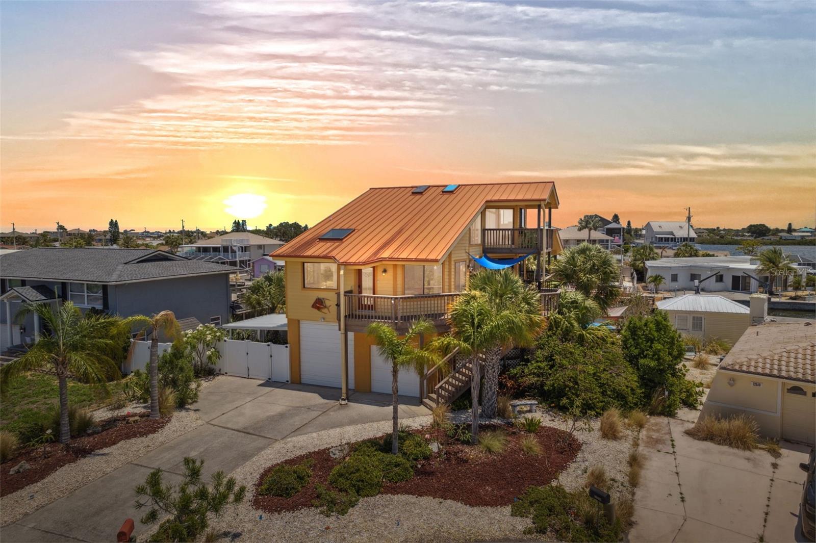 This Beautiful unique three story home is a Waterfront Retreat with Million-Dollar Views from every room in the house! Enjoy amazing sunsets while you relax at this cul-de-sac home in the sought out area of SEA RANCH ON THE GULF. Features 3 bedrooms and 3 full baths, wrap around deck, an in-law studio efficiency on the first floor with kitchenette and private entrance. This coastal home has an open floor plan on the 2nd level with vaulted ceilings, tile throughout this level, eat in kitchen with stainless steel appliances and granite counter tops, dual sinks, laundry room, one full bath, one bedroom with sliders that lead to the deck with a private hot tub. Off the kitchen there is a spiral staircase that leads to the third level and master bedroom/loft, with a private bath, and private covered deck with magnificent views of the Gulf of Mexico. Enjoy the backyard oasis which will make you feel like you are on vacation everyday with a fully paved patio, above ground pool, many lounging areas, newly updated floating dock, two boat lifts, covered area with gate for kayaks, golf cart or jet skis. Fish off your own dock, watch dolphins, manatees and boats passing by. Backyard tiki bar for entertaining family and guests. The community is golf cart friendly and many nearby waterfront restaurants. Plenty of parking with double door oversized garage plus driveway, with plenty of space. Many options with this home and so much to offer, can be your primary home or investment property! Currently being used as a short term rental and reservations on the books that can be taken over by the new owner if chosen to do so. Don’t wait on this one, and schedule your showing!