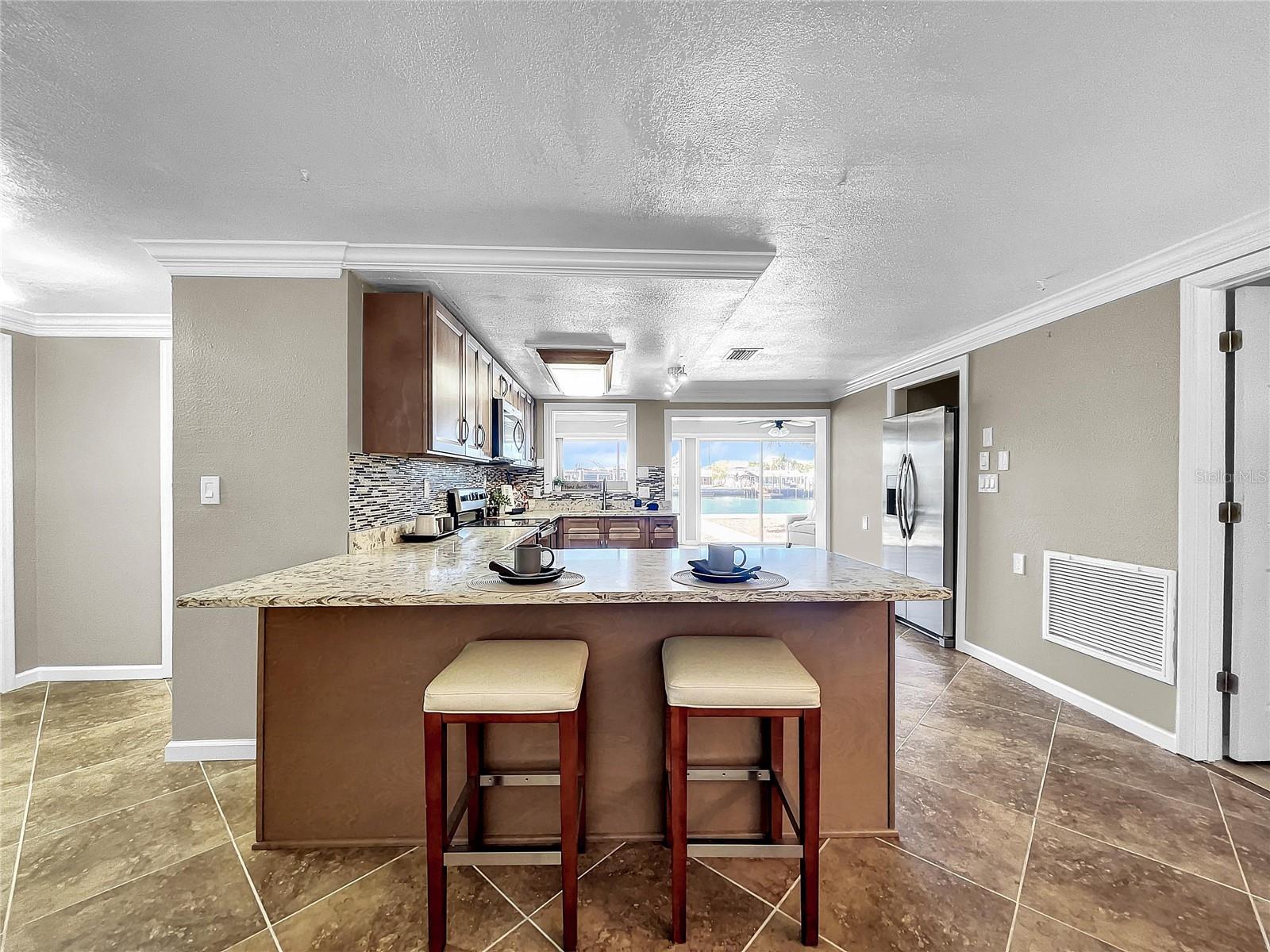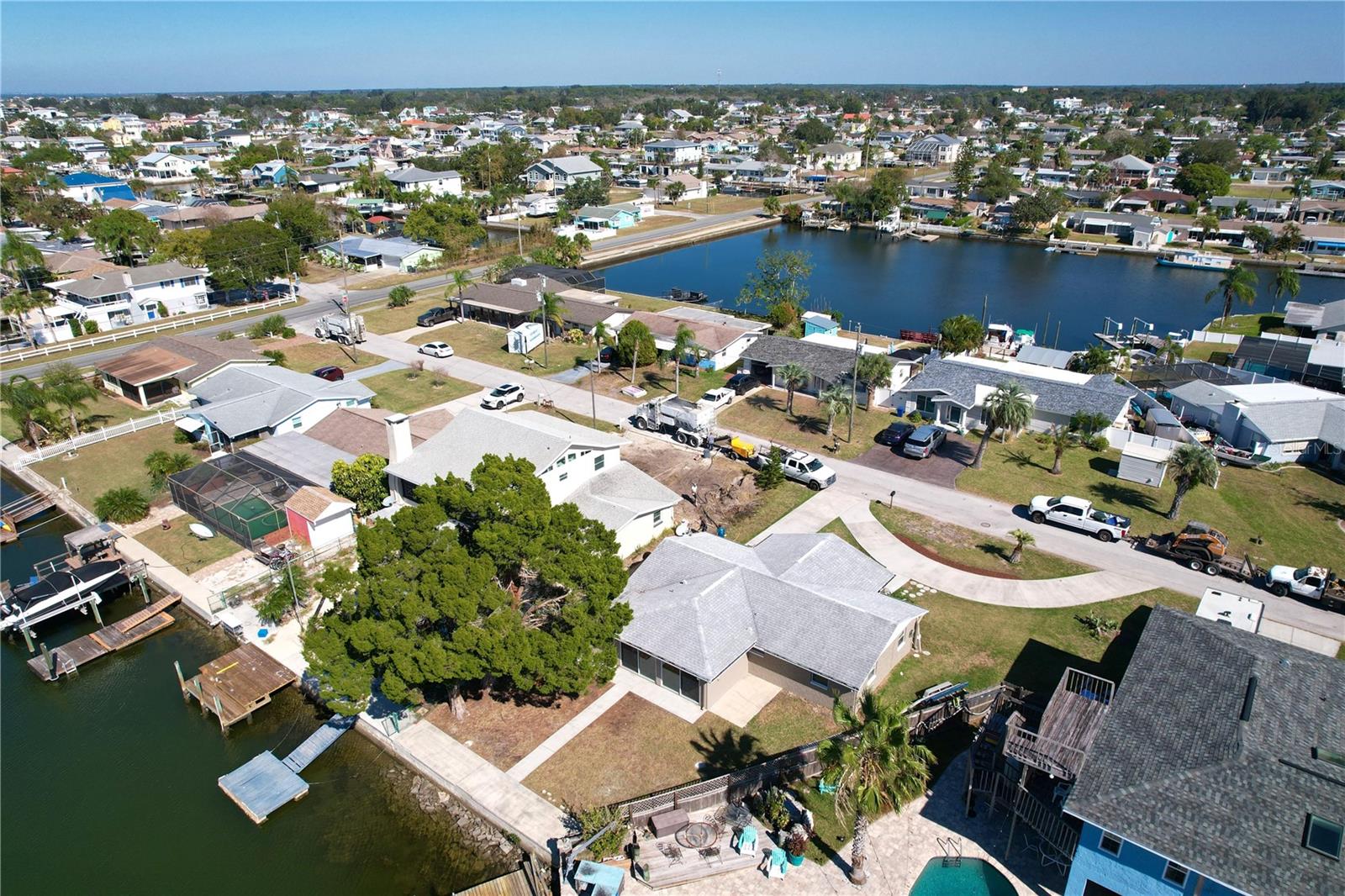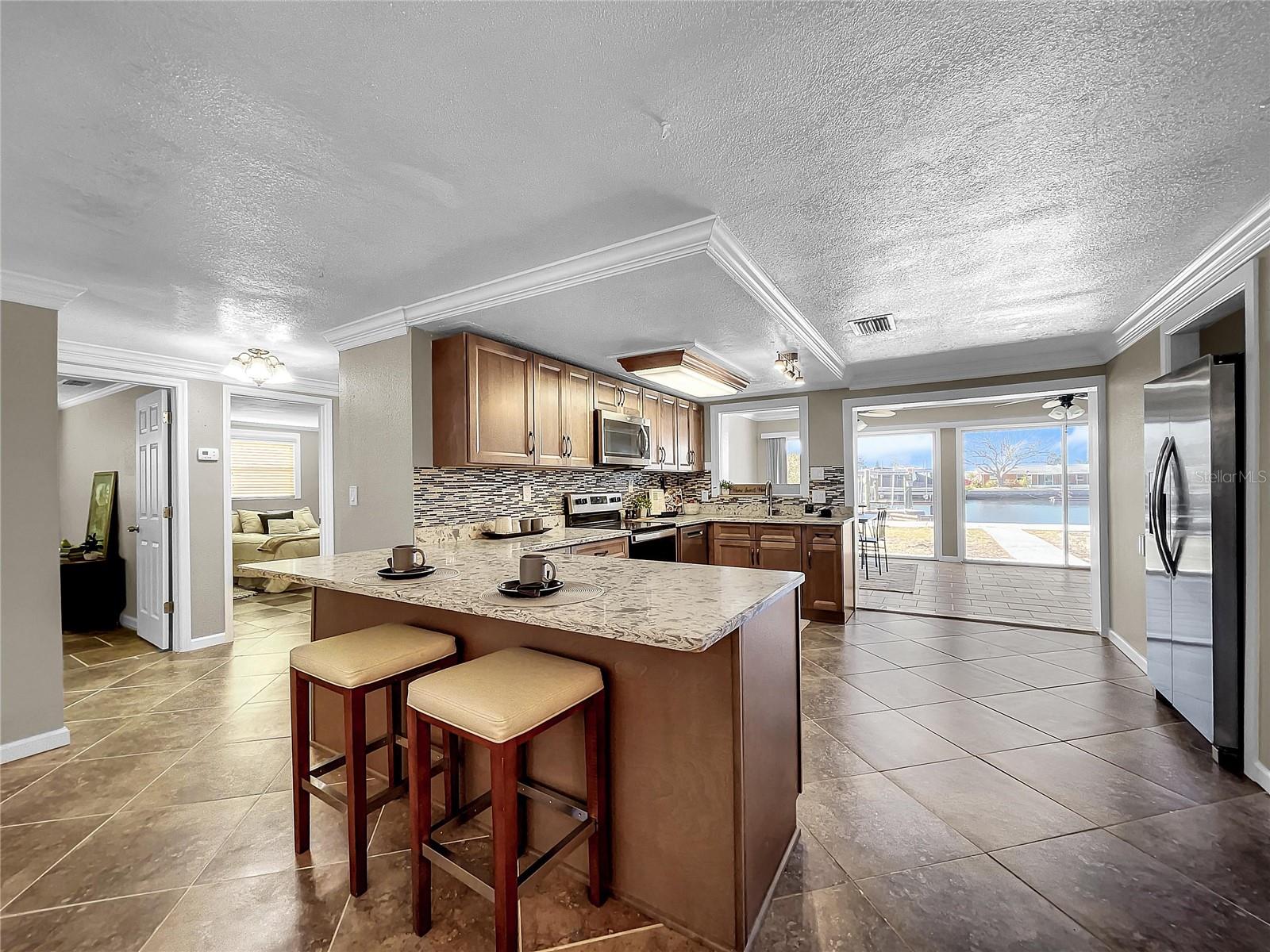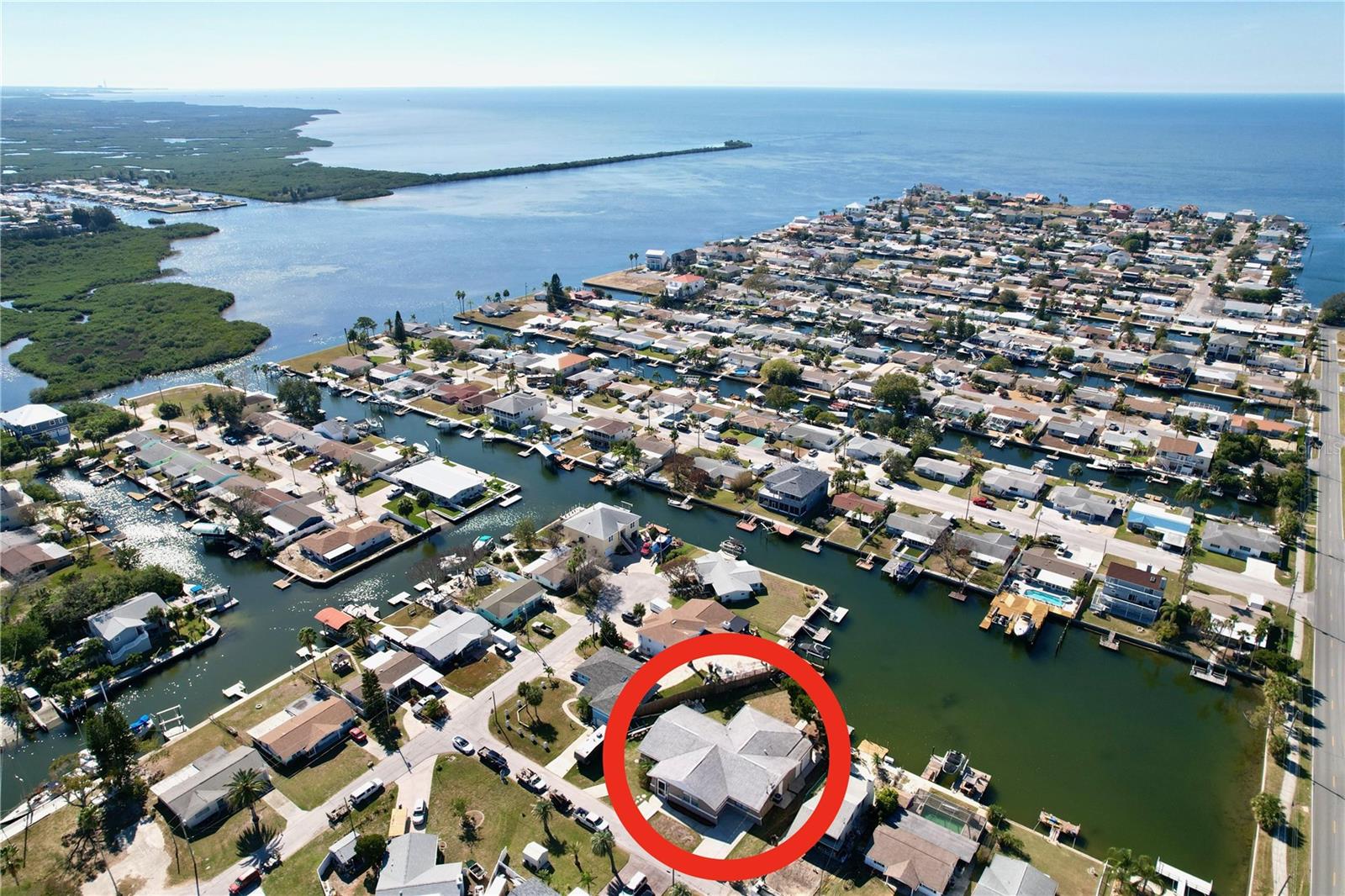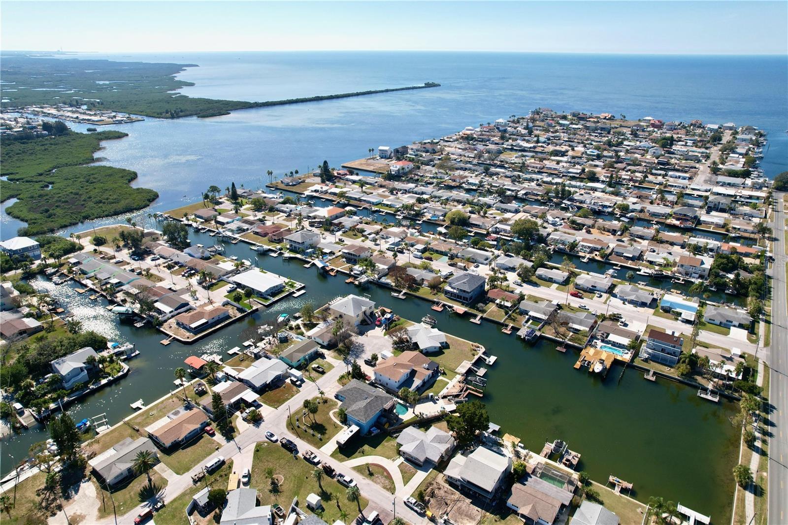 Experience the Florida lifestyle in this exquisite waterfront residence offering DIRECT ACCESS to the Gulf of Mexico. Whether you seek a permanent residence, a winter retreat, or a valuable addition to your investment portfolio, this home is a must see! This spacious home, enhanced with elegant crown molding, features a generous living room, two bedrooms, two bathrooms, a dining and sitting room, and a versatile bonus room suitable for use as an office or flexible space. Beyond the captivating water vistas, the well-appointed kitchen showcases new appliances, cabinetry, and granite countertops, providing ample workspace and a breakfast bar. The dining and sitting area boasts a striking wall of sliding glass doors, creating an ideal setting for entertaining guests or enjoying a moment of relaxation with a book and a cup of coffee amidst the scenic waterfront views and breathtaking sunsets. The backyard of this property is a haven for fishing enthusiasts. Whether fishing from the yard or setting out on your boat for a quick voyage to the Gulf of Mexico's open waters, this location caters to your maritime pursuits. Positioned on a wider canal than most, navigation is made easier, while also offering increased privacy. Facing west, the backyard ensures the capture of stunning Florida sunsets. The exterior presents a spacious, curved driveway for ample parking and a storage room accessible from outside, ideal for housing fishing and boating equipment. Situated near Hudson Beach, the neighborhood provides an array of amenities such as waterfront dining, a boutique hotel, a marina, beach access, a boat launch, and a charming ice cream parlor. Additional conveniences in the vicinity include grocery stores, the HCA Florida Bayonet Point Hospital, dining establishments, a library, and a quick 25-minute drive to the Suncoast Parkway, granting easy connectivity to the Tampa Bay region. This meticulously maintained home is move-in ready, enabling you to promptly embrace the coveted Florida lifestyle. Recent upgrades include a newer roof (2015), AC system (2014), updated windows (2016), brand-new bathroom vanities (2023), interior and exterior paint (2023), new kitchen cabinetry and appliances (2023), and a water heater (2016).