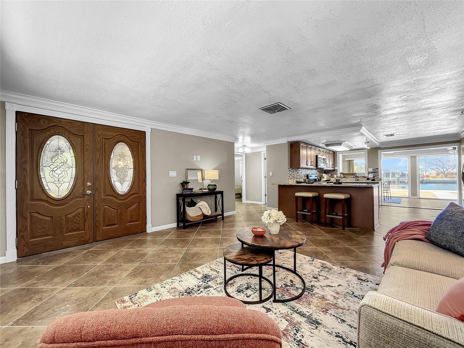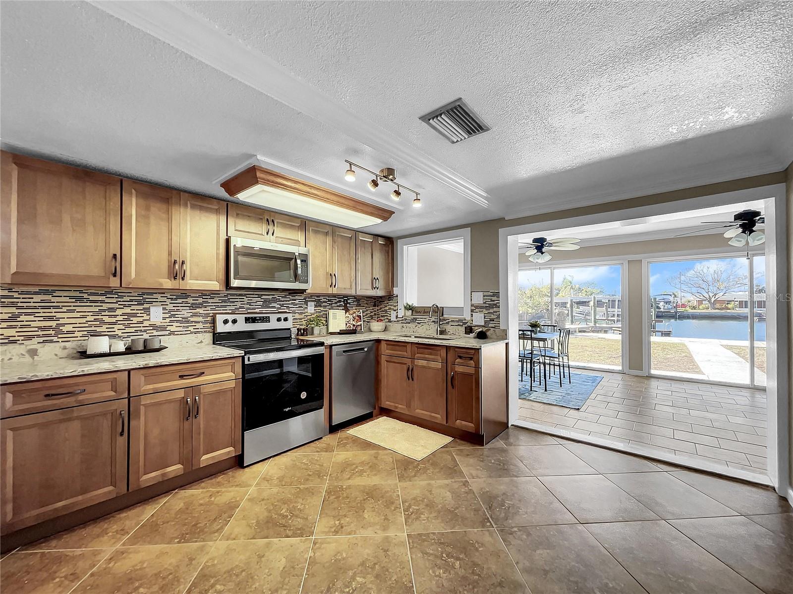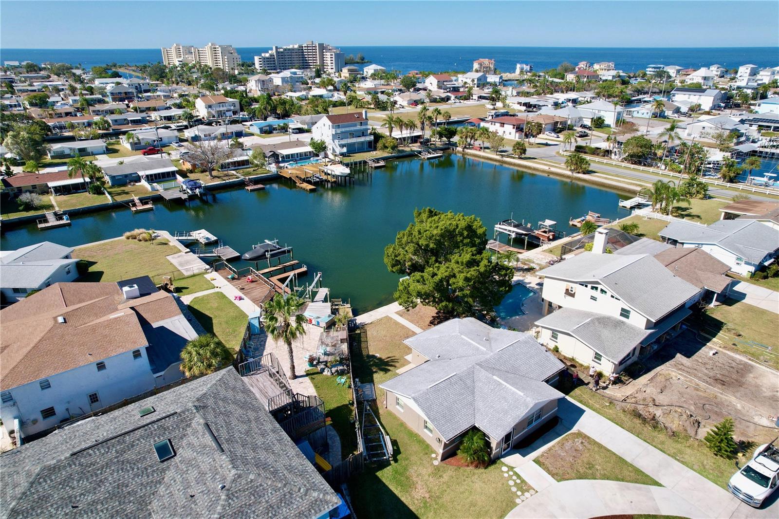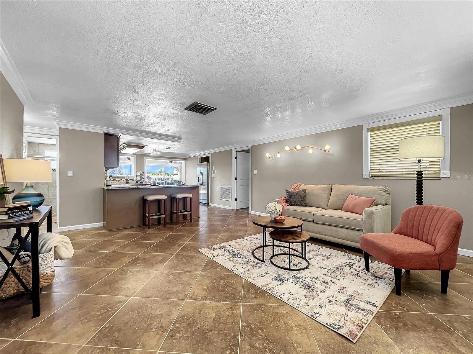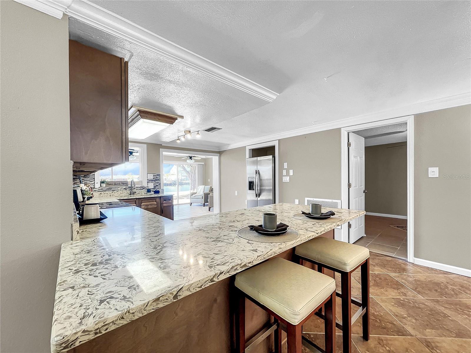Experience the Florida lifestyle in this exquisite waterfront residence offering DIRECT ACCESS to the Gulf of Mexico. Whether you seek a permanent residence, a winter retreat, or a valuable addition to your investment portfolio, this home is a must see! This spacious home, enhanced with elegant crown molding, features a generous living room, two bedrooms, two bathrooms, a dining and sitting room, and a versatile bonus room suitable for use as an office or flexible space. Beyond the captivating water vistas, the well-appointed kitchen showcases new appliances, cabinetry, and granite countertops, providing ample workspace and a breakfast bar. The dining and sitting area boasts a striking wall of sliding glass doors, creating an ideal setting for entertaining guests or enjoying a moment of relaxation with a book and a cup of coffee amidst the scenic waterfront views and breathtaking sunsets. The backyard of this property is a haven for fishing enthusiasts. Whether fishing from the yard or setting out on your boat for a quick voyage to the Gulf of Mexico's open waters, this location caters to your maritime pursuits. Positioned on a wider canal than most, navigation is made easier, while also offering increased privacy. Facing west, the backyard ensures the capture of stunning Florida sunsets. The exterior presents a spacious, curved driveway for ample parking and a storage room accessible from outside, ideal for housing fishing and boating equipment. Situated near Hudson Beach, the neighborhood provides an array of amenities such as waterfront dining, a boutique hotel, a marina, beach access, a boat launch, and a charming ice cream parlor. Additional conveniences in the vicinity include grocery stores, the HCA Florida Bayonet Point Hospital, dining establishments, a library, and a quick 25-minute drive to the Suncoast Parkway, granting easy connectivity to the Tampa Bay region. This meticulously maintained home is move-in ready, enabling you to promptly embrace the coveted Florida lifestyle. Recent upgrades include a newer roof (2015), AC system (2014), updated windows (2016), brand-new bathroom vanities (2023), interior and exterior paint (2023), new kitchen cabinetry and appliances (2023), and a water heater (2016).