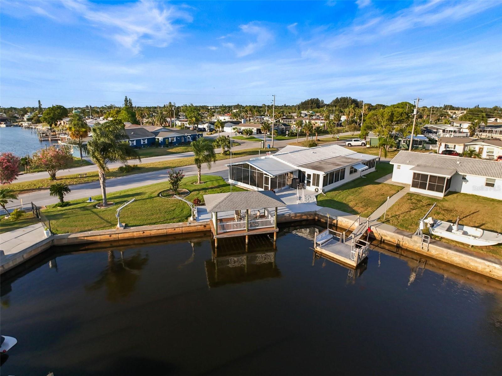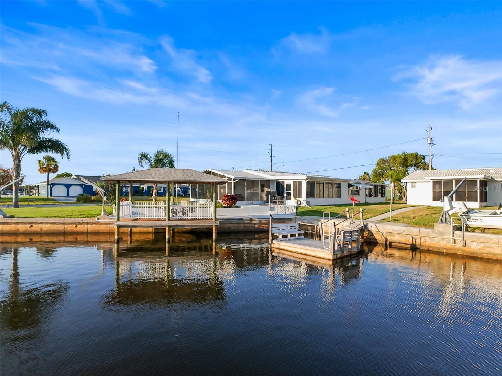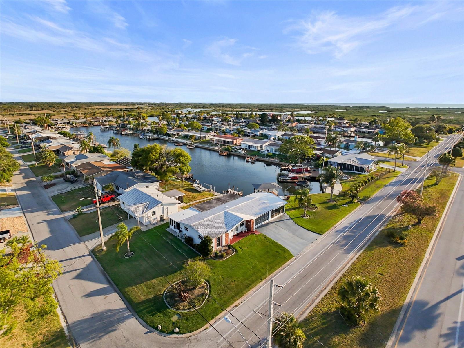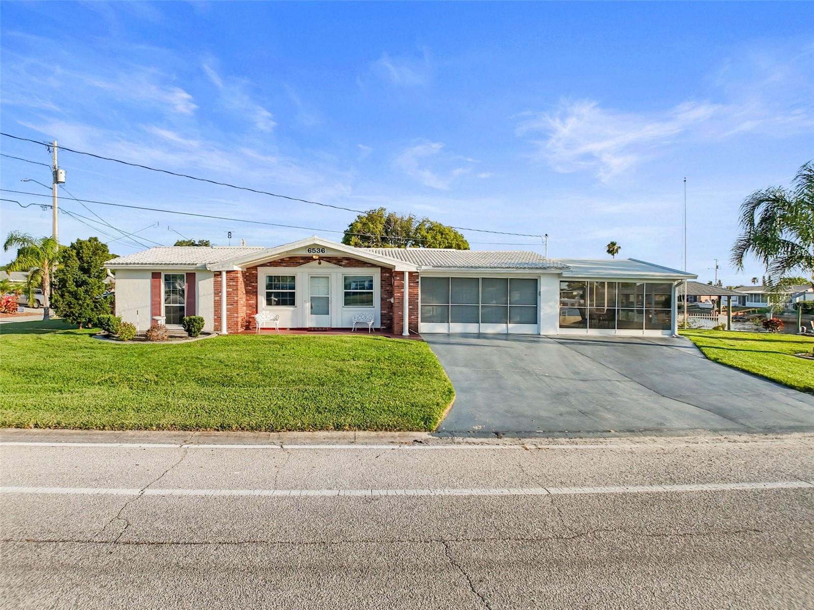 $20K PRICE REDUCTION!!!! Direct Gulf Access Home! Featuring a true 2 Car Garage plus a 1½ car screened carport, located on a double lot with plenty of room to add a pool on either side of the home! What a rare find. The charming brick exterior along with the mature landscaping and oversized lush lawn, has tons of curb appeal. This 3 Bedroom, 1 bath (really 2), home has a nice light and bright interior. The second bathroom is located in the garage but can be easily converted to the inside. The front bedrooms are a nice size and are centrally located near the hall bathroom. The living area of the home is large and has 2 beautiful windows to add lots of natural lighting. There are many beautiful white cabinets in the kitchen for all items. The dining area is roomy enough for a large table and also has built-in cabinets for even more storage. The third bedroom is located in the back of the home along with an enclosed sunroom that can serve as an office or second tv room. The possibilities are endless with this room. This home boasts a remarkable 86-feet of seawall, accompanied by a covered stationary dock, offering ample opportunities for boating and fishing enthusiasts. And you still have plenty of room for all your toys. Picture waking up to the prospect of setting sail in the Gulf within minutes from your deep-water canal. The fun is never ending, and the SUNSETS are always AMAZING! You can also enjoy those beautiful sunsets on your stationary dock while watching out for the dolphins, ducks, manatees and other fish make their way through the deep canal. You can have a lovely dinner at any of our waterfront dining choices by boat, including Hooters, Whiskey River, Whiskey Joes, and many more. Hudson offers great restaurants, entertainment, marinas, boat rentals, charter fishing, public boat ramp and a beach area for swimming. Nearby Sunwest County Park, with over a mile of Clearwater Beach quality sand, where swimming, wakeboarding, beach volleyball, splash pad can be enjoyed by family and friends. Close to many amenities including medical services, hospitals, shopping and more. Tampa International Airport is 45 minutes away, Disney World 69 miles, and Clearwater Beach 27 miles. Live the Florida lifestyle in Leisure Beach with no HOA and no CDD, plenty of wonderful neighbors, who get together for community events, such as parties, chili cook-offs, rib cook-offs, kayaking, and so much more. ALL WINDOWS HAVE BEEN REPLACED OVER THE YEARS STARTING IN THE YEAR 2000, FLAT ROOF RECOVERED IN 2023, WATER HEATER REPLACED 2022, NEW A/C INSTALLED IN 2023. LVP FLOORING 2024. Call today to see this very rare find.