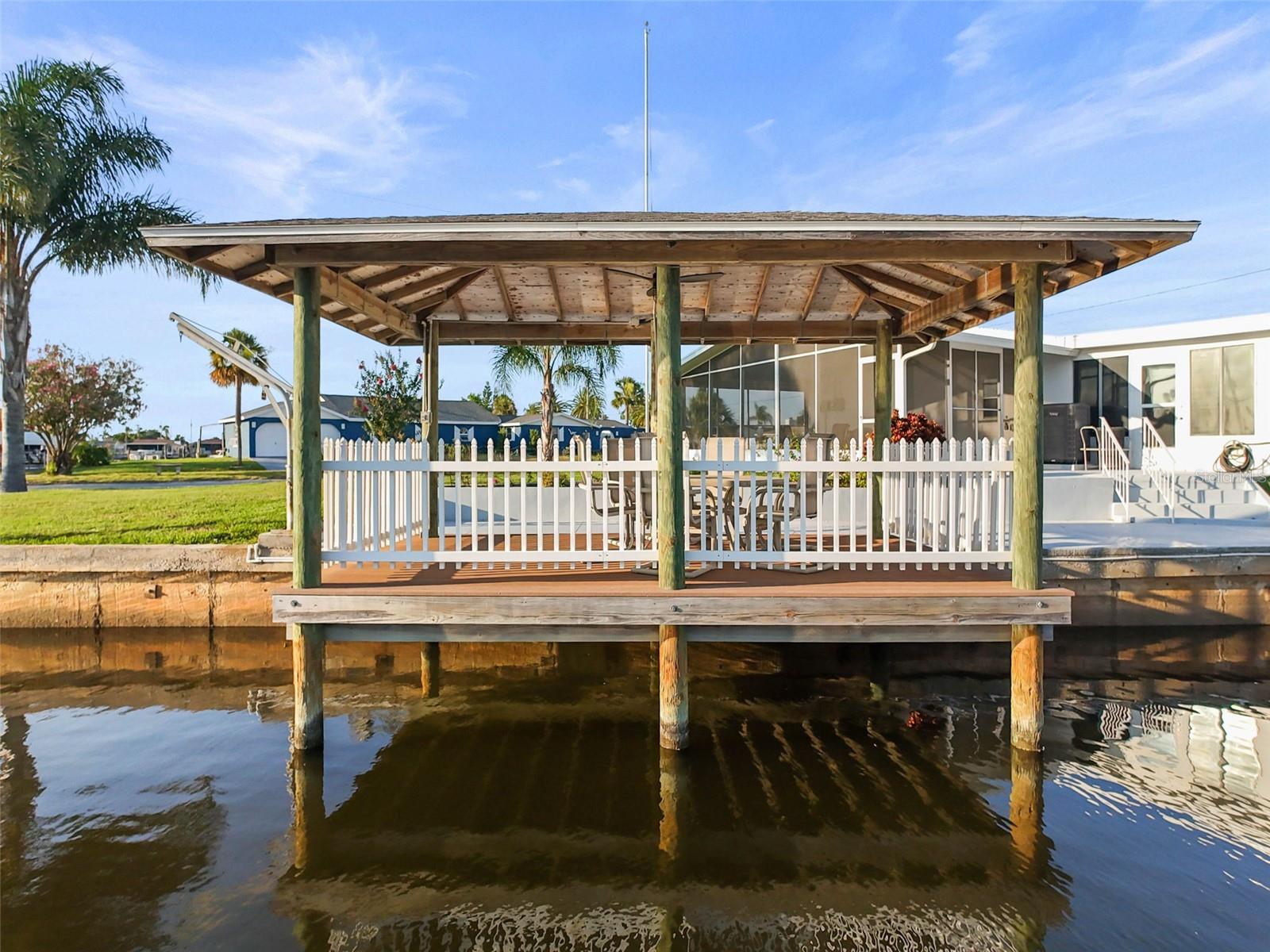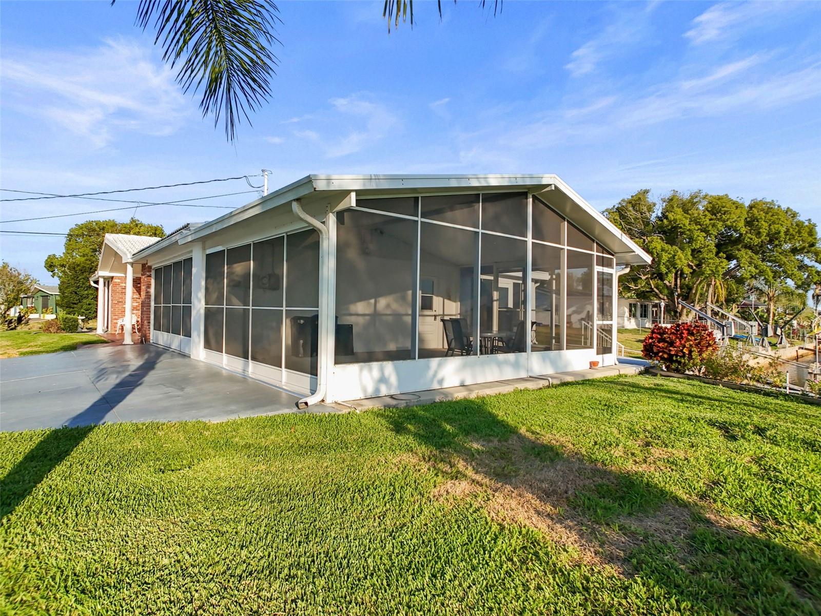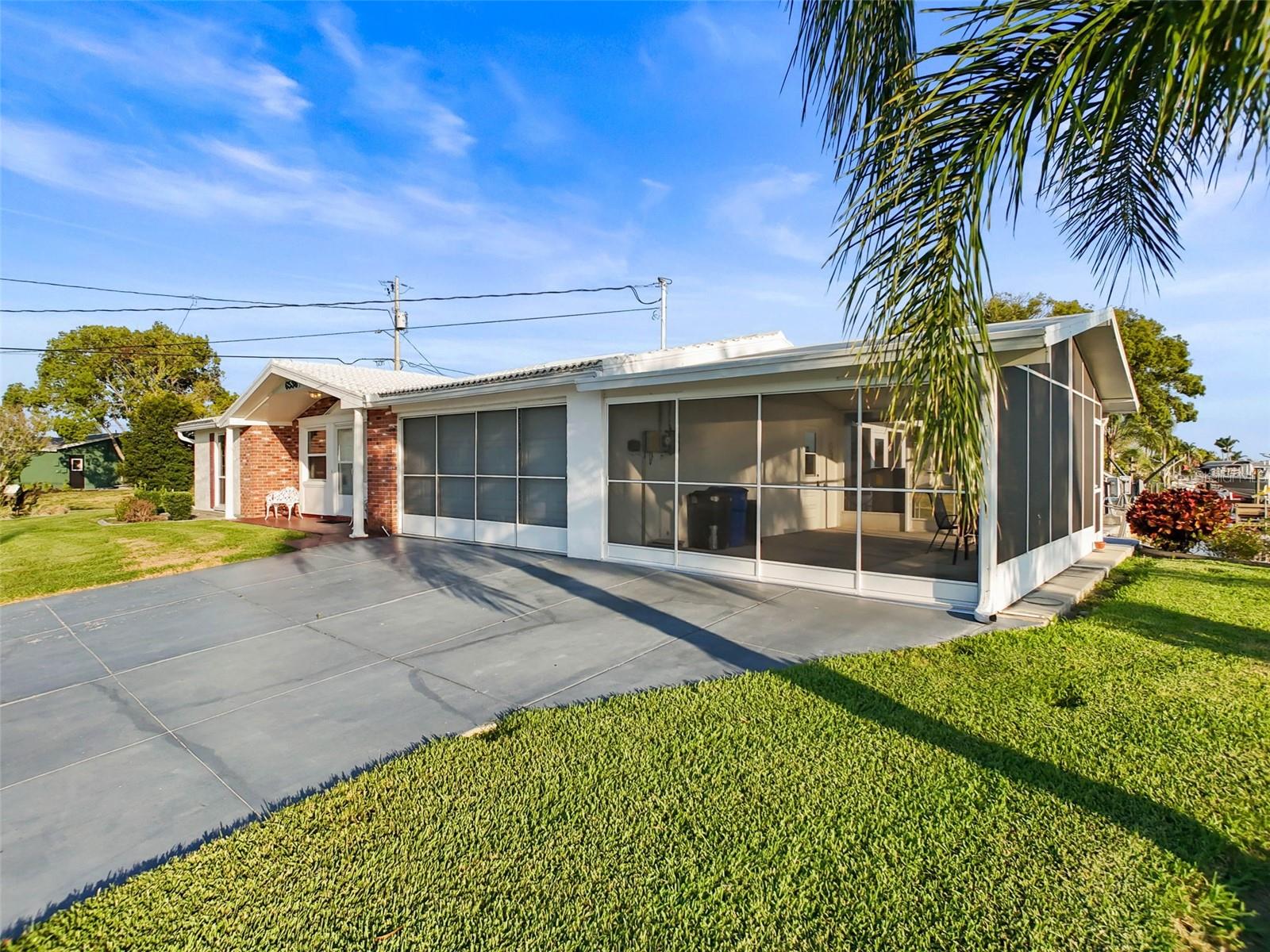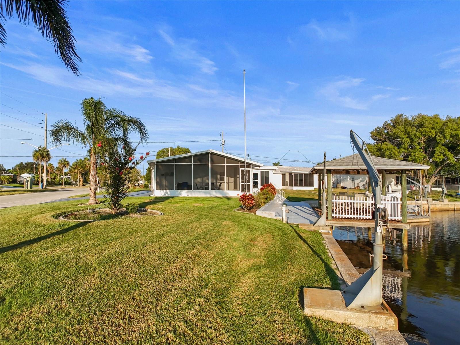 $20K PRICE REDUCTION!!!! Direct Gulf Access Home! Featuring a true 2 Car Garage plus a 1½ car screened carport, located on a double lot with plenty of room to add a pool on either side of the home! What a rare find. The charming brick exterior along with the mature landscaping and oversized lush lawn, has tons of curb appeal. This 3 Bedroom, 1 bath (really 2), home has a nice light and bright interior. The second bathroom is located in the garage but can be easily converted to the inside. The front bedrooms are a nice size and are centrally located near the hall bathroom. The living area of the home is large and has 2 beautiful windows to add lots of natural lighting. There are many beautiful white cabinets in the kitchen for all items. The dining area is roomy enough for a large table and also has built-in cabinets for even more storage. The third bedroom is located in the back of the home along with an enclosed sunroom that can serve as an office or second tv room. The possibilities are endless with this room. This home boasts a remarkable 86-feet of seawall, accompanied by a covered stationary dock, offering ample opportunities for boating and fishing enthusiasts. And you still have plenty of room for all your toys. Picture waking up to the prospect of setting sail in the Gulf within minutes from your deep-water canal. The fun is never ending, and the SUNSETS are always AMAZING! You can also enjoy those beautiful sunsets on your stationary dock while watching out for the dolphins, ducks, manatees and other fish make their way through the deep canal. You can have a lovely dinner at any of our waterfront dining choices by boat, including Hooters, Whiskey River, Whiskey Joes, and many more. Hudson offers great restaurants, entertainment, marinas, boat rentals, charter fishing, public boat ramp and a beach area for swimming. Nearby Sunwest County Park, with over a mile of Clearwater Beach quality sand, where swimming, wakeboarding, beach volleyball, splash pad can be enjoyed by family and friends. Close to many amenities including medical services, hospitals, shopping and more. Tampa International Airport is 45 minutes away, Disney World 69 miles, and Clearwater Beach 27 miles. Live the Florida lifestyle in Leisure Beach with no HOA and no CDD, plenty of wonderful neighbors, who get together for community events, such as parties, chili cook-offs, rib cook-offs, kayaking, and so much more. ALL WINDOWS HAVE BEEN REPLACED OVER THE YEARS STARTING IN THE YEAR 2000, FLAT ROOF RECOVERED IN 2023, WATER HEATER REPLACED 2022, NEW A/C INSTALLED IN 2023. LVP FLOORING 2024. Call today to see this very rare find.