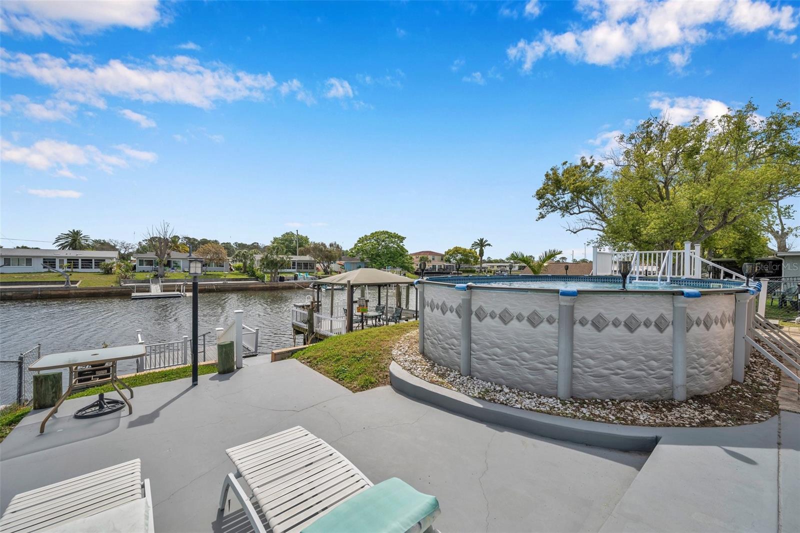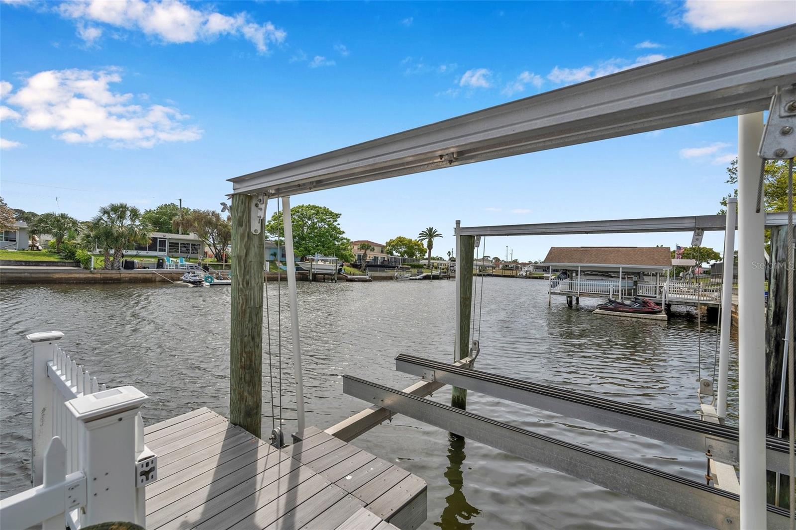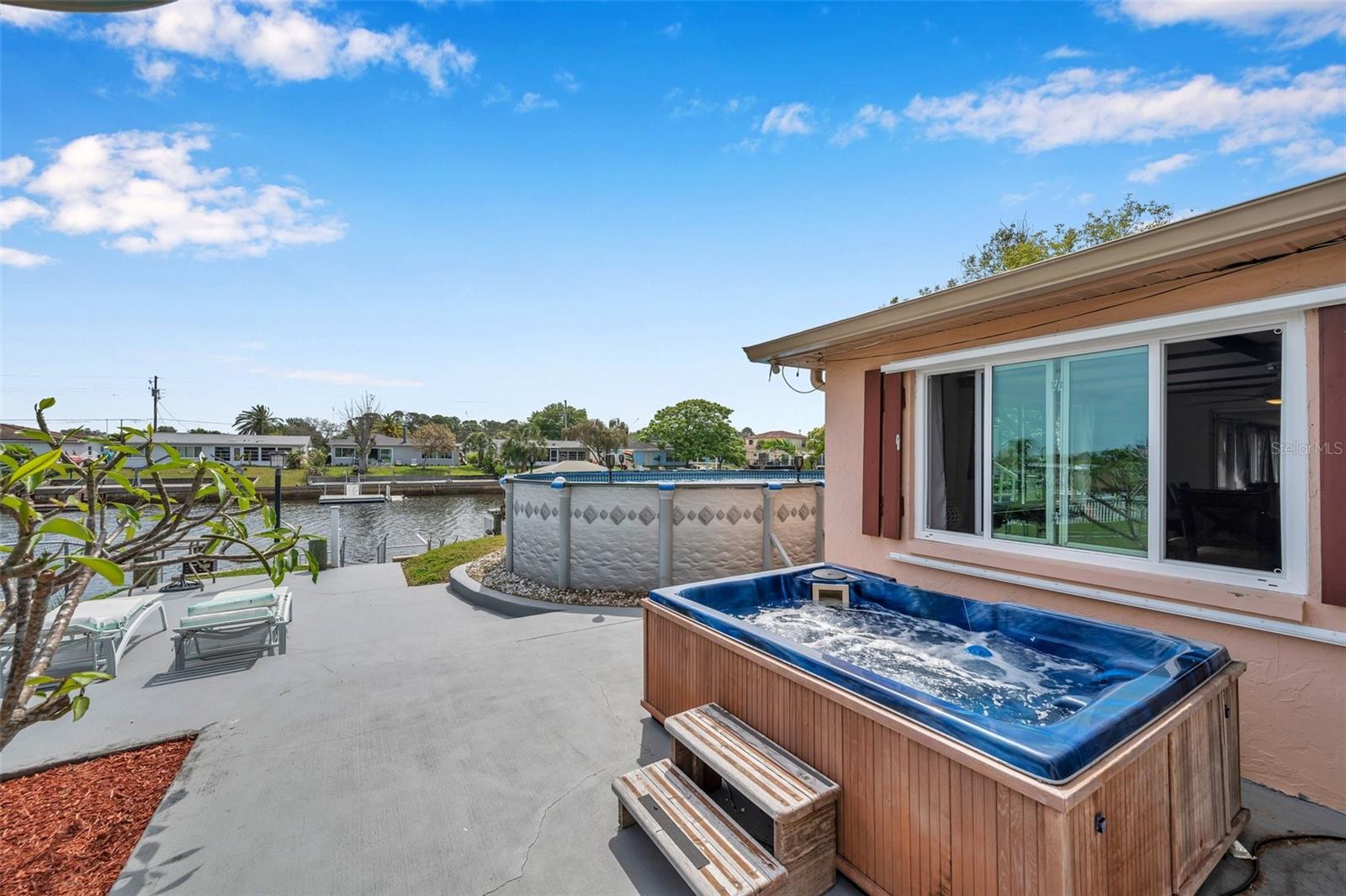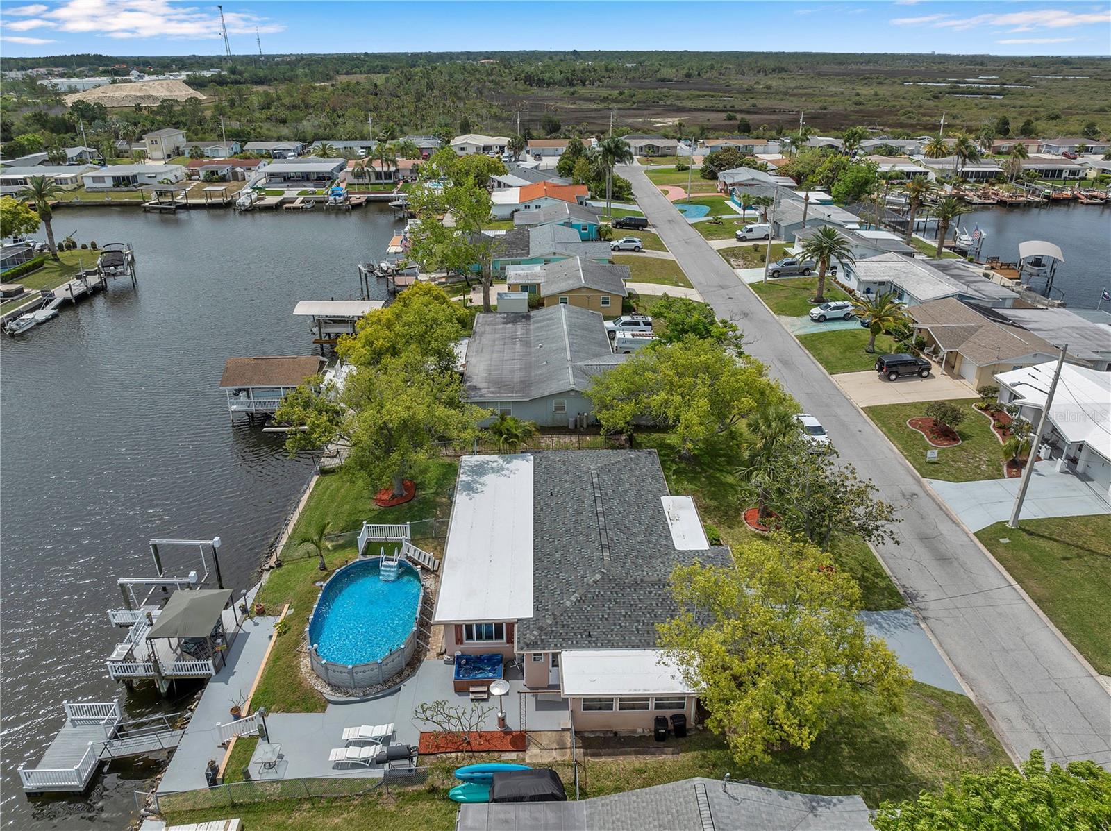LOOK NO FURTHER. This exquisite 1574 sq ft: 3/2/2 WATERFRONT/CANAL/POOL HOME is located in the coveted Leisure Beach neighborhood in Hudson, Florida. This property offers waterfront living at its finest & boasts a BRAND NEW ROOF FEB 2024 & much more! This home sits on high grounds, in the past 11 years this home has NEVER FLOODED and never filed an insurance claim for flood or other because street has never flooded. Situated on 1.5 spacious lots, with 2 fenced yard areas with a sturdy 4' chain link, providing ample privacy and security. Step outside to enjoy 90 feet of your waterfront seawall with riprap guarding the seawalls integrity, a serene waterfront experience, which is less than a 15-minute boat ride to the beautiful open waters of The Gulf of Mexico. Truly a Fisherman's & Boaters Paradise. Indulge in leisurely afternoons by the above-ground pool or soak in the tranquility from the hot tub. The property also includes a generously sized partially covered dock, perfect for countless sunsets and for storing your watercraft. The remote-controlled 10,000 LB boat lift ensures convenient access to water adventures with tons of boating, fishing, kayaking & Dolphin Watching! The home's interior is equally impressive, with updates galore. From the fresh interior paint, the newly installed laminate tile flooring throughout to the updated appliances in the kitchen, including the extra fridge in the garage, making it truly move-in ready. Additional features include hurricane shutters with a transferable lifetime warranty, modern electrical system, a maintained drain system, a leaf filter system in gutters, a recently updated water heater.and updated sewer lines (2021) for added peace of mind. Comfort is paramount with a new Drain Sensor for the Central A/C, and the double-paned windows, which enhance energy efficiency, while a negative termite inspection provides further reassurance. With 3 bedrooms, 2 bathrooms, 2 car garage & the extra workshop room this home has ample flexible space for customization, this home offers both comfort and versatility. Don't miss the opportunity to make this lifestyle your own—schedule a showing today and envision the endless possibilities that await!