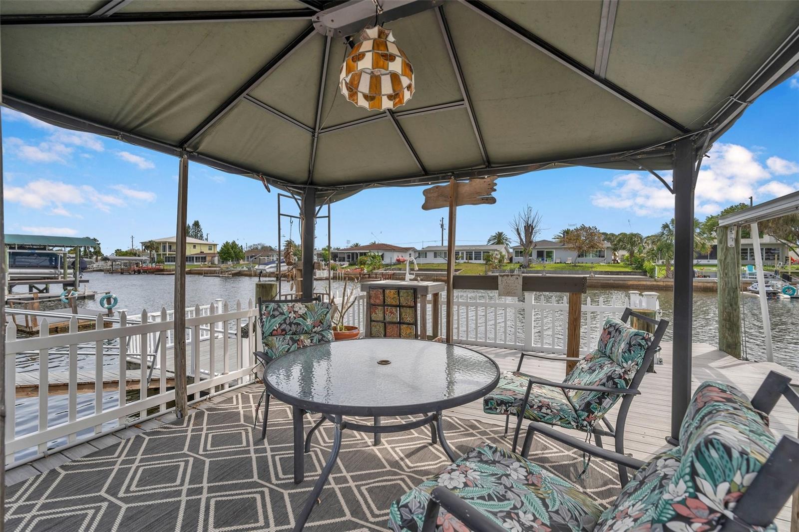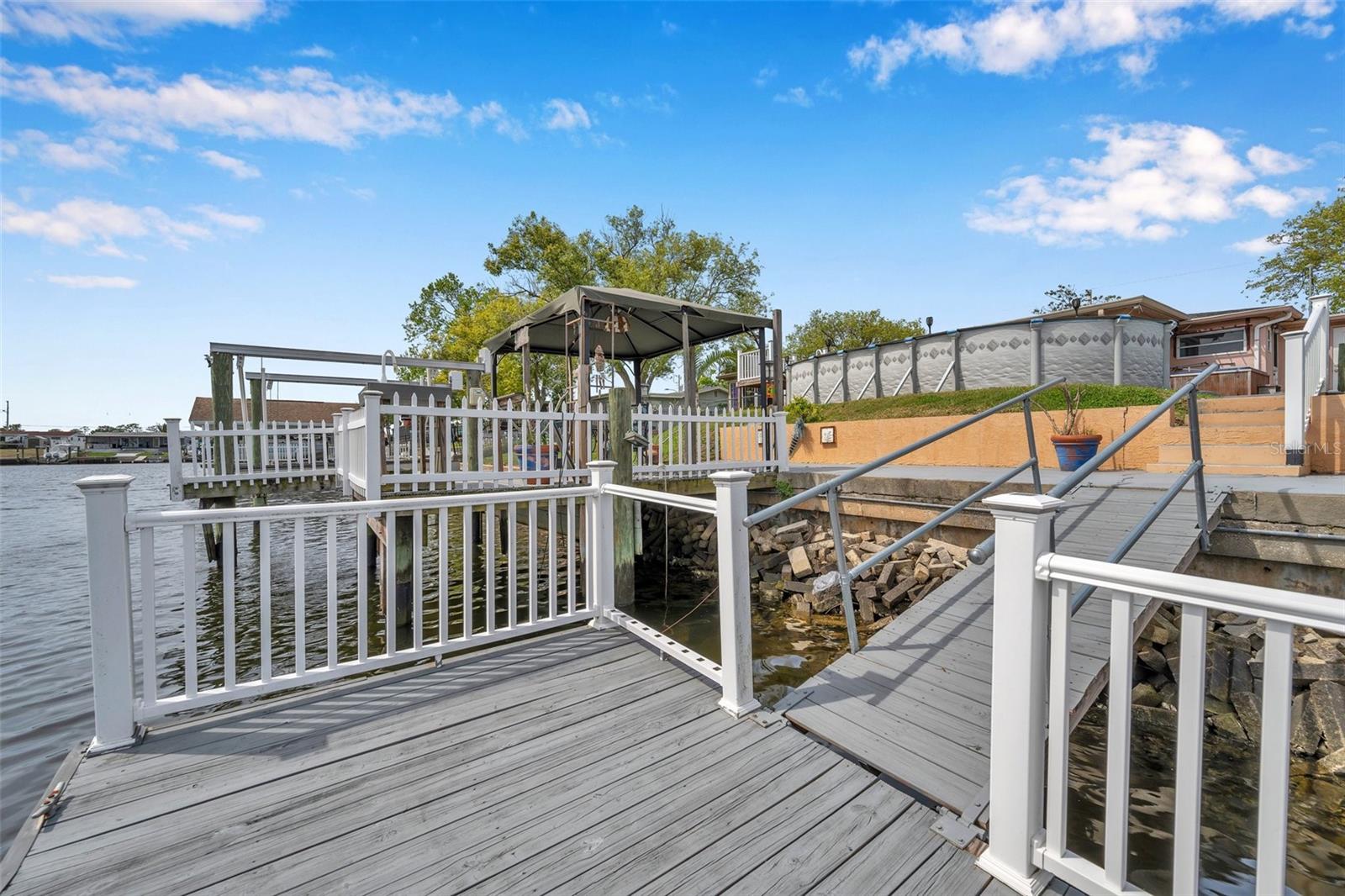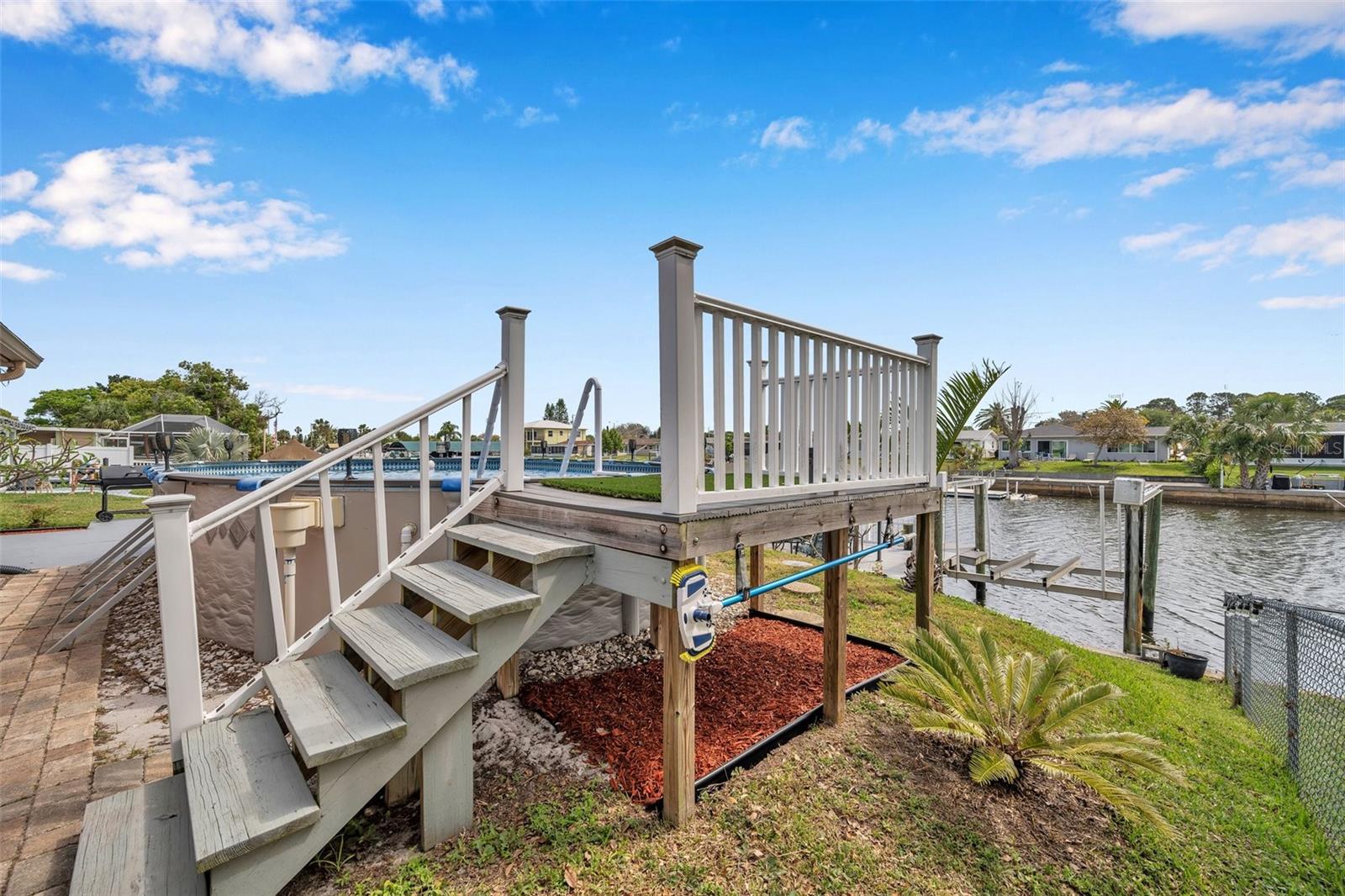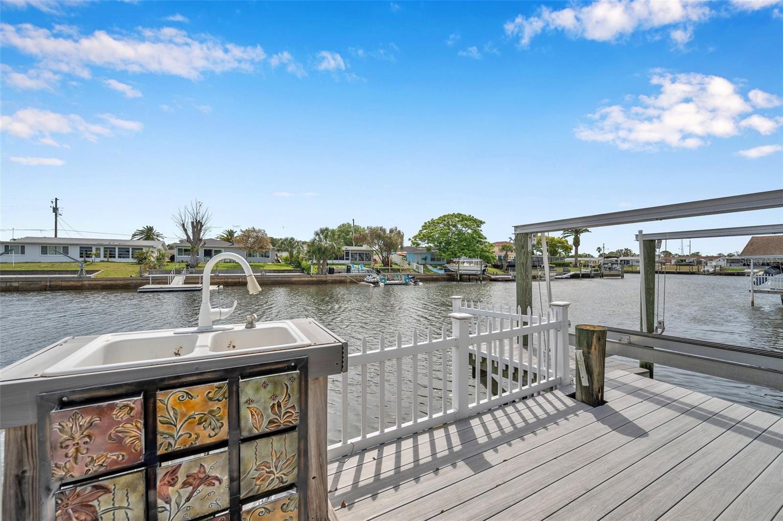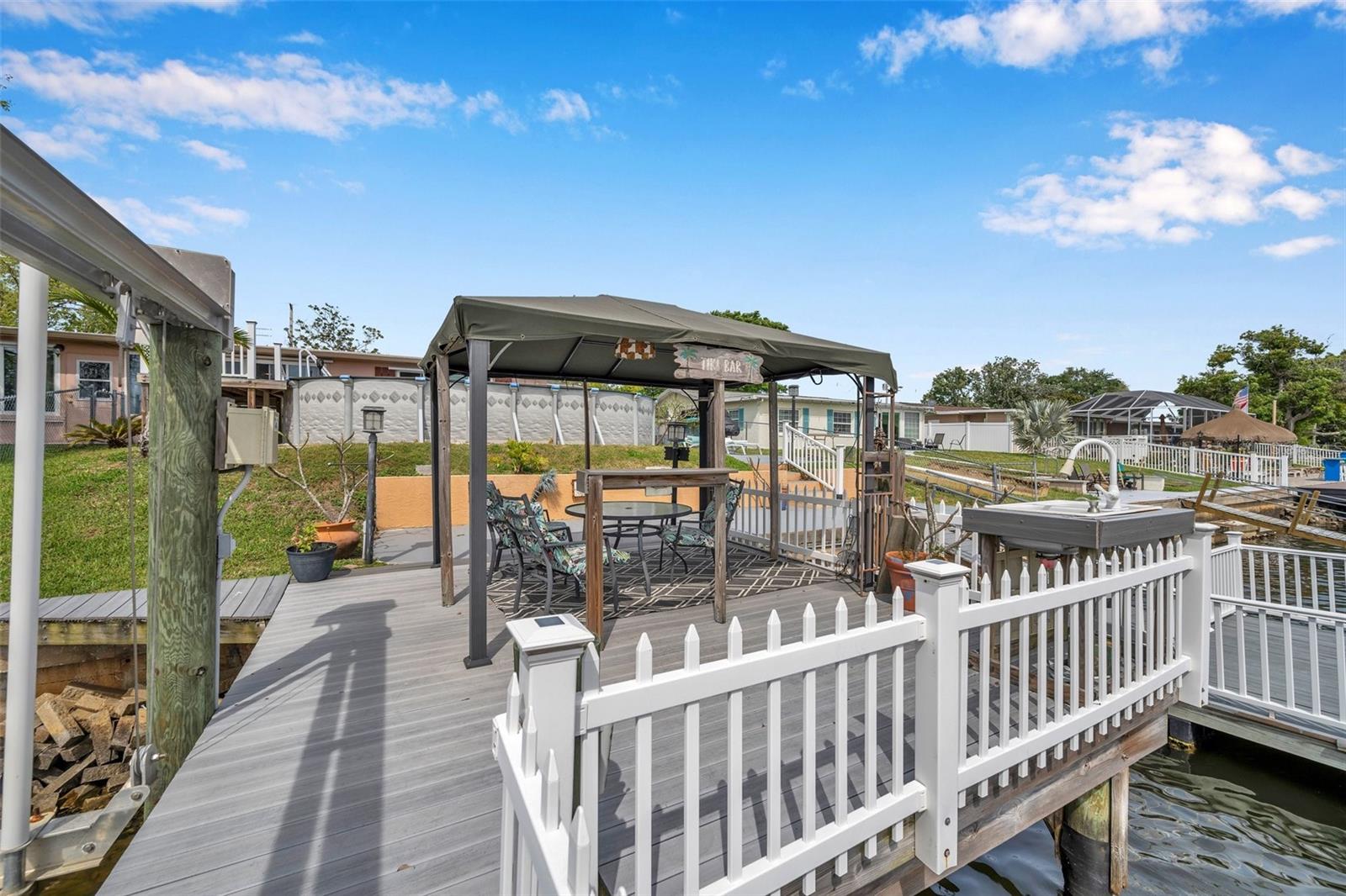 LOOK NO FURTHER. This exquisite 1574 sq ft: 3/2/2 WATERFRONT/CANAL/POOL HOME is located in the coveted Leisure Beach neighborhood in Hudson, Florida. This property offers waterfront living at its finest & boasts a BRAND NEW ROOF FEB 2024 & much more! This home sits on high grounds, in the past 11 years this home has NEVER FLOODED and never filed an insurance claim for flood or other because street has never flooded. Situated on 1.5 spacious lots, with 2 fenced yard areas with a sturdy 4' chain link, providing ample privacy and security. Step outside to enjoy 90 feet of your waterfront seawall with riprap guarding the seawalls integrity, a serene waterfront experience, which is less than a 15-minute boat ride to the beautiful open waters of The Gulf of Mexico. Truly a Fisherman's & Boaters Paradise. Indulge in leisurely afternoons by the above-ground pool or soak in the tranquility from the hot tub. The property also includes a generously sized partially covered dock, perfect for countless sunsets and for storing your watercraft. The remote-controlled 10,000 LB boat lift ensures convenient access to water adventures with tons of boating, fishing, kayaking & Dolphin Watching! The home's interior is equally impressive, with updates galore. From the fresh interior paint, the newly installed laminate tile flooring throughout to the updated appliances in the kitchen, including the extra fridge in the garage, making it truly move-in ready. Additional features include hurricane shutters with a transferable lifetime warranty, modern electrical system, a maintained drain system, a leaf filter system in gutters, a recently updated water heater.and updated sewer lines (2021) for added peace of mind. Comfort is paramount with a new Drain Sensor for the Central A/C, and the double-paned windows, which enhance energy efficiency, while a negative termite inspection provides further reassurance. With 3 bedrooms, 2 bathrooms, 2 car garage & the extra workshop room this home has ample flexible space for customization, this home offers both comfort and versatility. Don't miss the opportunity to make this lifestyle your own—schedule a showing today and envision the endless possibilities that await!