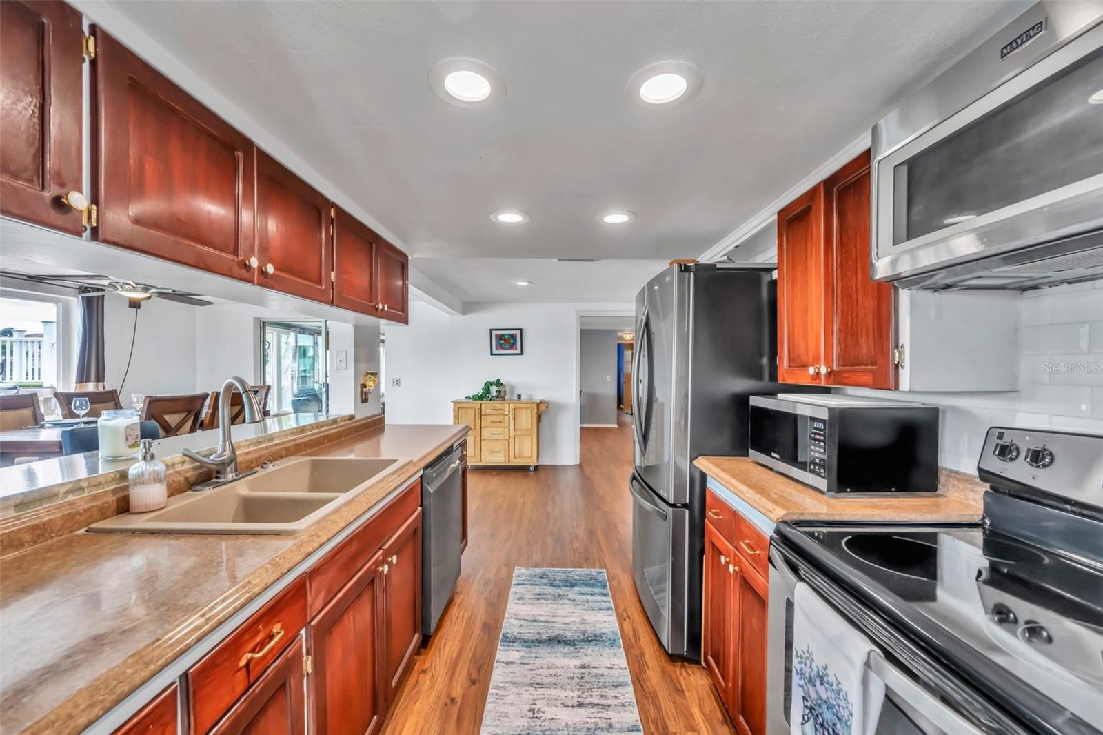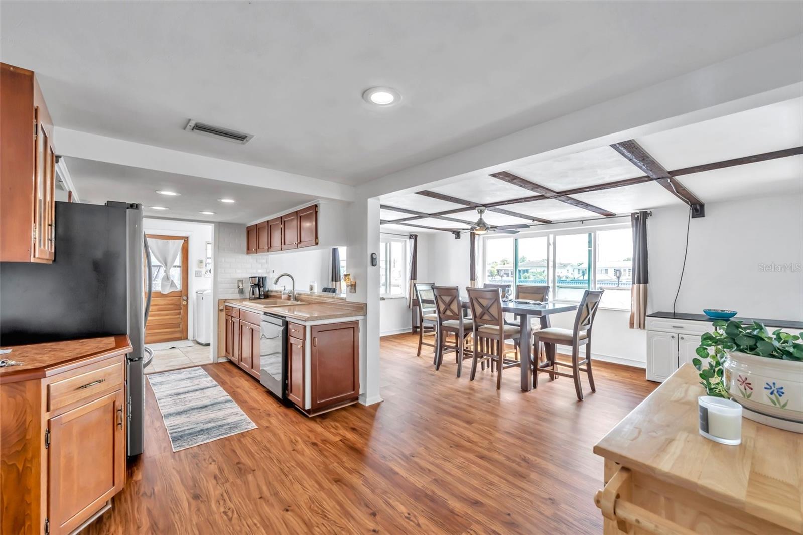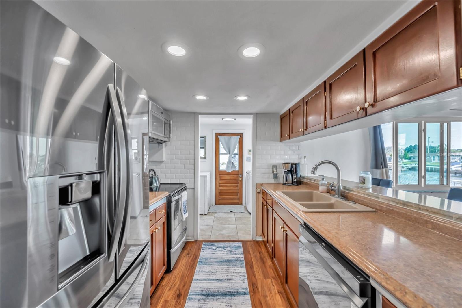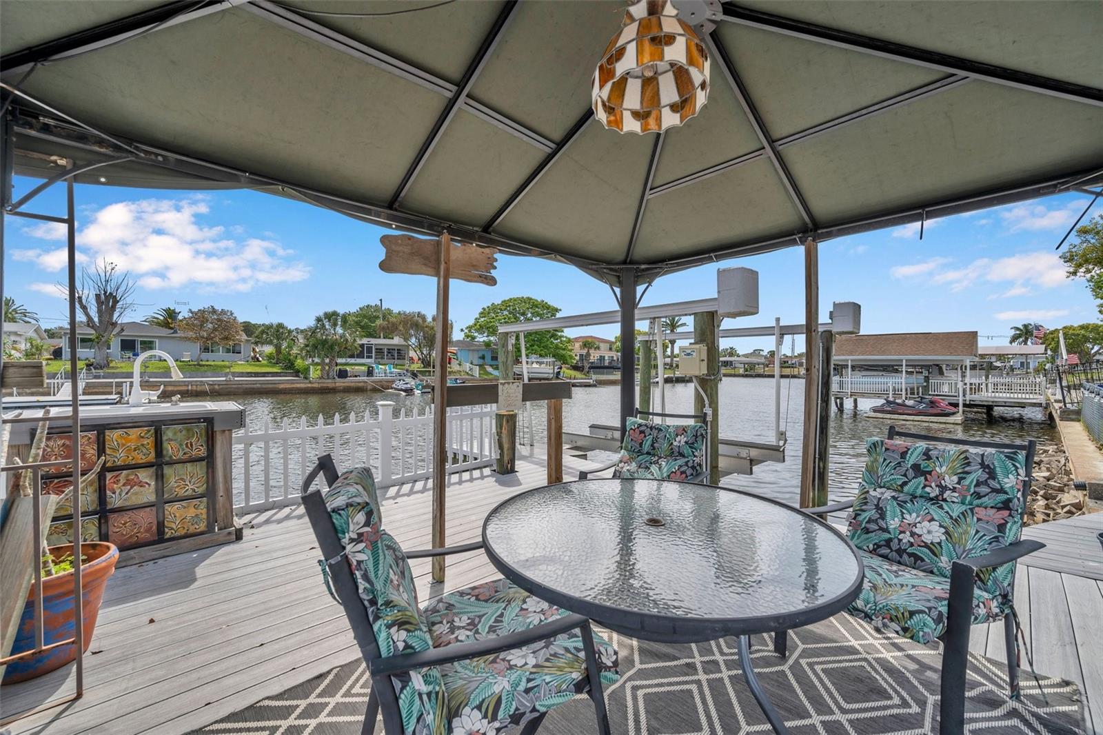 LOOK NO FURTHER. This exquisite 1574 sq ft: 3/2/2 WATERFRONT/CANAL/POOL HOME is located in the coveted Leisure Beach neighborhood in Hudson, Florida. This property offers waterfront living at its finest & boasts a BRAND NEW ROOF FEB 2024 & much more! This home sits on high grounds, in the past 11 years this home has NEVER FLOODED and never filed an insurance claim for flood or other because street has never flooded. Situated on 1.5 spacious lots, with 2 fenced yard areas with a sturdy 4' chain link, providing ample privacy and security. Step outside to enjoy 90 feet of your waterfront seawall with riprap guarding the seawalls integrity, a serene waterfront experience, which is less than a 15-minute boat ride to the beautiful open waters of The Gulf of Mexico. Truly a Fisherman's & Boaters Paradise. Indulge in leisurely afternoons by the above-ground pool or soak in the tranquility from the hot tub. The property also includes a generously sized partially covered dock, perfect for countless sunsets and for storing your watercraft. The remote-controlled 10,000 LB boat lift ensures convenient access to water adventures with tons of boating, fishing, kayaking & Dolphin Watching! The home's interior is equally impressive, with updates galore. From the fresh interior paint, the newly installed laminate tile flooring throughout to the updated appliances in the kitchen, including the extra fridge in the garage, making it truly move-in ready. Additional features include hurricane shutters with a transferable lifetime warranty, modern electrical system, a maintained drain system, a leaf filter system in gutters, a recently updated water heater.and updated sewer lines (2021) for added peace of mind. Comfort is paramount with a new Drain Sensor for the Central A/C, and the double-paned windows, which enhance energy efficiency, while a negative termite inspection provides further reassurance. With 3 bedrooms, 2 bathrooms, 2 car garage & the extra workshop room this home has ample flexible space for customization, this home offers both comfort and versatility. Don't miss the opportunity to make this lifestyle your own—schedule a showing today and envision the endless possibilities that await!