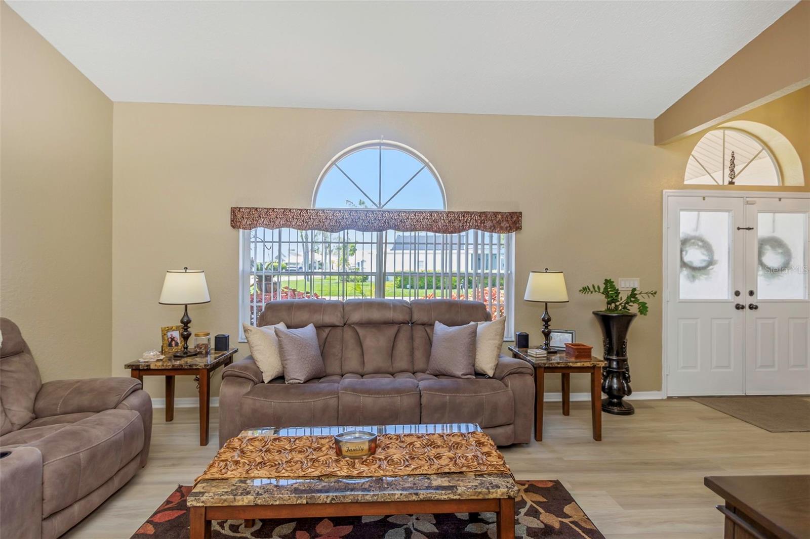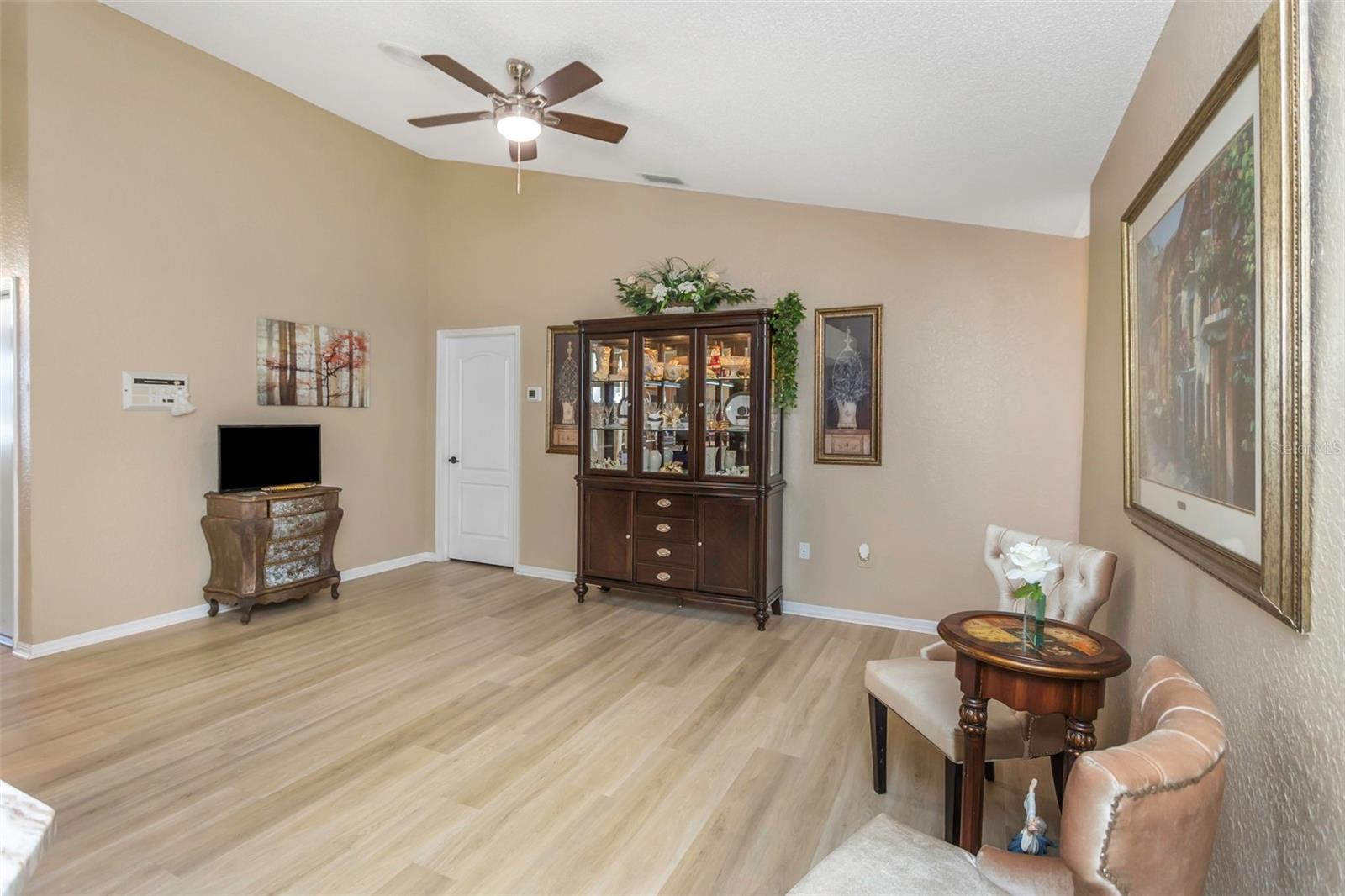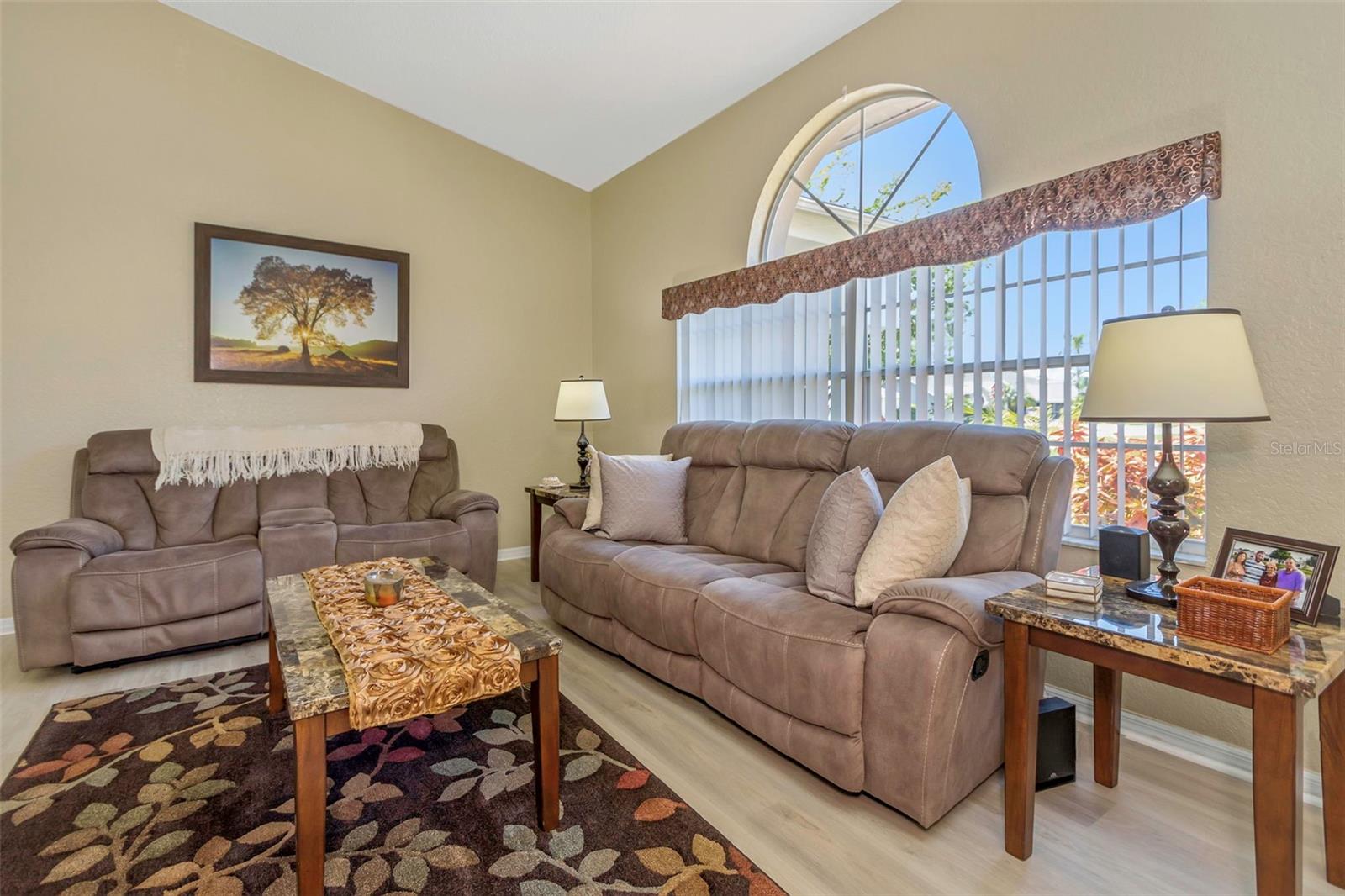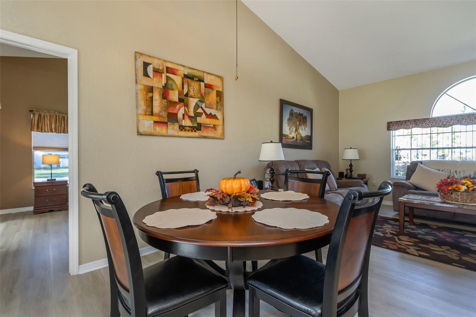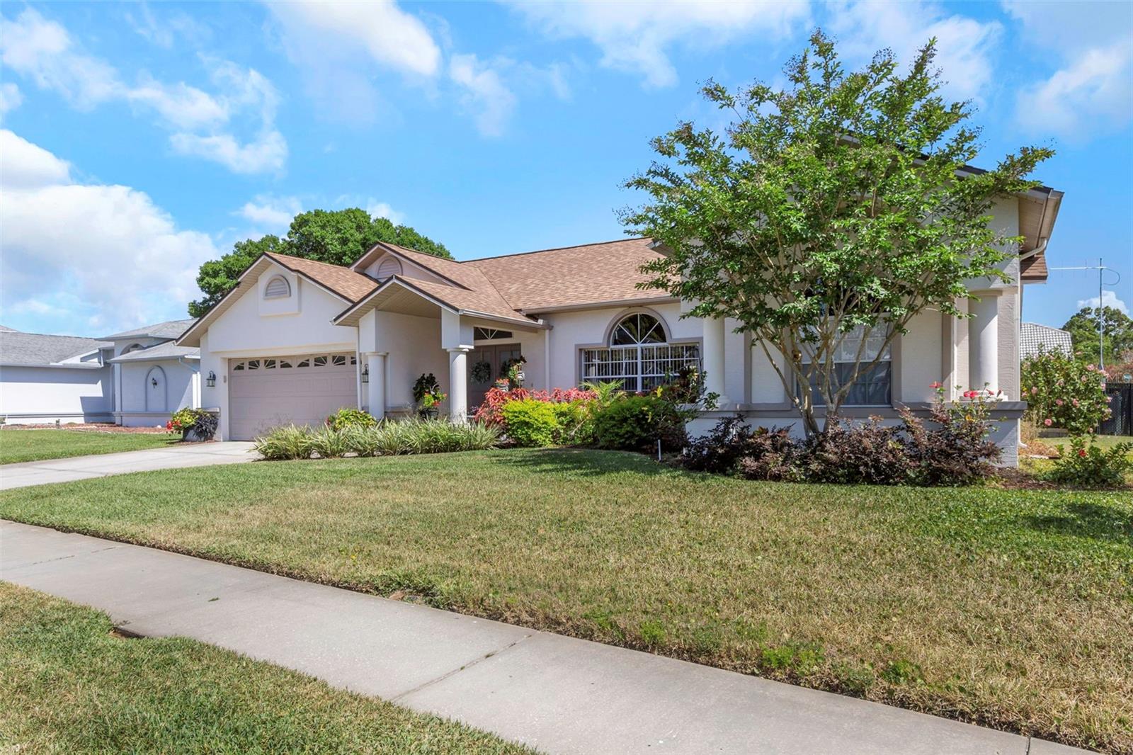 This gorgeous single-story house is perfectly placed on a generous corner lot and features three cozy bedrooms, two full baths, and a spacious two-car garage—all designed with your comfort in mind. As you arrive, the home’s appealing exterior and well-kept landscape immediately catch your eye, leading you to the impressive double front doors with tasteful glass details. Inside, a welcoming foyer greets you, setting the stage with attractive luxury vinyl plank flooring that extends throughout the home. To your right, a warm formal living room invites you in, while the nearby eat-in kitchen and master suite radiate style and ease. On the left, find a flexible dining room ideal for cherished moments with loved ones. The kitchen, truly the heart of this home, is designed for those who love to cook, boasting NEW CABINETRY, striking Copacabana granite countertops, a breakfast bar, and an island—all supported by two large pantries for all your storage needs. Natural light floods in through the windows, highlighting the kitchen’s allure. It’s also equipped with modern stainless steel appliances. The roomy dining space offers an extra touch of family comfort. Slide open the doors to the bright Florida room, which provides additional storage and a peaceful spot for unwinding. The master bedroom is a restful retreat, complete with a ceiling fan, two walk-in closets, custom blinds, and the same elegant flooring found throughout the home. The master bath is a sweet escape, featuring dual vanities, plenty of cabinet space, a refreshing walk-in shower, and a deep soaking tub for the ultimate relaxation. With a NEW ROOF & A/C 2022, RENOVATED KITCHEN, NEW FLOORS & PAINT, this home is well-maintained and ready for you to move in. Outside, the large yard beckons with potential for outdoor fun and the option to add a personal pool or design your own garden paradise. Barrington Woods offers a wealth of amenities, including a pool, fitness center, lit tennis and pickleball courts, a vibrant clubhouse, billiards, and a library—all with LOW HOA fees and NO CDD fees. Located conveniently close to fine shopping, dining, beautiful beaches, marinas, and major highways to international airports, this home presents a rare chance to live the Florida dream. Don’t let this opportunity slip away—book a private tour today and start making memories in what could be your new home! This is YOUR HOME!