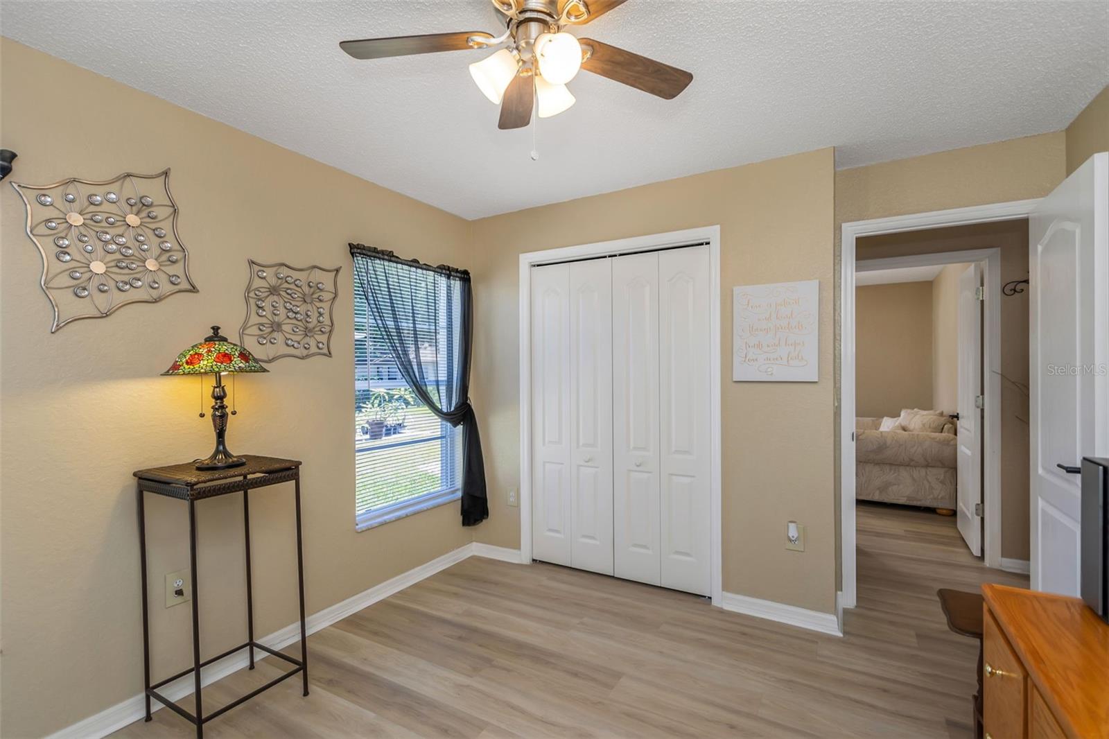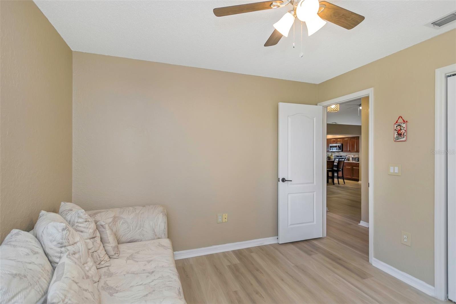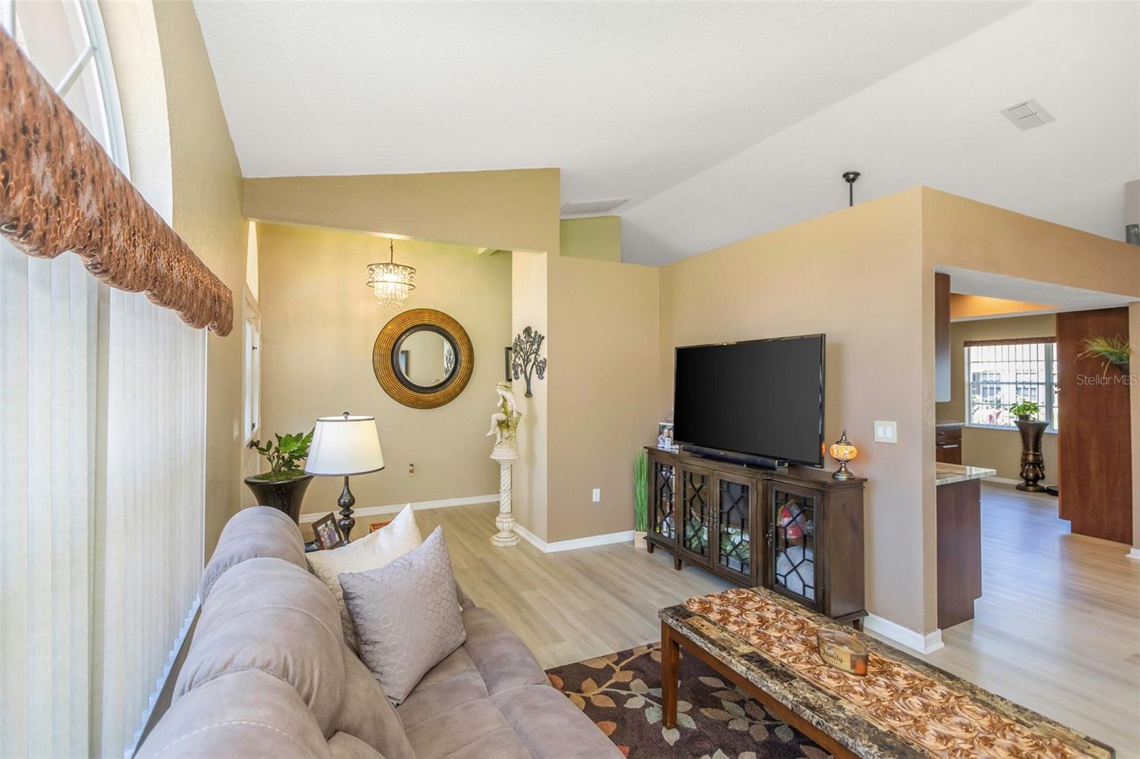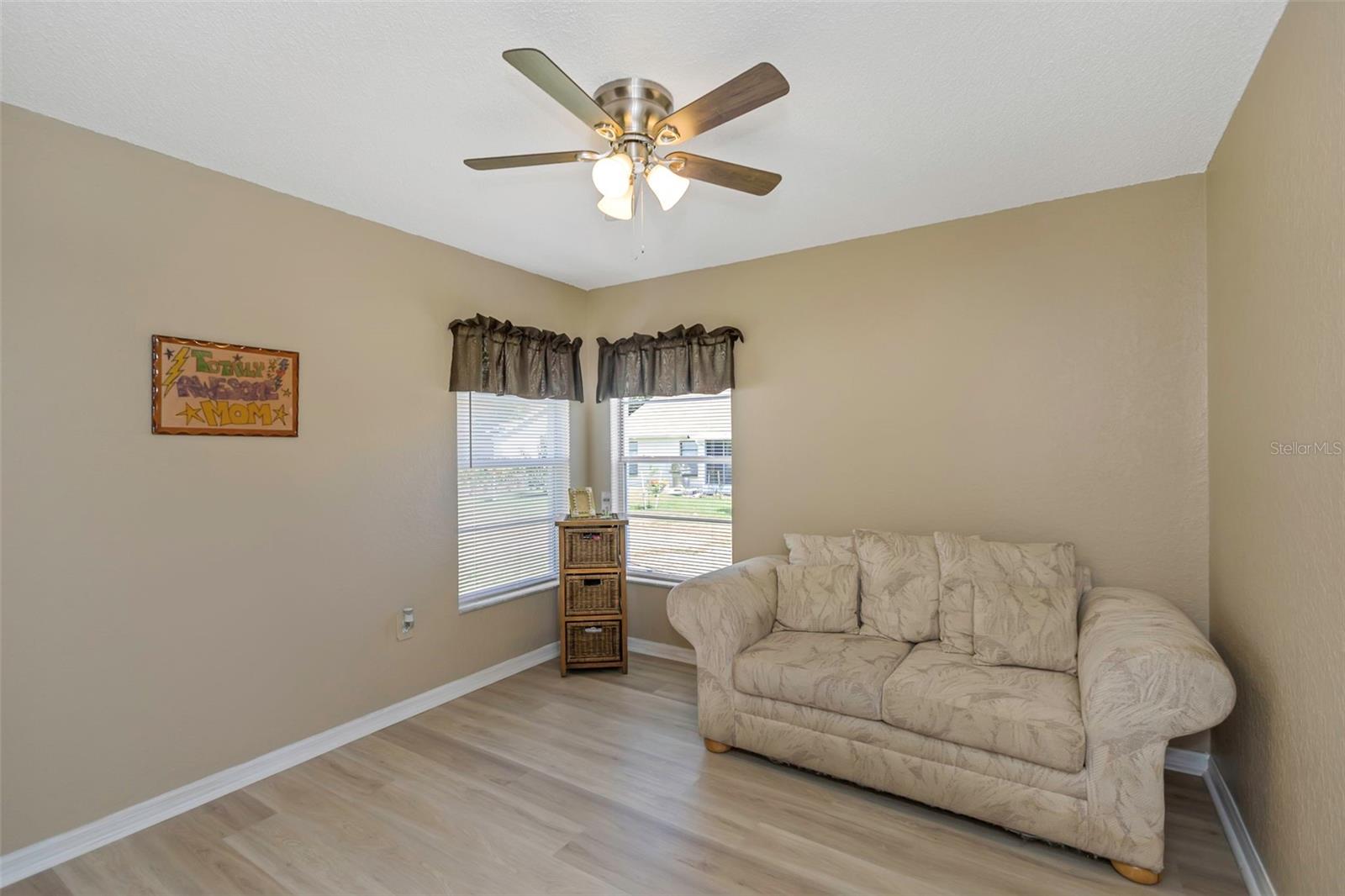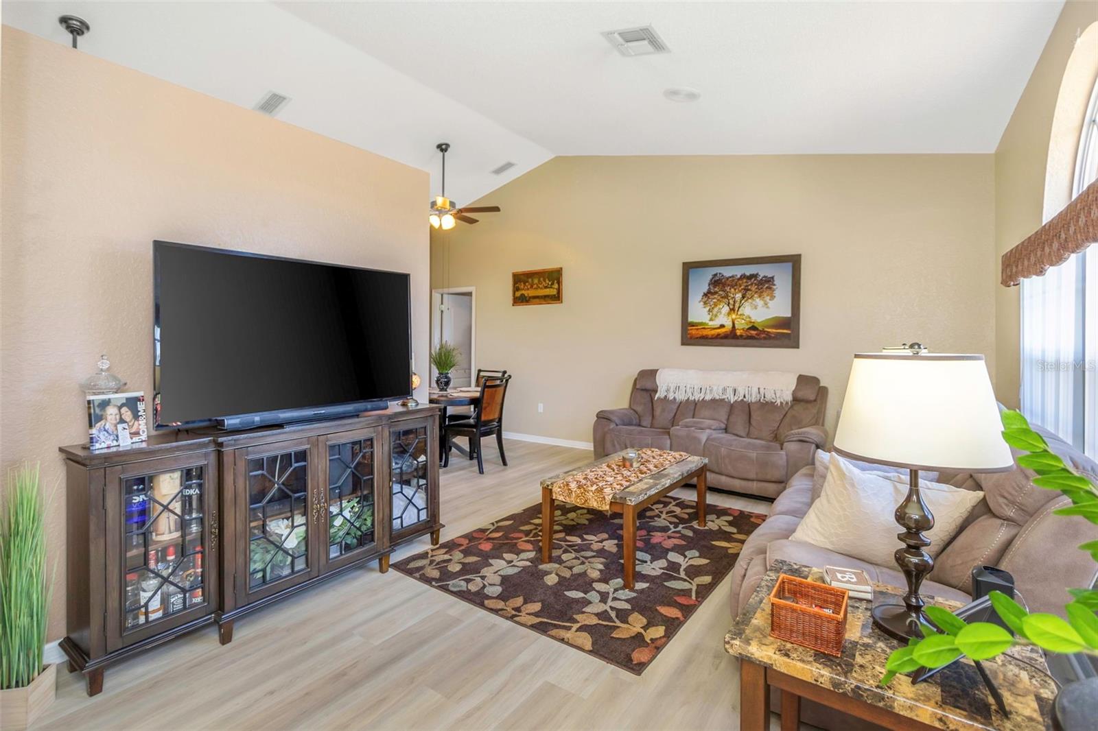 This gorgeous single-story house is perfectly placed on a generous corner lot and features three cozy bedrooms, two full baths, and a spacious two-car garage—all designed with your comfort in mind. As you arrive, the home’s appealing exterior and well-kept landscape immediately catch your eye, leading you to the impressive double front doors with tasteful glass details. Inside, a welcoming foyer greets you, setting the stage with attractive luxury vinyl plank flooring that extends throughout the home. To your right, a warm formal living room invites you in, while the nearby eat-in kitchen and master suite radiate style and ease. On the left, find a flexible dining room ideal for cherished moments with loved ones. The kitchen, truly the heart of this home, is designed for those who love to cook, boasting NEW CABINETRY, striking Copacabana granite countertops, a breakfast bar, and an island—all supported by two large pantries for all your storage needs. Natural light floods in through the windows, highlighting the kitchen’s allure. It’s also equipped with modern stainless steel appliances. The roomy dining space offers an extra touch of family comfort. Slide open the doors to the bright Florida room, which provides additional storage and a peaceful spot for unwinding. The master bedroom is a restful retreat, complete with a ceiling fan, two walk-in closets, custom blinds, and the same elegant flooring found throughout the home. The master bath is a sweet escape, featuring dual vanities, plenty of cabinet space, a refreshing walk-in shower, and a deep soaking tub for the ultimate relaxation. With a NEW ROOF & A/C 2022, RENOVATED KITCHEN, NEW FLOORS & PAINT, this home is well-maintained and ready for you to move in. Outside, the large yard beckons with potential for outdoor fun and the option to add a personal pool or design your own garden paradise. Barrington Woods offers a wealth of amenities, including a pool, fitness center, lit tennis and pickleball courts, a vibrant clubhouse, billiards, and a library—all with LOW HOA fees and NO CDD fees. Located conveniently close to fine shopping, dining, beautiful beaches, marinas, and major highways to international airports, this home presents a rare chance to live the Florida dream. Don’t let this opportunity slip away—book a private tour today and start making memories in what could be your new home! This is YOUR HOME!
