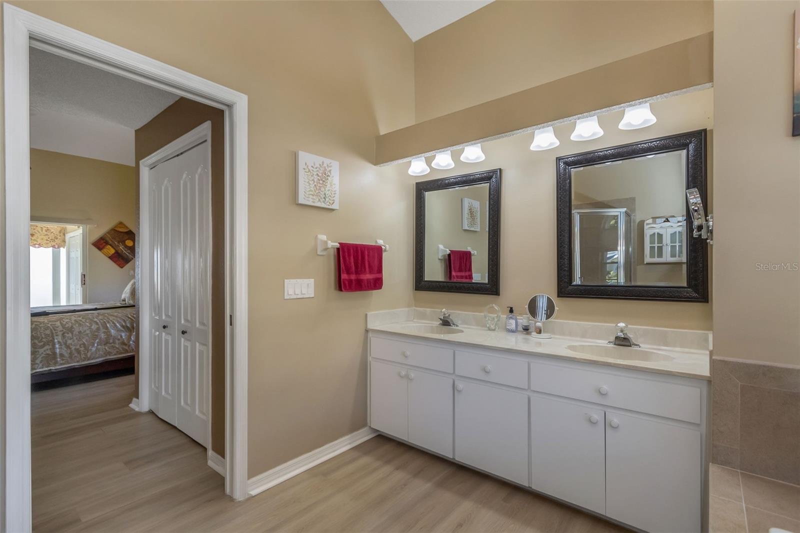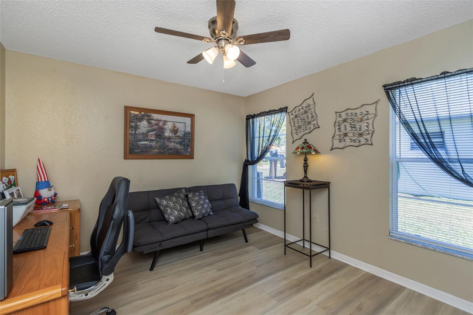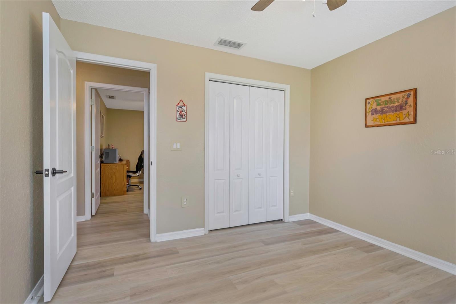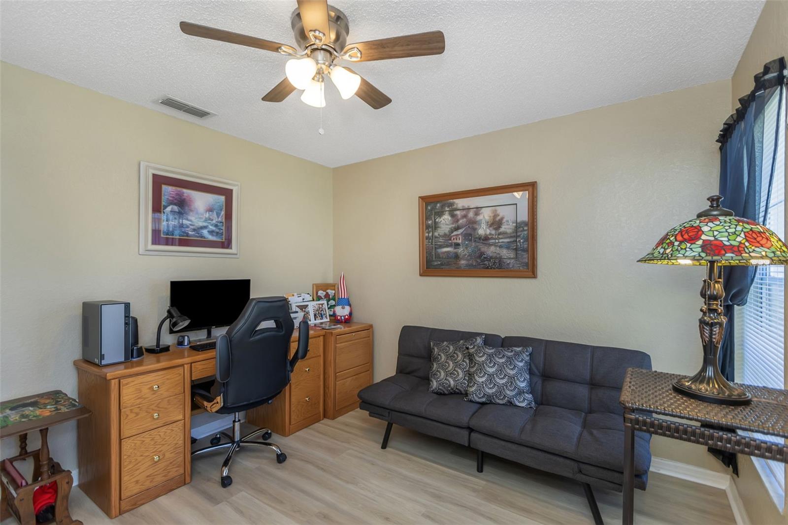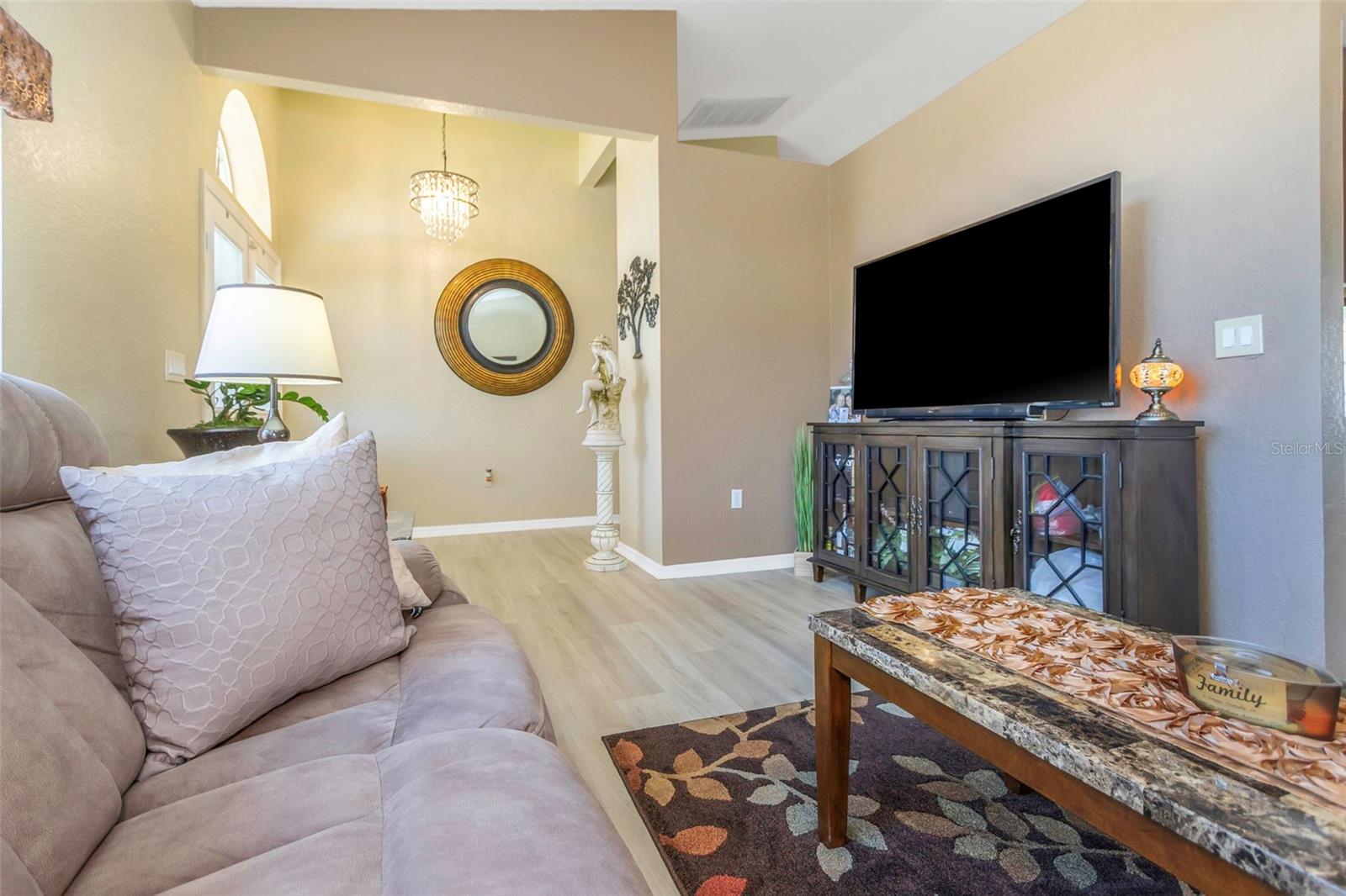 This gorgeous single-story house is perfectly placed on a generous corner lot and features three cozy bedrooms, two full baths, and a spacious two-car garage—all designed with your comfort in mind. As you arrive, the home’s appealing exterior and well-kept landscape immediately catch your eye, leading you to the impressive double front doors with tasteful glass details. Inside, a welcoming foyer greets you, setting the stage with attractive luxury vinyl plank flooring that extends throughout the home. To your right, a warm formal living room invites you in, while the nearby eat-in kitchen and master suite radiate style and ease. On the left, find a flexible dining room ideal for cherished moments with loved ones. The kitchen, truly the heart of this home, is designed for those who love to cook, boasting NEW CABINETRY, striking Copacabana granite countertops, a breakfast bar, and an island—all supported by two large pantries for all your storage needs. Natural light floods in through the windows, highlighting the kitchen’s allure. It’s also equipped with modern stainless steel appliances. The roomy dining space offers an extra touch of family comfort. Slide open the doors to the bright Florida room, which provides additional storage and a peaceful spot for unwinding. The master bedroom is a restful retreat, complete with a ceiling fan, two walk-in closets, custom blinds, and the same elegant flooring found throughout the home. The master bath is a sweet escape, featuring dual vanities, plenty of cabinet space, a refreshing walk-in shower, and a deep soaking tub for the ultimate relaxation. With a NEW ROOF & A/C 2022, RENOVATED KITCHEN, NEW FLOORS & PAINT, this home is well-maintained and ready for you to move in. Outside, the large yard beckons with potential for outdoor fun and the option to add a personal pool or design your own garden paradise. Barrington Woods offers a wealth of amenities, including a pool, fitness center, lit tennis and pickleball courts, a vibrant clubhouse, billiards, and a library—all with LOW HOA fees and NO CDD fees. Located conveniently close to fine shopping, dining, beautiful beaches, marinas, and major highways to international airports, this home presents a rare chance to live the Florida dream. Don’t let this opportunity slip away—book a private tour today and start making memories in what could be your new home! This is YOUR HOME!