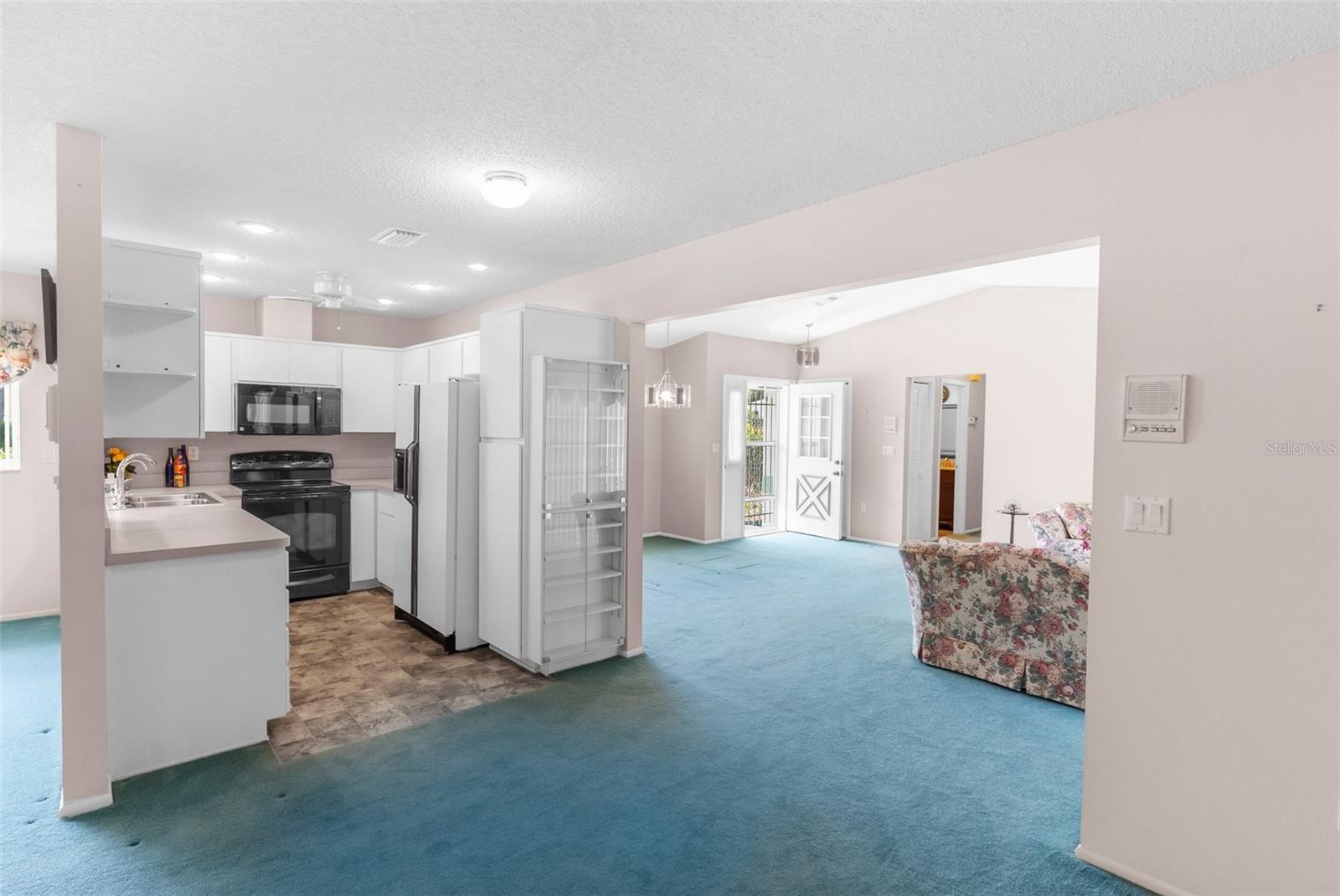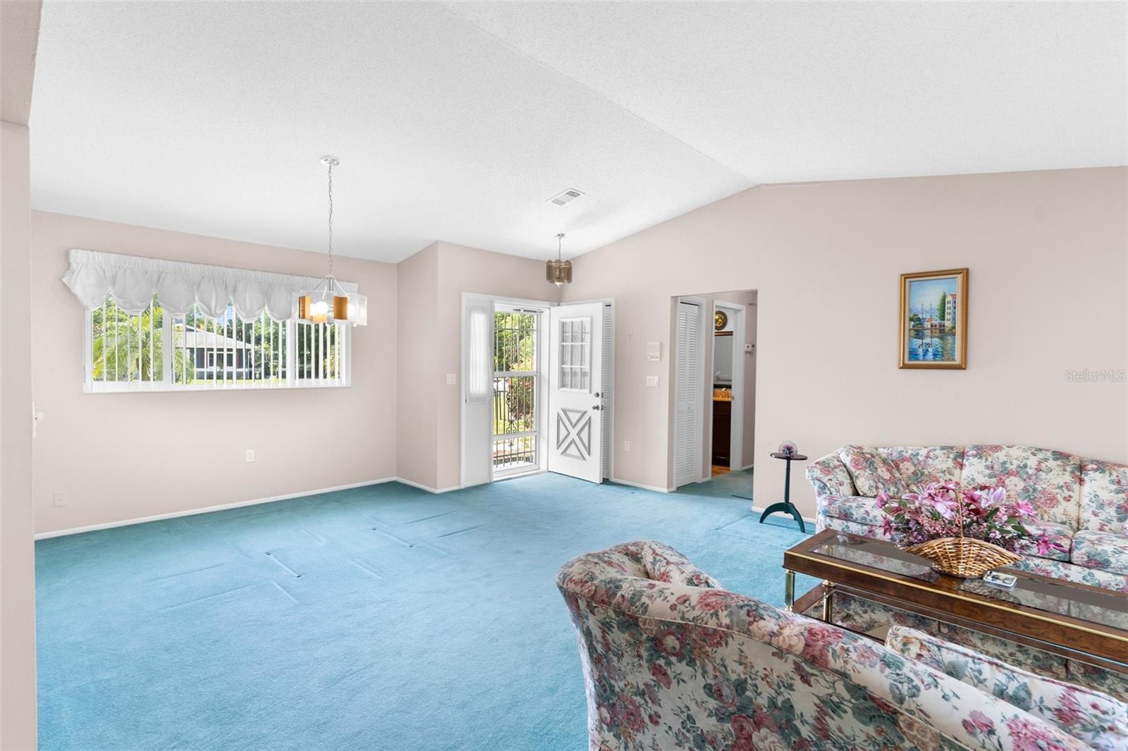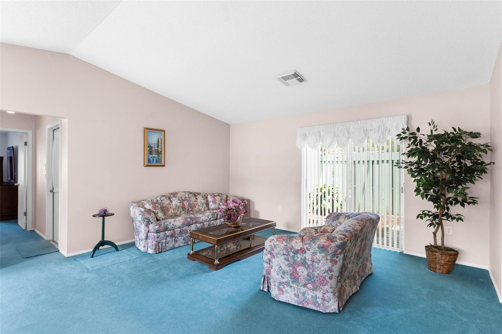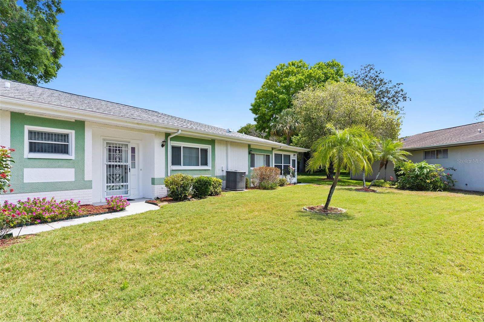 NEW PRICE IMPROVEMENT! Spacious with lots of potential this two bedroom, two bathroom home located in a peaceful neighborhood. This property offers a flexible layout with a living room, dining room, den, bonus room, and a cozy kitchen. Upon entering, you're welcomed into a bright living room, the adjacent dining room provides a space for formal meals or casual gatherings. The den offers a cozy retreat, and the bonus room provides additional space for a playroom, hobby area, or home office. Step outside onto the large porch, enclosed with glass windows and equipped with its own AC unit, offering a serene space to relax or entertain. Additionally, the property includes a spacious yard with the bonus storage shed that's equipped with electricity and AC, making it perfect for a workshop, studio, or extra storage. There is a water softener and water filtration system, newer windows and irrigation. The roof was done in 2023. The community offers a clubhouse, pool and golf. The home is conveniently located near hospitals, schools and shopping