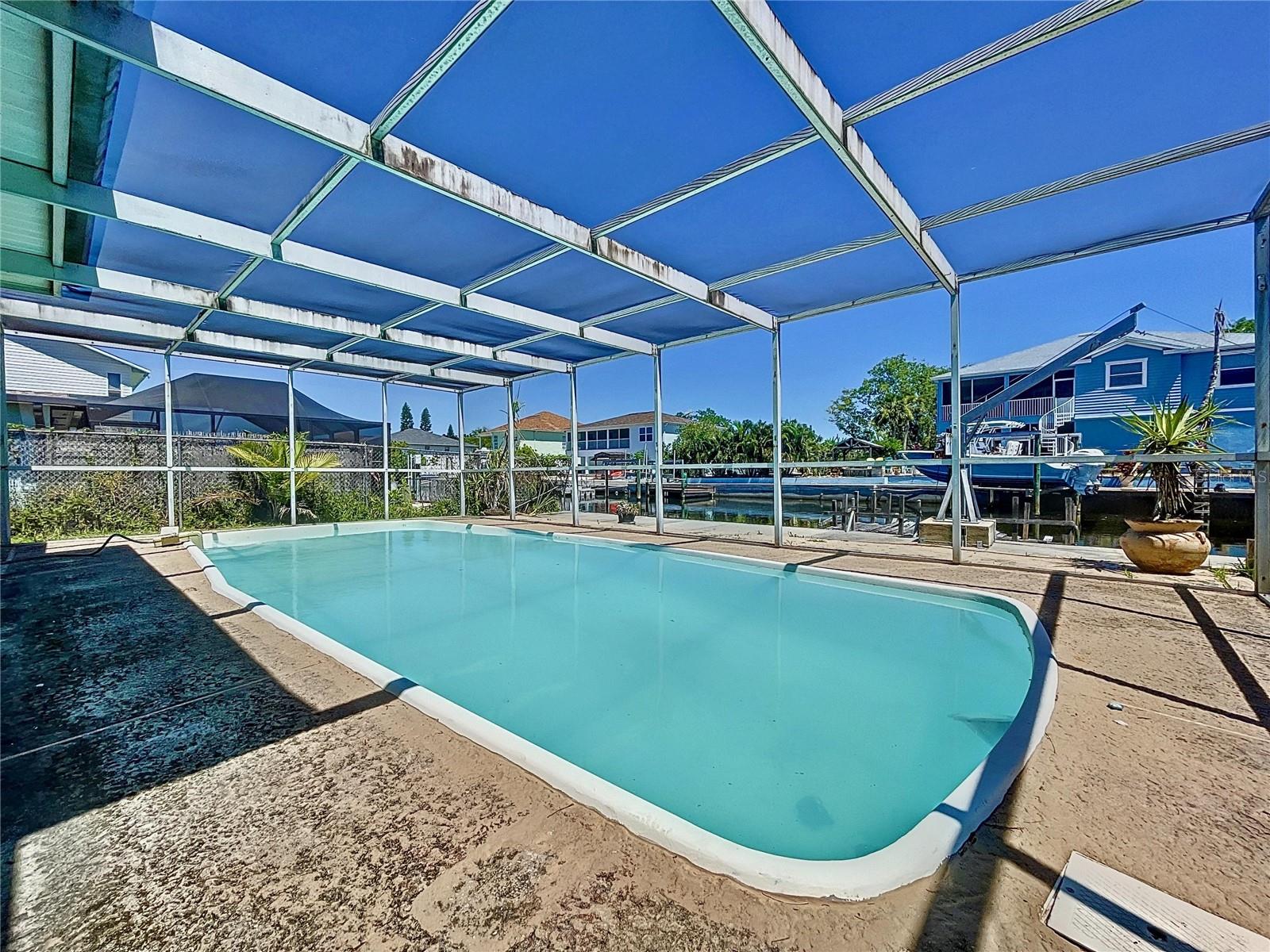 Watch manatee and dolphins from your raft in your pool!! From your home to the open Gulf of Mexico in less than 12 minutes of a no wake zone without any bridges!!! This Sea Pines direct gulf access 2/2 home is complete with modern redesigned kitchen with Stainless Steel Appliances, new LVP flooring, and tile backsplash. Freshly painted interior and newer windows!!! Relaxing pool with covered patio seating and storage areas. Floating dock does need replacement, but the deep water canal has a major spring boil directly behind the house meaning awesome fishing from your seawall, just think of all those redfish, snook, and mangrove snappers holding in that 70 degree water all year long!!!! Just free line a shrimp into the boil and hold on tight!!!! Sea Pines features a community boat ramp with an optional civic association that allows access to private community boat ramp directly across the canal!