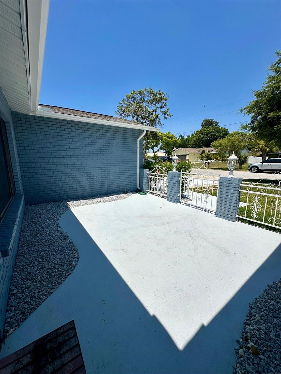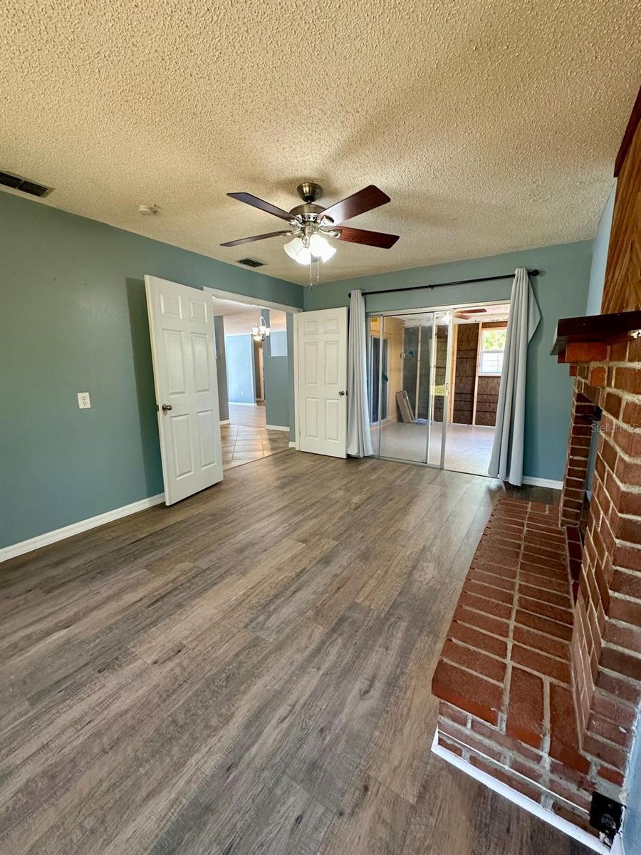 This wonderful and well kept property was newly renovated. New Roof 2023, AC 2013, the home features 2 bed 2 bath 1 car garage with an opportunity to turn the back porch into another room or just leave it as extra living area. The home has a gorgeous brick wood burning fireplace in the Florida room to enjoy in the winter. The spacious kitchen has breakfast area perfect for quick meals. The waterproof laminate covers the floor throughout the house. Plenty of storage found through the house pantry off the kitchen and 2 linen closets. Storage shed in the fenced in backyard. Electrical, water and sewer available for an RV. Hurricane protection with window awnings. Outdoor sitting are off the back porch.