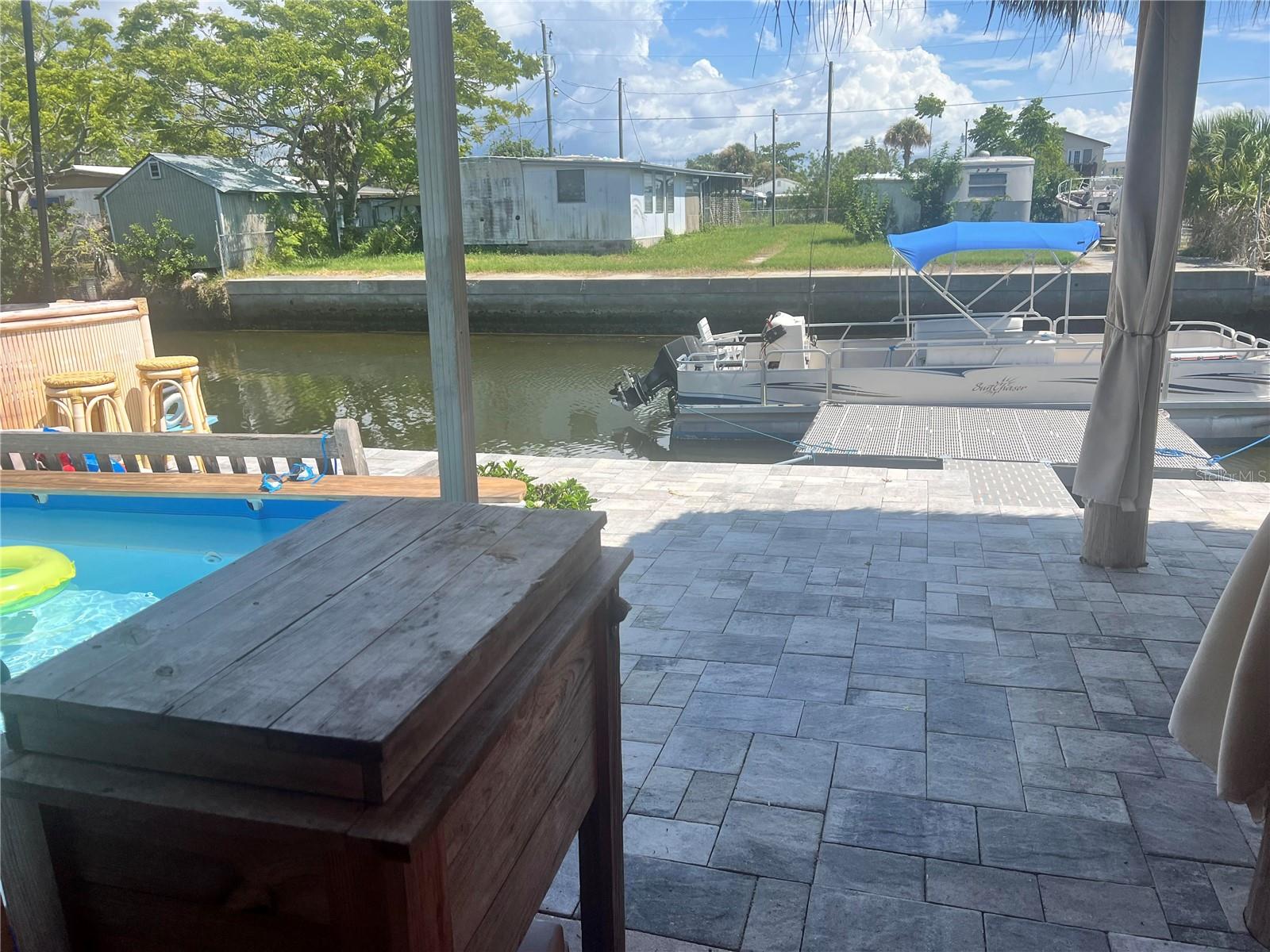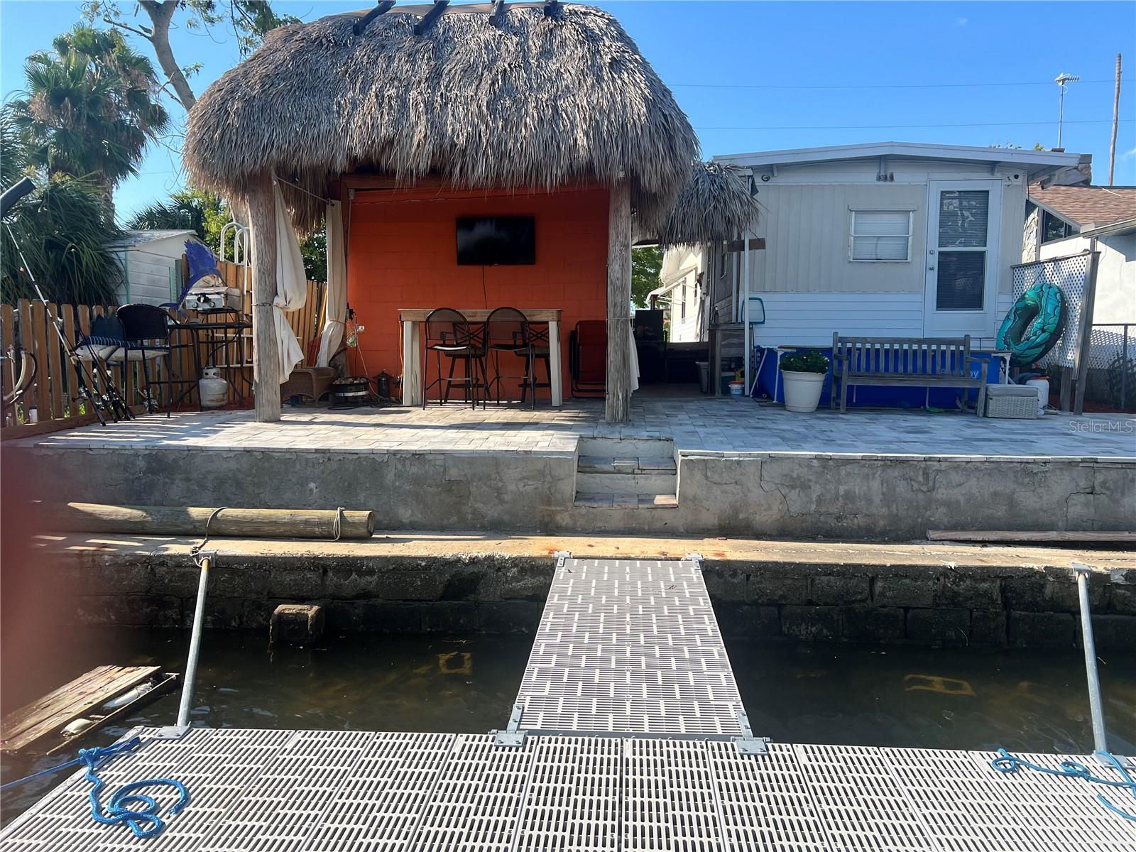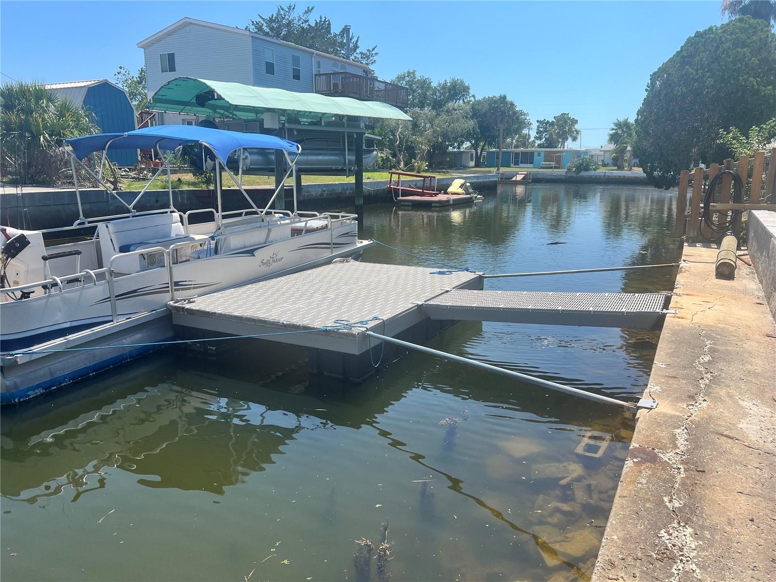 AMAZING CANAL WATERFRONT HOME has 2 bedrooms, 2 full bathrooms, living room area that is shared with the kitchen and dining space, open floor plan with split bedrooms and drywall throughout. This home is perfect for Florida living the Salt Life! Golf cart community with NO Home Owners' Association and no CDD required! The kitchen has been updated with wood cabinets and veneer countertops, kitchen walls are finished with Wainscoting, and beautiful waterproof laminate floors have just been installed throughout. Newer floating dock, pavers, and an outdoor shower out back. There is a concrete block storage building where the washer & dryer are located with a convenient 3rd commode and even a 3rd shower hookup; extra refrigerator with icemaker that conveys & plenty of storage room for your tools, workshop, fishing gear, and boating & water accessories. Privacy fence on both sides of the home. Enjoy the newer cypress hand-peeled tiki hut that was built by the Seminoles'! Cool off in the sitting pool and relax with a cocktail in your hand! Enjoy the backyard overlooking the 28-foot deep canal, and watch all the wildlife go by such as the ducks, manatees, osprey, dolphins and marine life. Take a spin out to the Gulf of Mexico that is only 8 minutes away at idle speed. Deep water/saltwater canal with an easy boating out with no rocks! You are only minutes to many amenities such as shopping, HCA Hospital & Medical Offices, Sam’s Beach Bar, Inn on the Gulf, Get Hooked Restaurant and many more great restaurants. Kayak to nearby Werner-Boyce Salt Springs State Park. The area offers some of the best inshore-offshore fishing, and golfing is just minutes away. Hudson Beach is only a short golf cart or boat ride away with entertainment, 4 marinas, boat rentals, charter fishing, public boat ramp, and a beach for swimming. Nearby Sunwest Park with over a mile of Clearwater Beach quality sand featuring swimming, wakeboarding, beach volleyball and one of Florida's largest splash pads. Enjoy the nearby infamous Mermaids at Weeki Wachee State Park. 45 minutes to Tampa International Airport, and 2 hours to Orlando. Your search is over! Come live the Florida lifestyle, and bring your boat and fishing poles! Don't miss out on this amazing waterfront property. Book your showing today before it is gone!