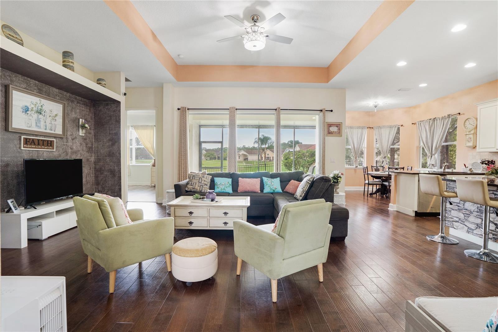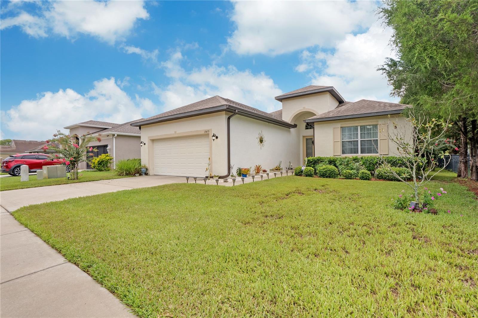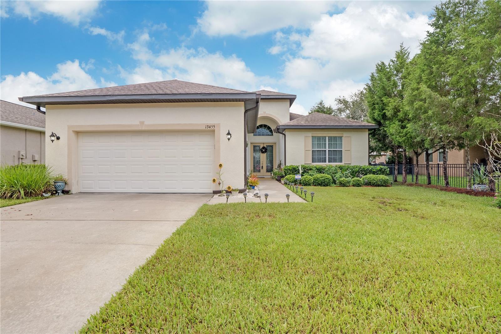 Come see this gorgeous house in the exclusive Reserve at Meadow Oaks community in Hudson!! This amazing, 3-bed, 2-bath, 2 car garage home with 2144 sqft of living space home was built in 2015. With no rear neighbors and golf course views this is a must see. Entering through the 8 foot double doors into a welcoming foyer, you notice the 10' ceilings , Grecian columns and large archways. To the right is a HUGE 14'X24" living room with marble tile. Use it for a formal living room, a pool and game room or as an office. To the left is the laundry room with garage entrance, the 2nd and 3rd bedroom and the second bathroom. Continuing forward through the arched entrance is the open kitchen and firmly room. You will notice the built in plant shelves, the soaring ceilings, wood floors and decorator touches to the TV wall and the sliders to the screened and covered lanai and golf course. The open kitchen has a granite covered island, 42 inch cabinets and stainless steel appliances. There is a breakfast nook with bay windows looking out to the backyard and golf course. The primary suite is HUGE at 12X17 feet with double walk in closets and an ensuite bath with dual vanities, a soaking tub and separate shower and a private water closet. The main bedroom also has sliders to the covered lanai. The community includes a clubhouse, pool, tennis courts, gym, and access to the public golf course. Come and enjoy all this community has to offer. Short distance to the beaches and Veteran's Expressway. Although I have an amazing photographer the home is better than the pics! Schedule a showing today! LOW HOA and NO CDD! This hoe is ready for you.
