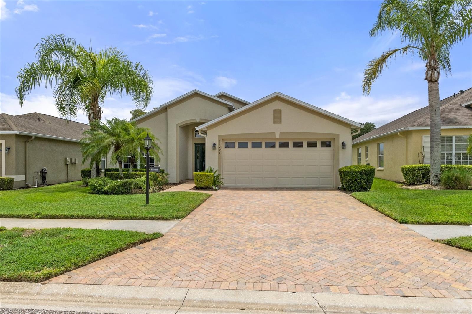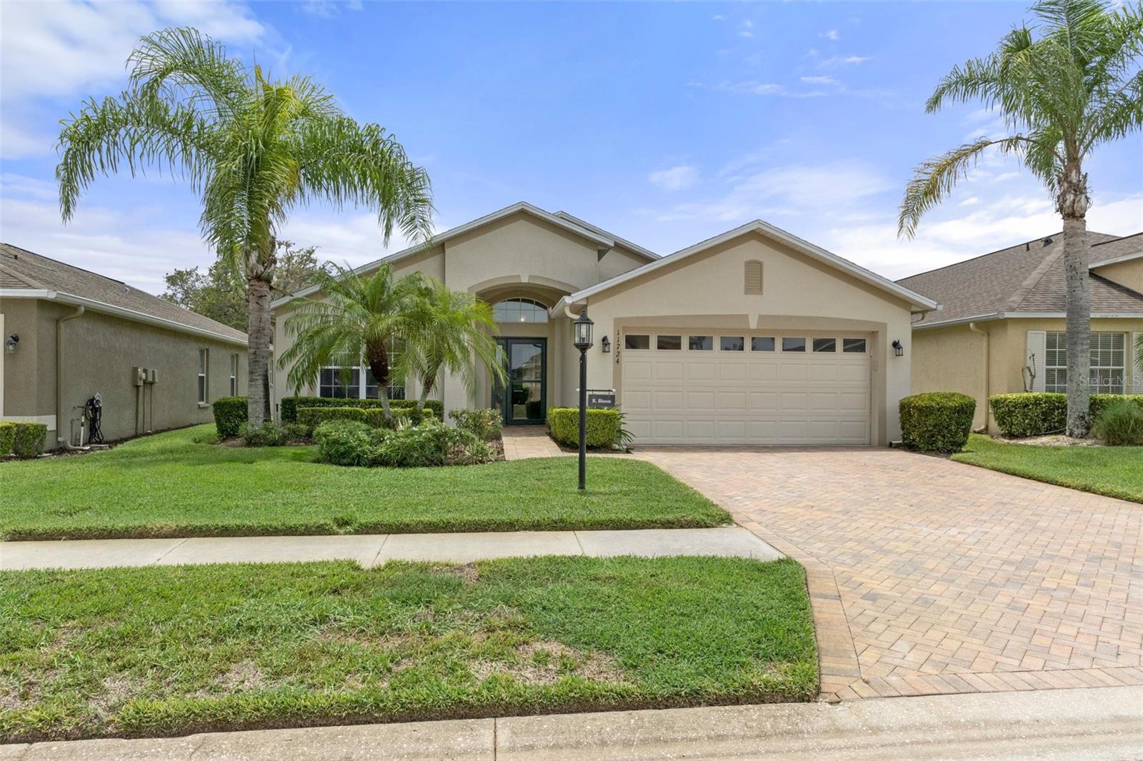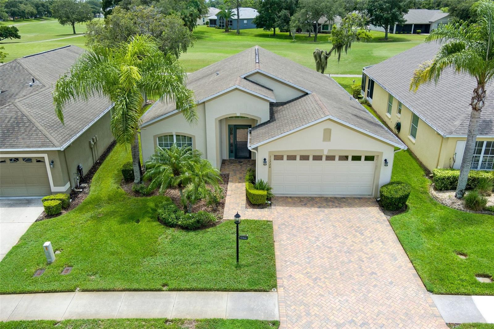 NEW ROOF WITH WARRANTY, captivating 2BR/2BA home with 2-Car Garage that BACKS UP TO THE GOLF-COURSE!!! The stunning brick paver driveway and front walkway lead you to an inviting covered front porch where you walk through the front door into an impressive formal living and dining room with their high vaulted ceilings and lots of natural light providing a breathtaking view onto the green (golf course). As you stand gazing though the sliding glass doors onto the screened-in patio, your eye is drawn further into the charming eat-in kitchen with tons of counter space and cabinets for those delicious home-cooked meals that you look forward to enjoying in the charming breakfast nook; imagine sipping your morning cup of coffee or tea overlooking the pristine golf course. Both bedrooms are generously sized with lots of closet space, but the master bedroom also faces the golf course and features a lovely master bath with dual sinks and extra-large shower. Experience luxury living at Heritage Pines Community Association, a 55+ community in Florida, just 45 minutes from Tampa Airport. This gated community, features a Clubhouse and resident-owned golf course. Enjoy a serene environment and premium lifestyle in a "Neighborhood for Nature" by Audubon International. Don't miss this one... Call now to schedule your showing and make this beautiful home yours today!!