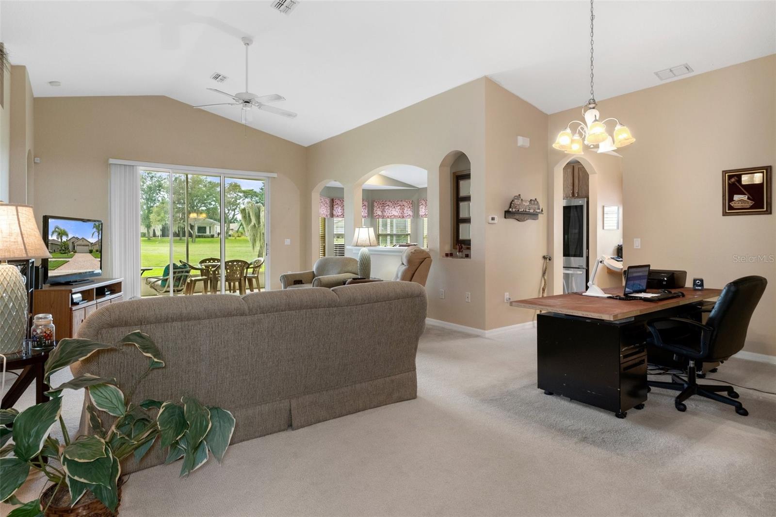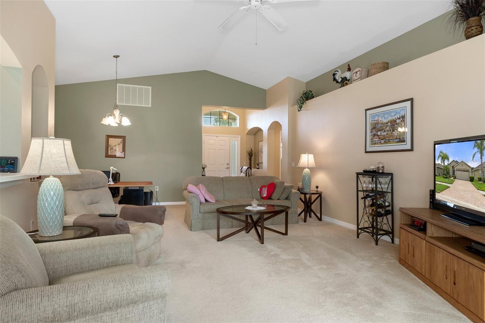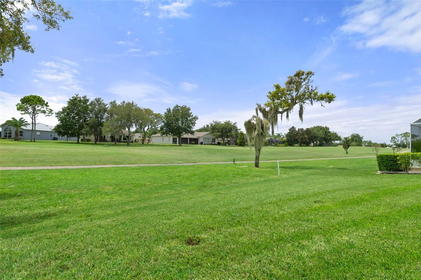 NEW ROOF WITH WARRANTY, captivating 2BR/2BA home with 2-Car Garage that BACKS UP TO THE GOLF-COURSE!!! The stunning brick paver driveway and front walkway lead you to an inviting covered front porch where you walk through the front door into an impressive formal living and dining room with their high vaulted ceilings and lots of natural light providing a breathtaking view onto the green (golf course). As you stand gazing though the sliding glass doors onto the screened-in patio, your eye is drawn further into the charming eat-in kitchen with tons of counter space and cabinets for those delicious home-cooked meals that you look forward to enjoying in the charming breakfast nook; imagine sipping your morning cup of coffee or tea overlooking the pristine golf course. Both bedrooms are generously sized with lots of closet space, but the master bedroom also faces the golf course and features a lovely master bath with dual sinks and extra-large shower. Experience luxury living at Heritage Pines Community Association, a 55+ community in Florida, just 45 minutes from Tampa Airport. This gated community, features a Clubhouse and resident-owned golf course. Enjoy a serene environment and premium lifestyle in a "Neighborhood for Nature" by Audubon International. Don't miss this one... Call now to schedule your showing and make this beautiful home yours today!!
