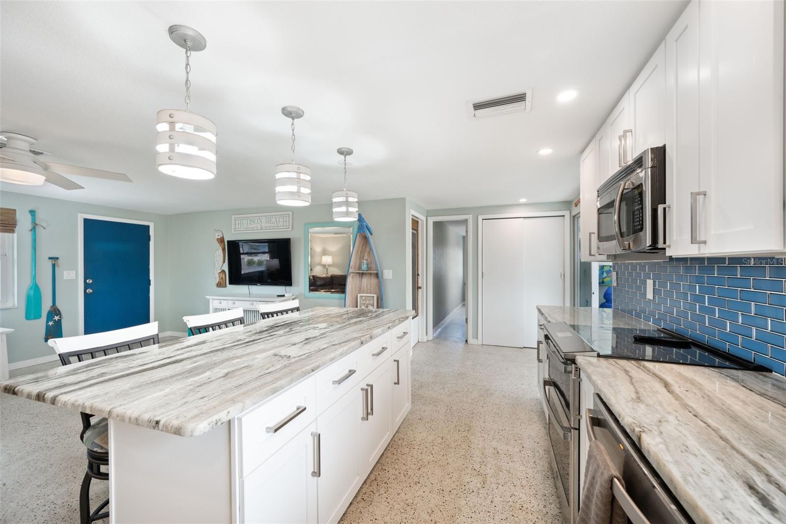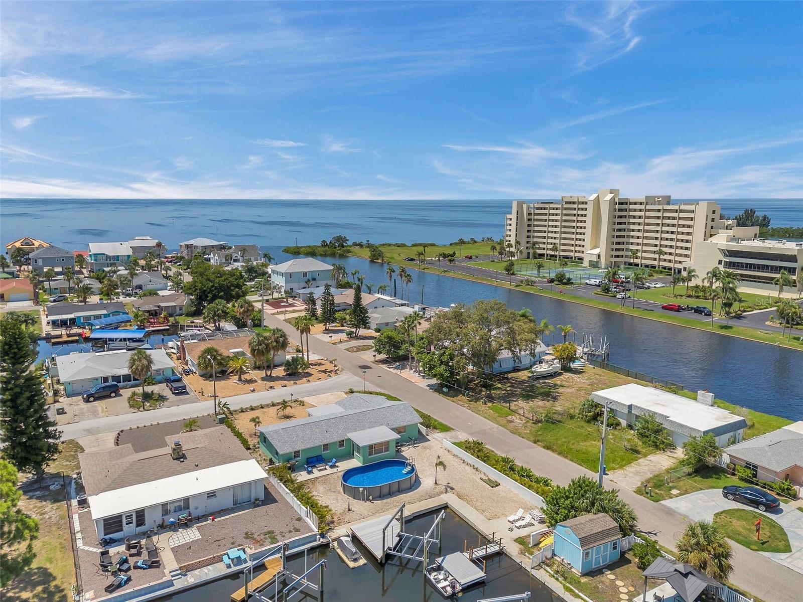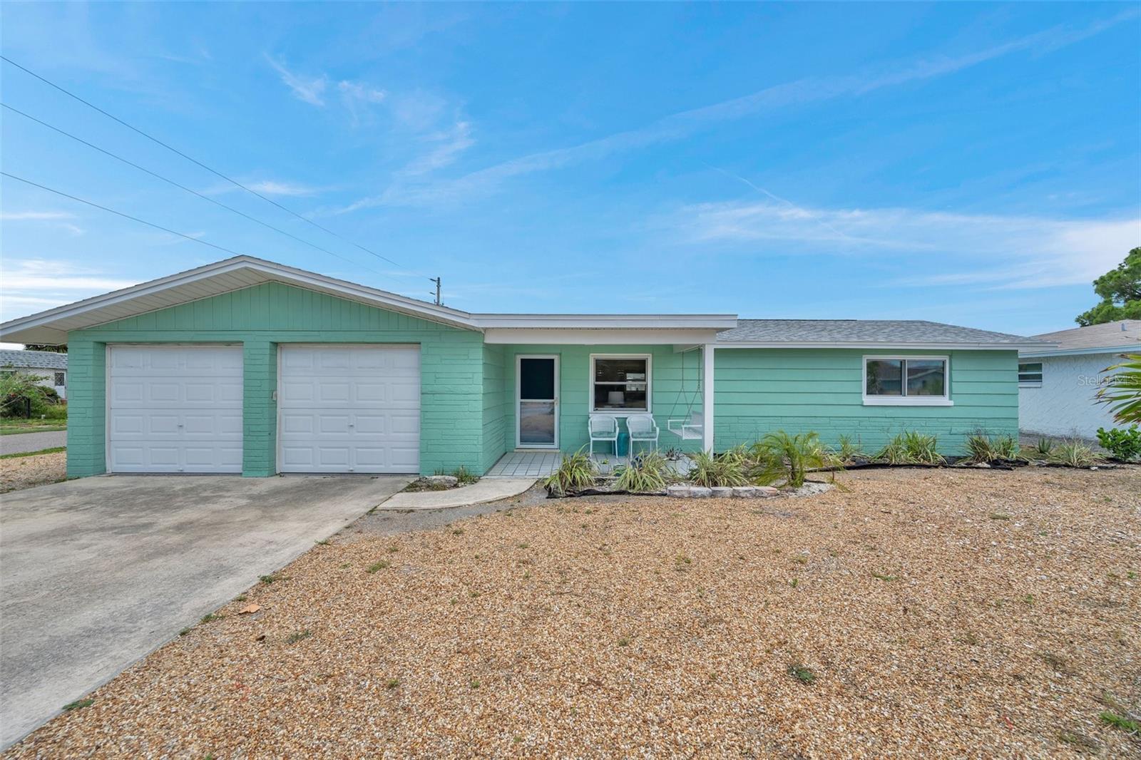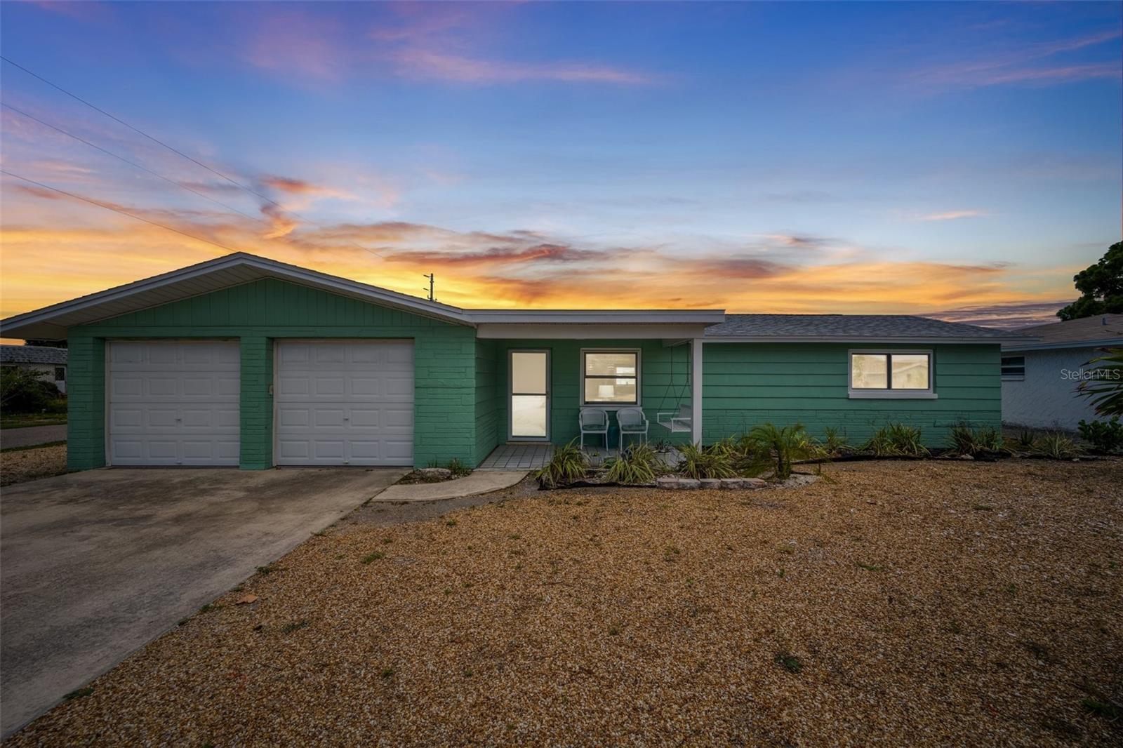 Welcome to Paradise! This WATERFRONT DREAM HOME boasts 85 feet of seawall along a shimmering saltwater canal with direct access to the Gulf of Mexico and no fixed bridges. Enjoy the tranquil sight of dolphins and manatees playing around, while you fish right off your very own dock, or maybe hop on your boat or jet ski and head to Anclote Island, go fishing, or simply watch the sunset—all from your backyard! This move-in ready home has been beautifully updated with 1380sq ft and boasts 2 bedrooms, 1 bathroom, 2 car garage and a sunroom and interior laundry room. Also, this home sit on a large corner lot within a low-traffic neighborhood BRAND NEW 10,000-pound boat lift and floating dock with Dura-Deck AND jet-ski dock (installed in 2023), NEWER ROOF (2022), NEWER WATER HEATER (2022), The Terrazzo Flooring was rehabbed (2022), NEWER MODERN KITCHEN was updated with granite countertops, stainless-steel appliances, stylish shaker cabinets, tile backsplash, a large kitchen island, (all updated in 2022). NEWER SEAWALL OVERCAP (2022), A/C (2019), Hurricane impact windows (2019) and much more! The pictures and video just doesn't do this home justice- Truly A MUST SEE HOME! Rest easy with fully assumable flood insurance at the incredibly low annual rate of just $5,500. This property offers so many possibilities. The expansive backyard is ready for your vision, with ample space to accommodate a pool and tiki bar. Newly installed 10k above ground pool. Fully fenced for privacy and security. Don't miss this out on owning a piece of paradise! This one won't last lo this will not last long schedule a showing today.