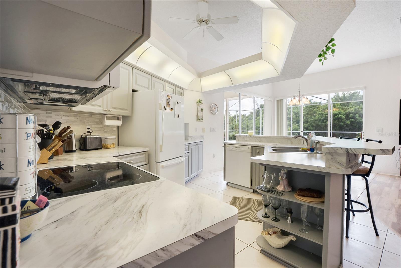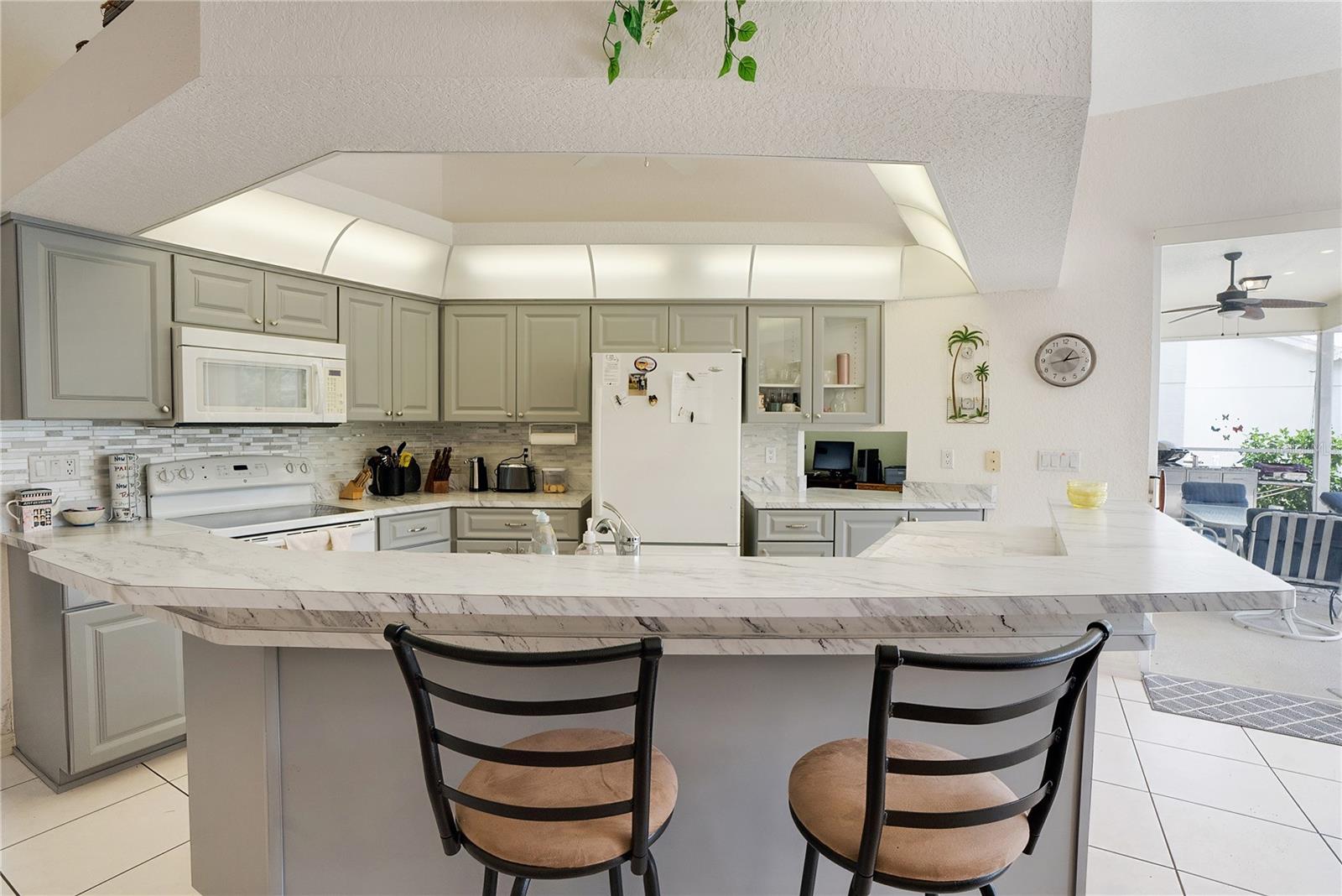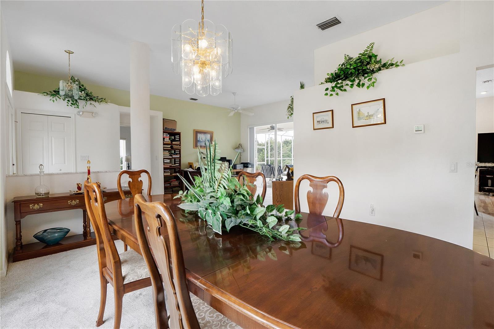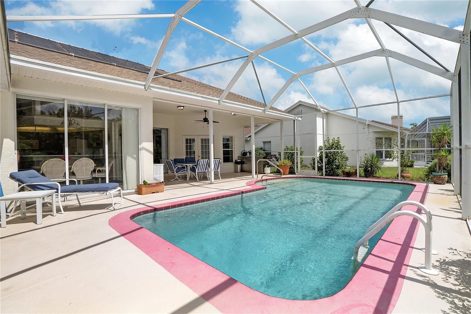 Welcome to this Meticulously maintained 3 bedroom 2 bathroom POOL HOME in The Estates. A gorgeous double door entry leads you into the foyer alongside the formal living and dining room spaces. To the left of the foyer is the entrance into the owners suite which features french doors leading out to the covered lanai & pool area, his & hers closets, and an en suite with dual sink, jetted garden tub and separate shower stall. This split floor plan offers 2 additional bedrooms and a pool bath with shower/tub located in the back of the house off of the great room. The kitchen was updated (2020) with RAISED PANEL cabinetry and GLASS TILE backsplash to complement the NEW countertops. Savor your meals in the breakfast nook, at the breakfast bar or on the lanai a step from your crystal clear pool. Transform your home by bringing the outdoors in by opening all the sliding doors in your kitchen and formal dining room to create a dynamic entertainment space. Relax in the solar heated pool (NEW SOLAR PANELS in 2015) which was refinished in 2018 with DIAMOND BRITE and upgraded to a SALTWATER SYSTEM in 2020. The interior laundry room located off of the 2 car garage offers space for storage and contains a utility sink. Even the garage has been upgraded & maintained with a privacy screen sliding door and painted floor. ADDITIONAL UPGRADES / UPDATES: ROOF REPLACED (2015), NEW CARPETING (2020) in all 3 bedrooms & formal living areas, GUTTERS, WATER HEATER (2018) BONUS: No need to maintain your lawn. The HOA fee covers the weekly lawn maintenance, trimming and pesticide. Additionally included with the fees are the cable, internet, recreational facilities including pool, fitness, tennis, clubhouse. In search of a new owner who is ready to move in worry free knowing that this home has been extremely well maintained.