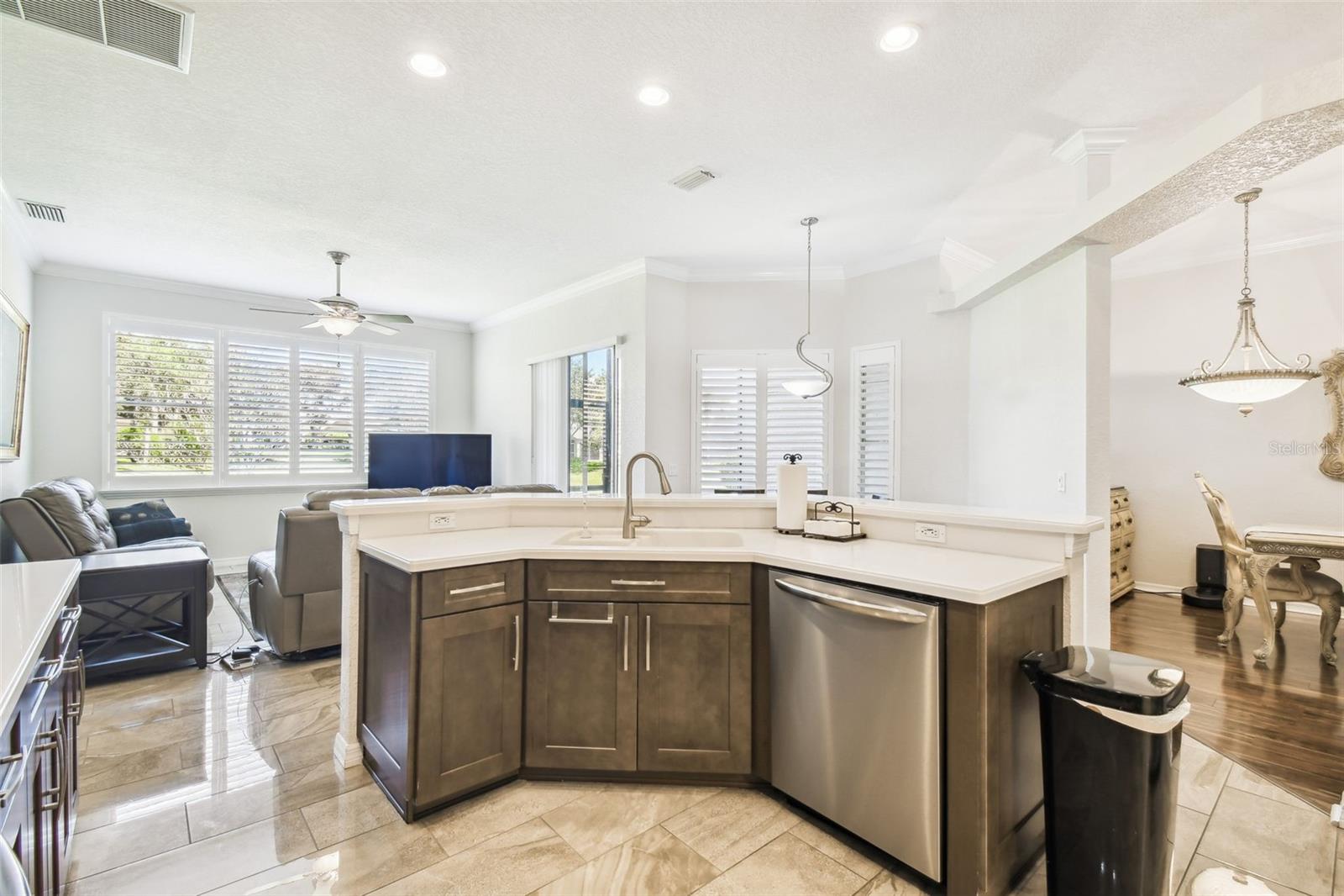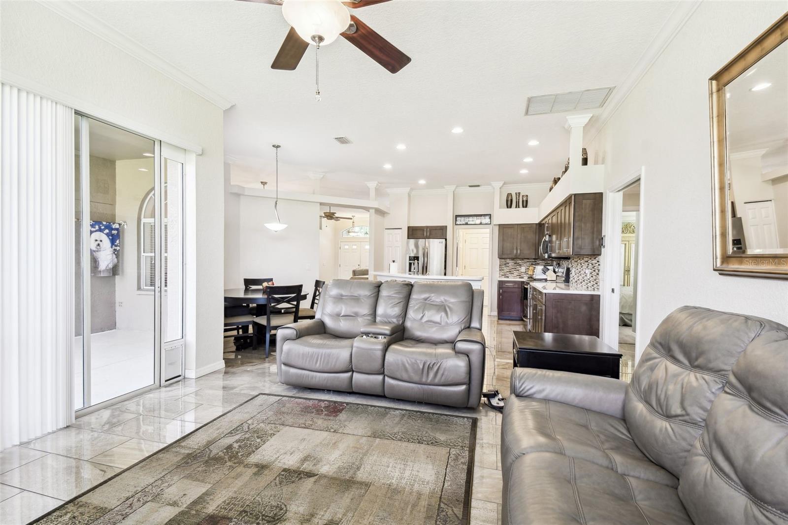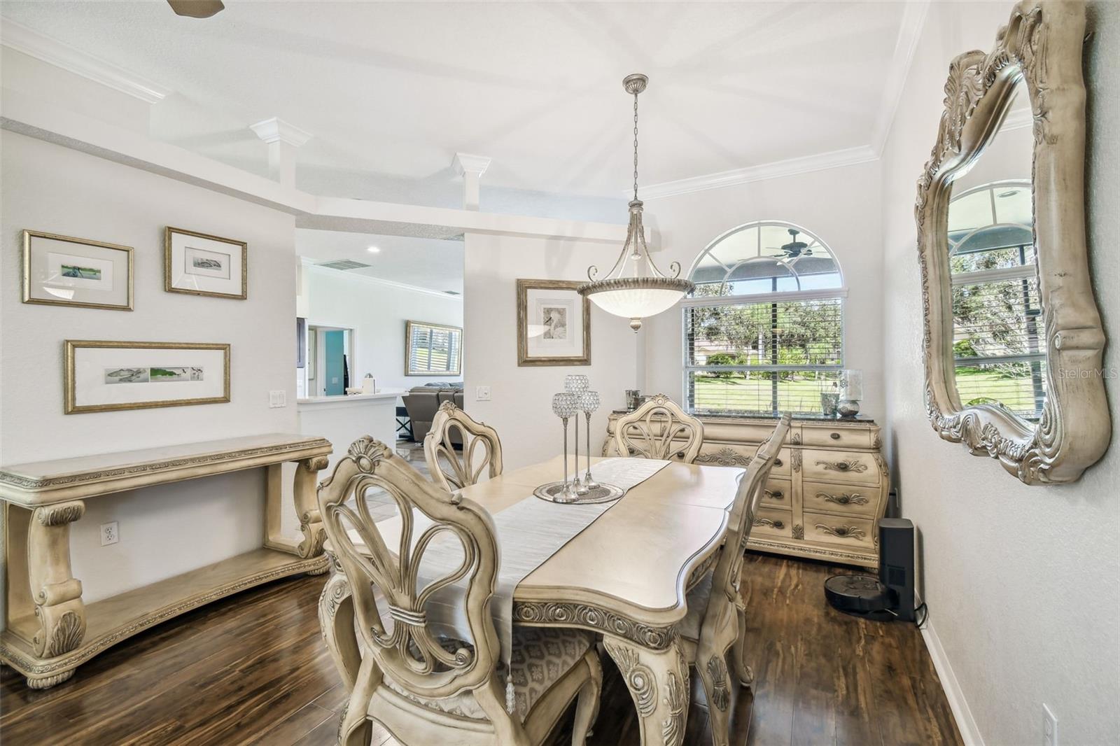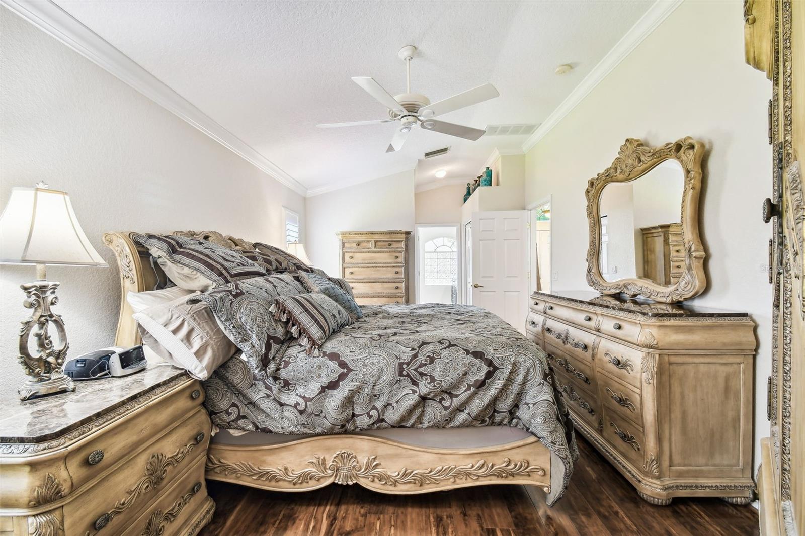 Experience the epitome of relaxed retirement living in Florida within the secure confines of a guard-gated, luxurious community at Heritage Pines in the Kent Calais Model. Don't miss this Beautifully updated 2083 sqft if Living Space boasting a MASSIVE custom Walk-in Closet aka Closet Mahal, Primary Custom Walk in Closet: 11.5’x 14’ Designer custom built closet with ELK Lighting Villegosa 6 light crystal chandelier, faceted crystal & glass door, and drawer pulls, Large cabinet for storage, Matching Luggage rack, Built-in desk office area with matching file drawers. The master suit provides a serene retreat complete with an ensuite bathroom with a Beach entry shower, controls that turn on with ease and situated in a location that does not get wet. There is also an electric outlet with a phone charger insert. Walk into your Gourmet Kitchen featuring Frigidaire Gallery Stainless Steel Kitchen appliances Installed in 2018, 1.7 Cu. Ft Microwave, Ceramic Glass cooktop with radiant surface elements, Quick Bake Convection Oven with warming drawer, Dishwasher with Sanitizer cycle, stainless interior with adjustable shelves, fold-down tines upper and lower racks, 27.2 Cu. Ft. along with your French Door Refrigerator with ice maker and adjustable glass shelves, Moen Lifetime Warranty, Corian countertops pop with natural stone backsplash & American Woodmark Truffle New Haven wood cabinets with soft close drawers lower cabinets with pull-out drawers. The laundry area Features GE 5.0 cu. ft. capacity washer with stainless steel basket and steam, Soft close glass lid, Smart Dispense detergent and fabric softener, Steam Assisted internal water heater, Clean Speak Communication System with quiet pack Vibration Control Roof: 2018 with a 50-year manufacturer’s shingle warranty and a 10-year workmanship guarantee. 2018 GAF Timberline HD Lifetime algae-resistant dimensional Shingles GAF Golden Pledge Lifetime Warranty TRANSFERRABLE, Cool off with your 2019 Carrier 16 SEER 4 Ton Performance 2Speed with Ideal Humidity Variable Speed Air Handler with COR WiFi App Thermostat w/10 Year Parts and Labor Warranty. Moen fixtures are throughout the home. EXTRAS: Sherwin Williams Duration exterior paint, Sherwin Williams ProMar 200 Zero VOC durable interior paint, All walls and ceilings Spanish Lace finish, All rooms wood crown molding, Hunter WiFi App controlled front sprinkler system, Guest bath and Family room Plantation Shutters with Sill Caps. Both transom windows in the front have leaded glass. HOA fees include lawn care/edging, Lawn spraying weed and fertilizer, trimming bushes, and sprinklers, as well as including spectrum cable, and internet. This community is conveniently close to beaches, shopping, sport fishing, professional sports, and the performing arts. Surrounded by rolling pine forests and scenic lakes on Florida's Nature Coast, Heritage Pines boasts a private 18-hole golf course that winds through conservation areas with sparkling lakes and ponds. The course culminates dramatically on the 18th hole, situated on a peninsula in the lake beyond the country club.