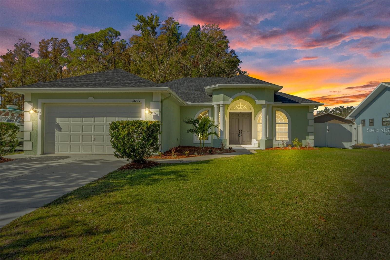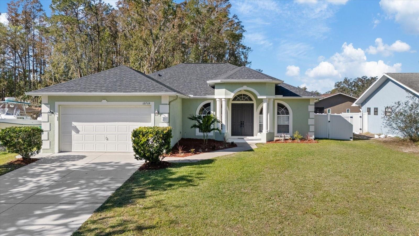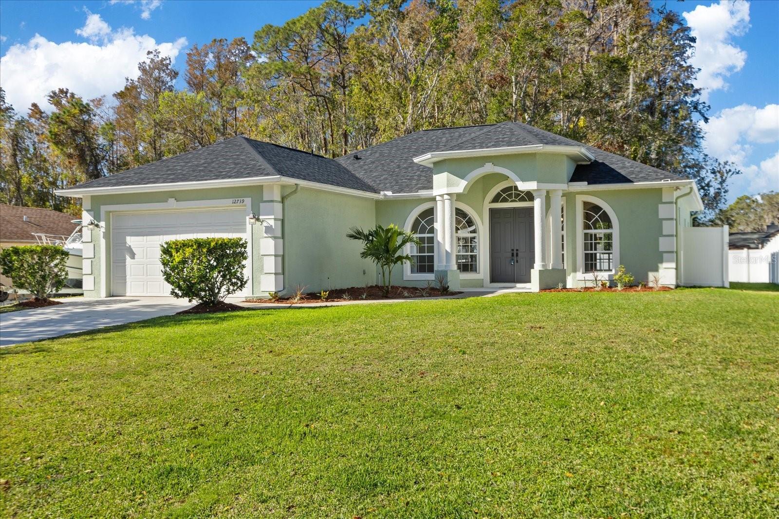 NEW PRICE!! If you’re looking for country living close to everything city-living offers, you’ll fall in love with this fabulous 1,787 SQ FT, split floor plan 3/2 home built in 2004. This modern home offers an entry door security system and soaring 10-foot ceilings in the picturesque Shadow Lakes Estates community—with no HOA fees and no CDD! Step into the light and bright foyer to discover elegant inlaid geometric ceramic tile, new carpet, tray ceilings, and updated fan/light fixtures throughout. The gourmet kitchen is a chef’s dream, featuring all stainless-steel appliances, granite countertops, and a walk-in pantry. The spacious primary bedroom features sliding doors to the screened lanai and a luxurious ensuite bathroom complete with granite-topped vanity, garden tub, walk-in shower with corner seat, and a private water closet. The well-designed laundry area includes a large sink and convenient access between the garage and kitchen. Major updates include: • Roof replaced in 2023 • A/C system installed in 2020 • GE water softener system in the spacious two-car garage • Fresh paint inside and out • New carpet in the bedrooms. Enjoy the outdoors in your fully PVC-fenced, grassy backyard that backs up to a peaceful wooded area—perfect for soaking in the sunset views through towering pine trees. Stabilized in 2013 with professional grouting and pinning for added structural security, this home is fully insurable and offers long-term peace of mind. The stabilization enhances the home’s value, protects against future settling, and gives buyers confidence in the integrity and durability of the foundation. Located in a tranquil, nature-rich neighborhood just 10 minutes from the Suncoast Parkway, this home offers quick access to major routes while still feeling like a peaceful retreat. Imagine watching pond life, birds, and deer right from your own backyard. Don’t miss out on this PRISTINE home—come see it today and fall in love!
