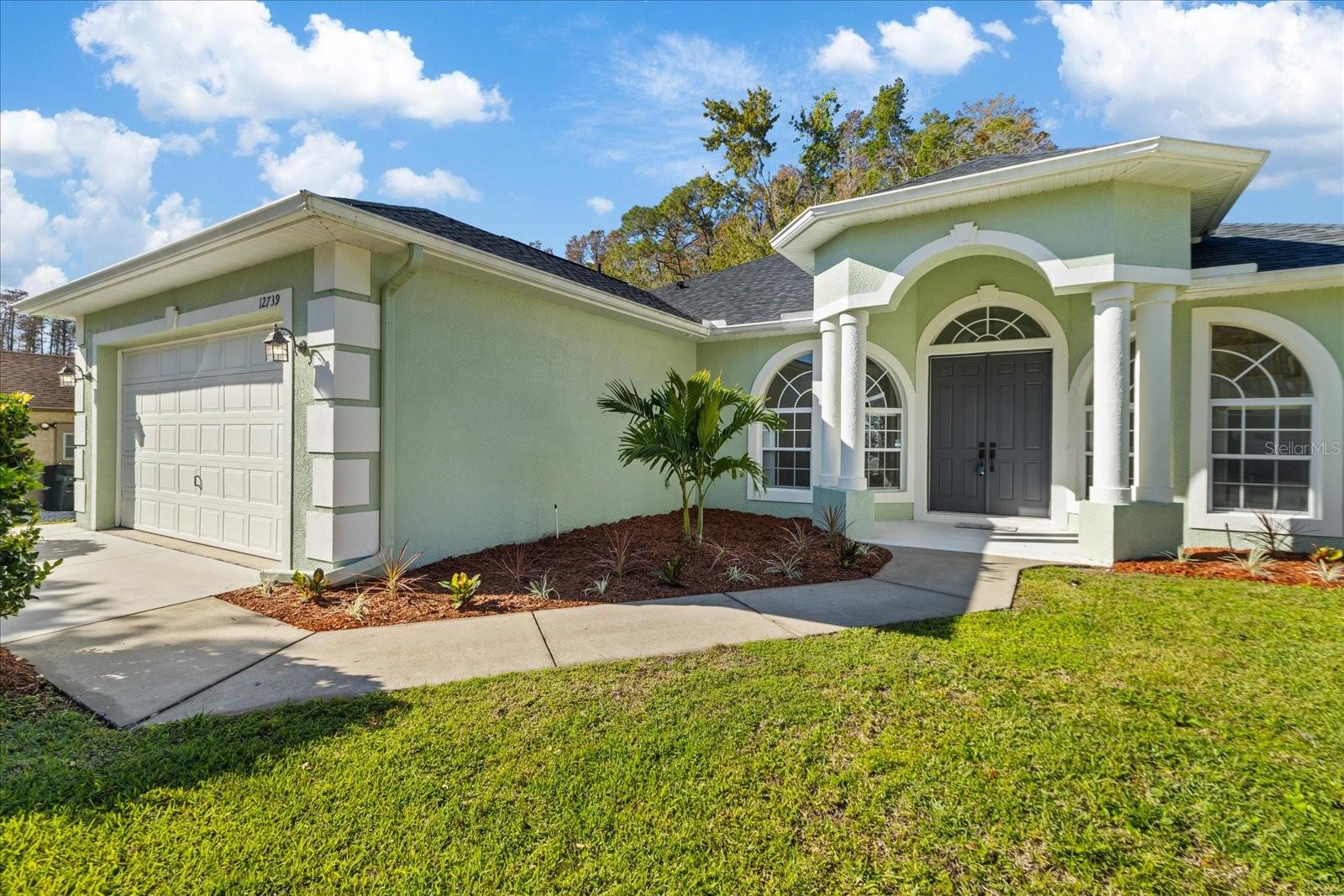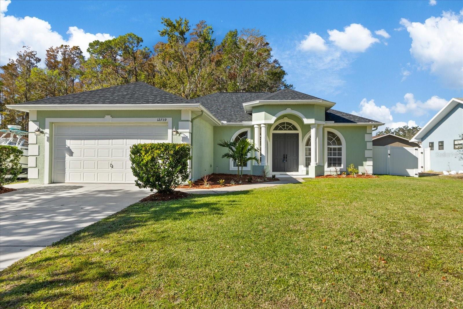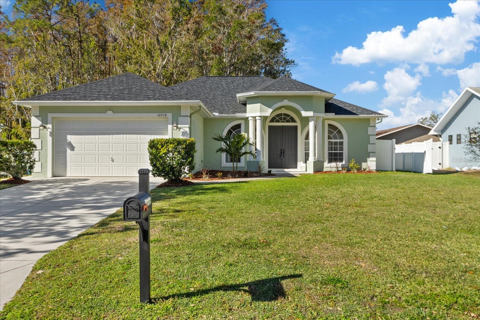 NEW PRICE!! If you’re looking for country living close to everything city-living offers, you’ll fall in love with this fabulous 1,787 SQ FT, split floor plan 3/2 home built in 2004. This modern home offers an entry door security system and soaring 10-foot ceilings in the picturesque Shadow Lakes Estates community—with no HOA fees and no CDD! Step into the light and bright foyer to discover elegant inlaid geometric ceramic tile, new carpet, tray ceilings, and updated fan/light fixtures throughout. The gourmet kitchen is a chef’s dream, featuring all stainless-steel appliances, granite countertops, and a walk-in pantry. The spacious primary bedroom features sliding doors to the screened lanai and a luxurious ensuite bathroom complete with granite-topped vanity, garden tub, walk-in shower with corner seat, and a private water closet. The well-designed laundry area includes a large sink and convenient access between the garage and kitchen. Major updates include: • Roof replaced in 2023 • A/C system installed in 2020 • GE water softener system in the spacious two-car garage • Fresh paint inside and out • New carpet in the bedrooms. Enjoy the outdoors in your fully PVC-fenced, grassy backyard that backs up to a peaceful wooded area—perfect for soaking in the sunset views through towering pine trees. Stabilized in 2013 with professional grouting and pinning for added structural security, this home is fully insurable and offers long-term peace of mind. The stabilization enhances the home’s value, protects against future settling, and gives buyers confidence in the integrity and durability of the foundation. Located in a tranquil, nature-rich neighborhood just 10 minutes from the Suncoast Parkway, this home offers quick access to major routes while still feeling like a peaceful retreat. Imagine watching pond life, birds, and deer right from your own backyard. Don’t miss out on this PRISTINE home—come see it today and fall in love!