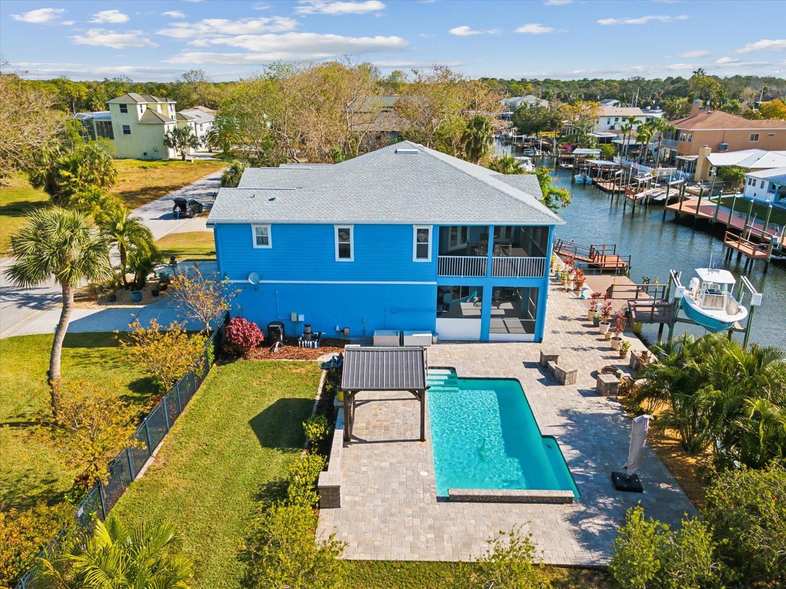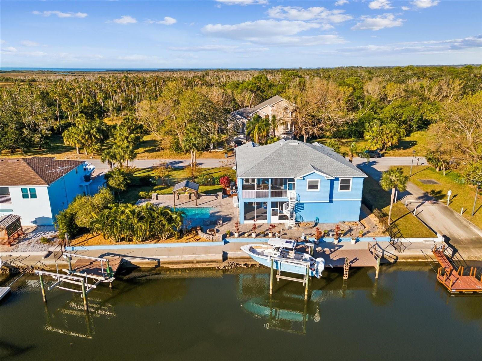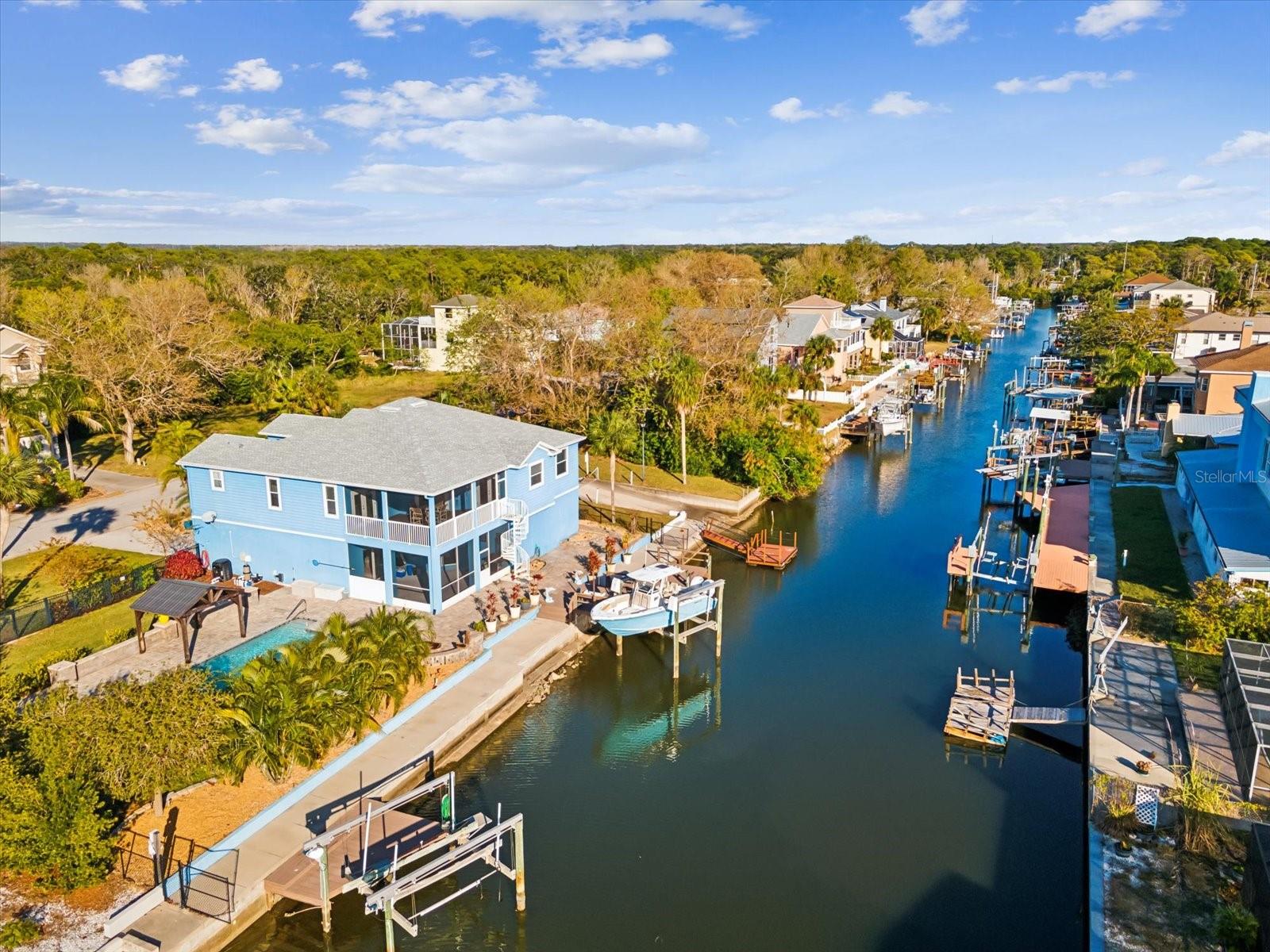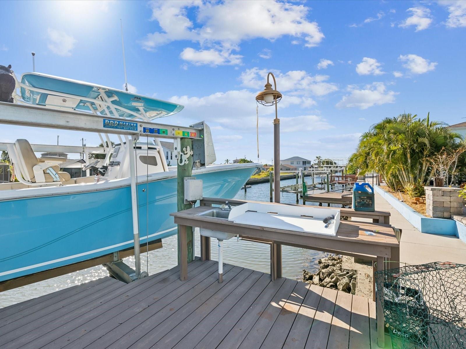 Salt Life Paradise Awaits – Waterfront Living in The Preserve at Sea PinesPositioned on a rare double lot—over 1/3 of an acre—this stunning One owner home offers 2,000+ sq ft of elevated living space and a total footprint of 5,888 sq ft, all nestled in the exclusive boating community of The Preserve at Sea Pines. With direct deep-water canal access and just a 5-minute ride to the open Gulf, this is true salt life living.The property features two docks, both with lifts, including one with a full cleaning station equipped with electric and water. A double seawall—replaced within the last six years—provides peace of mind for coastal living. The saltwater pool is a showstopper, complete with embedded sea creatures, spillover waterfall, color-changing lights, and both heating and cooling functions. The surrounding pavered patio and metal-roof cabana are perfect for relaxing poolside, or enjoy the shaded privacy of swaying palm trees.Inside, you’ll find solid wood flooring throughout the main level, a spacious open-concept layout, and a split bedroom floor plan with 3 bedrooms and 2 bathrooms. The kitchen features custom cabinetry and granite countertops, which continue into the primary suite. The primary bedroom boasts dual oversized walk-in closets, built-in linen storage, a large vanity, and private access to the screened second-story lanai with pool and water views.The expansive ground level is made for entertaining, featuring a second covered and screened lanai that opens to the docks and outdoor living area, plus a custom firepit with seating. Downstairs flooring was professionally finished in epoxy with a lifetime warranty, offering durability and easy cleanup—especially valuable after the yard and lower level took on water for the first time during Hurricane Helene. Immediate professional remediation was completed by a licensed company. The market is moving—and so are the sellers. A recent price correction reflects today’s evolving conditions. Don’t miss your opportunity to experience the ultimate coastal lifestyle. Schedule your private showing today and come live the Salt Life Paradise. Additional features include: New roof 2023, HVAC System 2018, Water Heater 2023, Elevator Cab 2025. New Carpet in the bedrooms 2024, --- Seller bought out of state prior to storms and had to stay to remediate - Seller says bring your offers!!