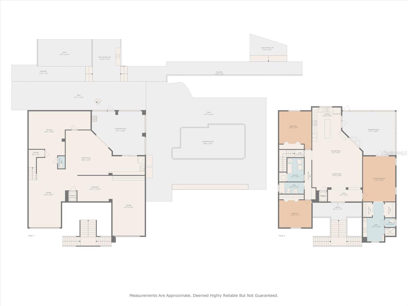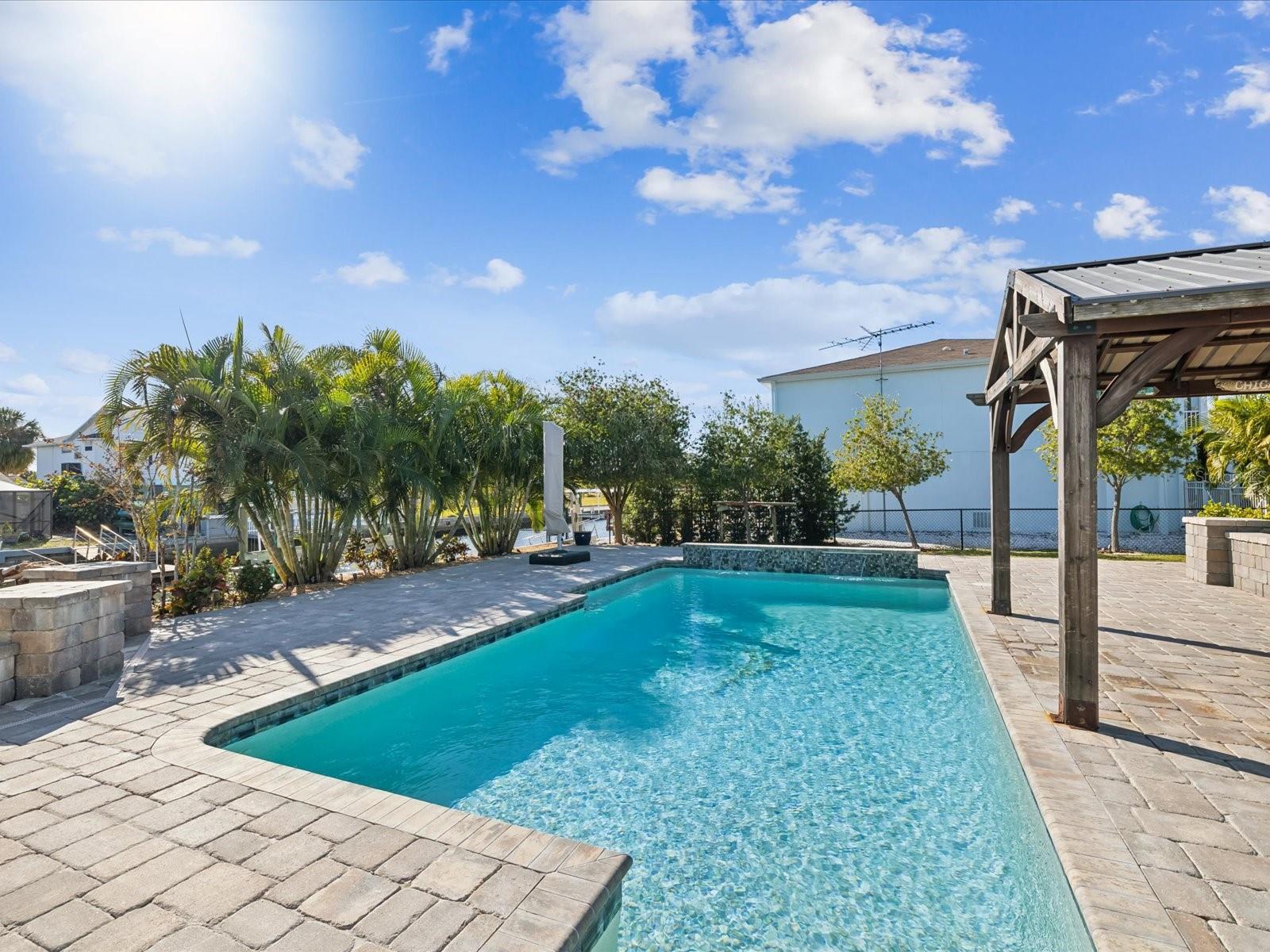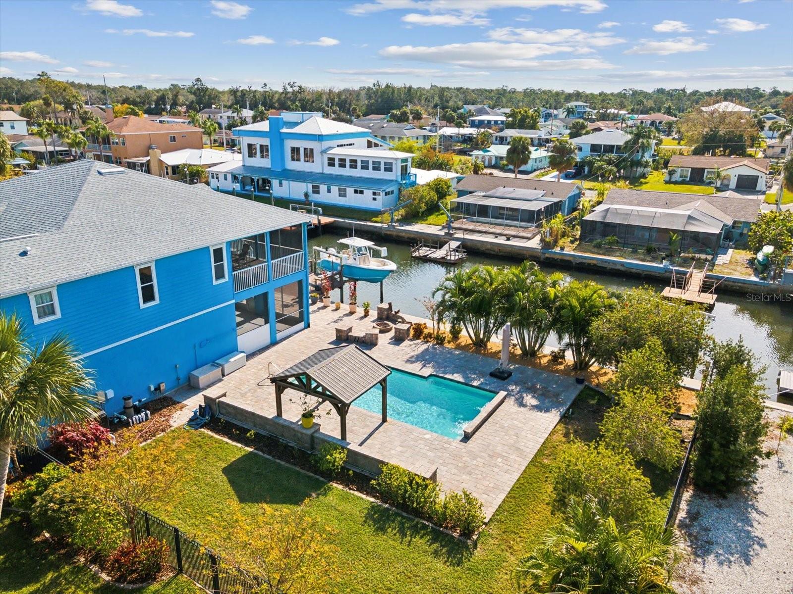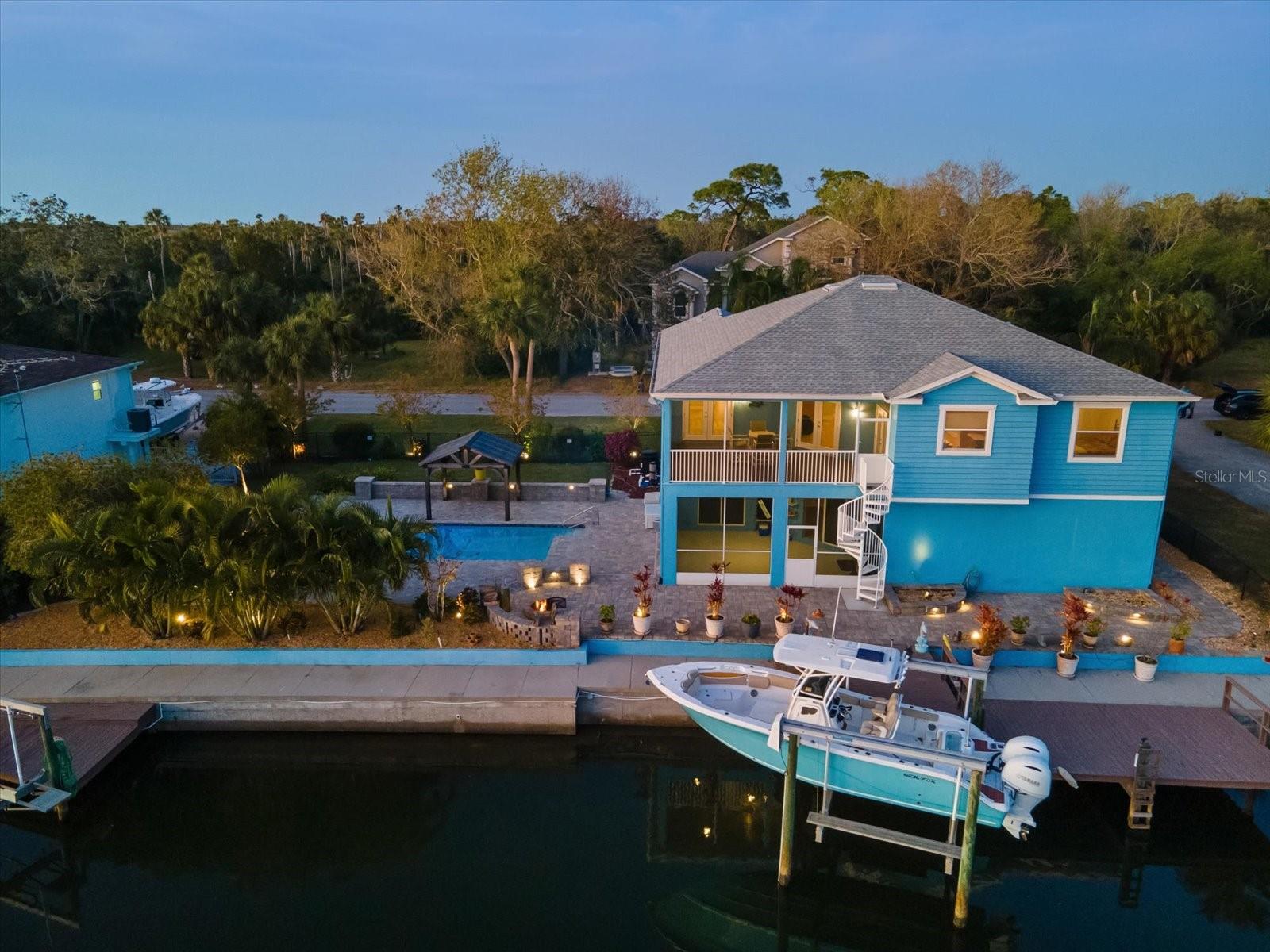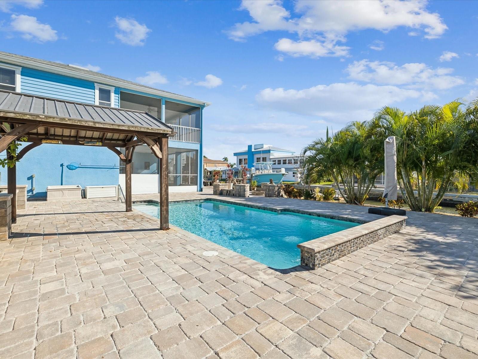 Salt Life Paradise Awaits – Waterfront Living in The Preserve at Sea PinesPositioned on a rare double lot—over 1/3 of an acre—this stunning One owner home offers 2,000+ sq ft of elevated living space and a total footprint of 5,888 sq ft, all nestled in the exclusive boating community of The Preserve at Sea Pines. With direct deep-water canal access and just a 5-minute ride to the open Gulf, this is true salt life living.The property features two docks, both with lifts, including one with a full cleaning station equipped with electric and water. A double seawall—replaced within the last six years—provides peace of mind for coastal living. The saltwater pool is a showstopper, complete with embedded sea creatures, spillover waterfall, color-changing lights, and both heating and cooling functions. The surrounding pavered patio and metal-roof cabana are perfect for relaxing poolside, or enjoy the shaded privacy of swaying palm trees.Inside, you’ll find solid wood flooring throughout the main level, a spacious open-concept layout, and a split bedroom floor plan with 3 bedrooms and 2 bathrooms. The kitchen features custom cabinetry and granite countertops, which continue into the primary suite. The primary bedroom boasts dual oversized walk-in closets, built-in linen storage, a large vanity, and private access to the screened second-story lanai with pool and water views.The expansive ground level is made for entertaining, featuring a second covered and screened lanai that opens to the docks and outdoor living area, plus a custom firepit with seating. Downstairs flooring was professionally finished in epoxy with a lifetime warranty, offering durability and easy cleanup—especially valuable after the yard and lower level took on water for the first time during Hurricane Helene. Immediate professional remediation was completed by a licensed company. The market is moving—and so are the sellers. A recent price correction reflects today’s evolving conditions. Don’t miss your opportunity to experience the ultimate coastal lifestyle. Schedule your private showing today and come live the Salt Life Paradise. Additional features include: New roof 2023, HVAC System 2018, Water Heater 2023, Elevator Cab 2025. New Carpet in the bedrooms 2024, --- Seller bought out of state prior to storms and had to stay to remediate - Seller says bring your offers!!