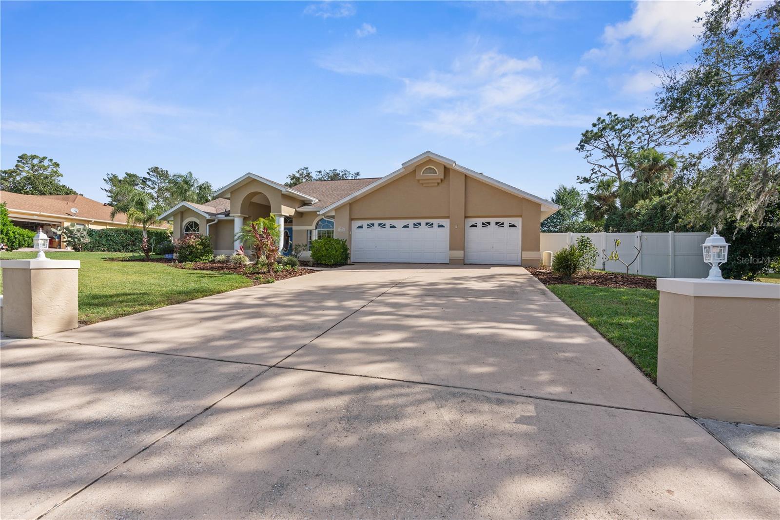 IMPROVED PRICE - Welcome to Beautiful Autumn Oaks Neighborhood, a small Residential Community of 257 Luxury Privately Owned Homes. Home Offers 3 Bedrooms, 2 Bathrooms, Dining/Office/Flex Space, 2,267 SqFt LIVING & 3,333 SqFt Under Roof, Private POOL & 3-CAR GARAGE. The OPEN and Split Floor Plan Features 2 Versatile Family Entertainment Rooms. Kitchen with QUARTZ Countertops & Stainless Steel Appliances. The Master Suite with 5 1/4 Base Trim, Bath with Double Vanities, Large Jetted Tub, Separate Shower & Walk-in Closet. The Guest Bedrooms Share a Pool-access Bathroom. POOL Lanai w/Shower (Hot/Cold Water), 19 x 18 Covered Space w/2 Sky Lights, Extra Open Screened Space, Perfect for Sun Bathing or Star Gazing. Fenced Backyard Offers Plenty of Space to Relax, Complete with a Pavered SUNDECK and a 2nd Fenced Side Yard. PRIVACY Hedges Surround the Outdoor Areas. Community Amenities: Playground w/Swings & Slide, Basketball, Tennis, Pickleball, and Bocce Courts, as well as Sidewalks and Streetlights. There's also a Community Grilling Area, Complete with a Sink and Restrooms. This Home & Neighborhood Offer a Rare Opportunity to Experience Comfort, Style, and a Peaceful, Well-Established Community ALL in One Place. Call or text Now to Schedule Your Private Tour.