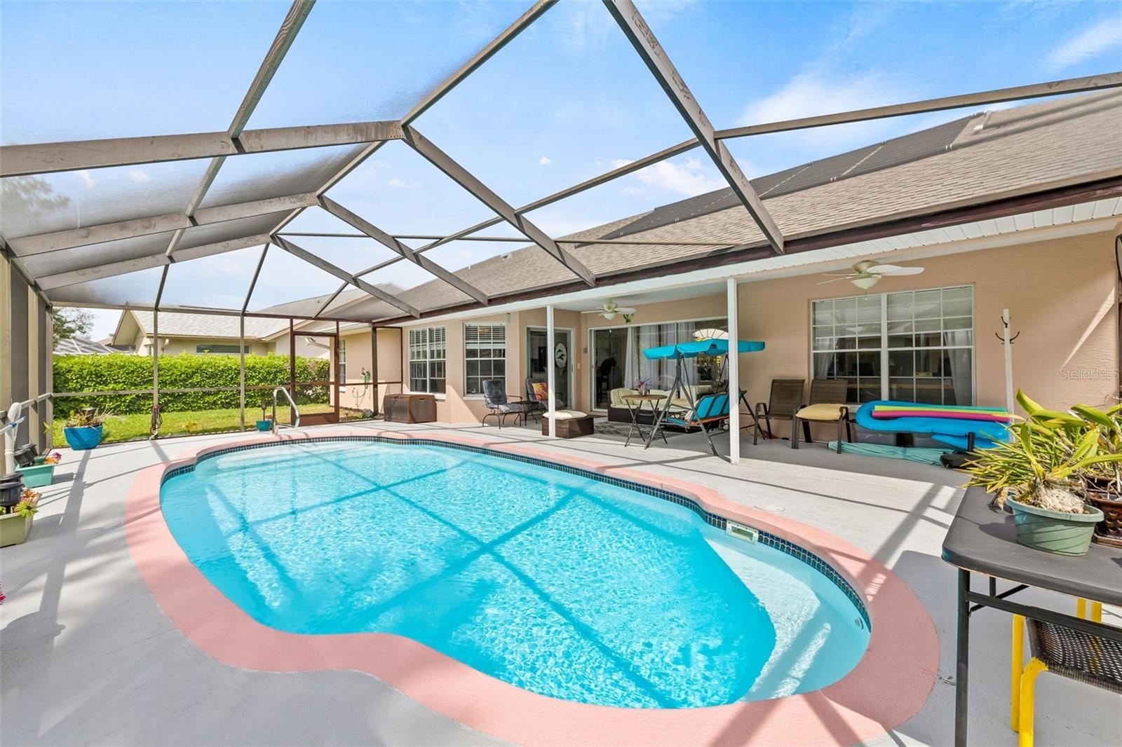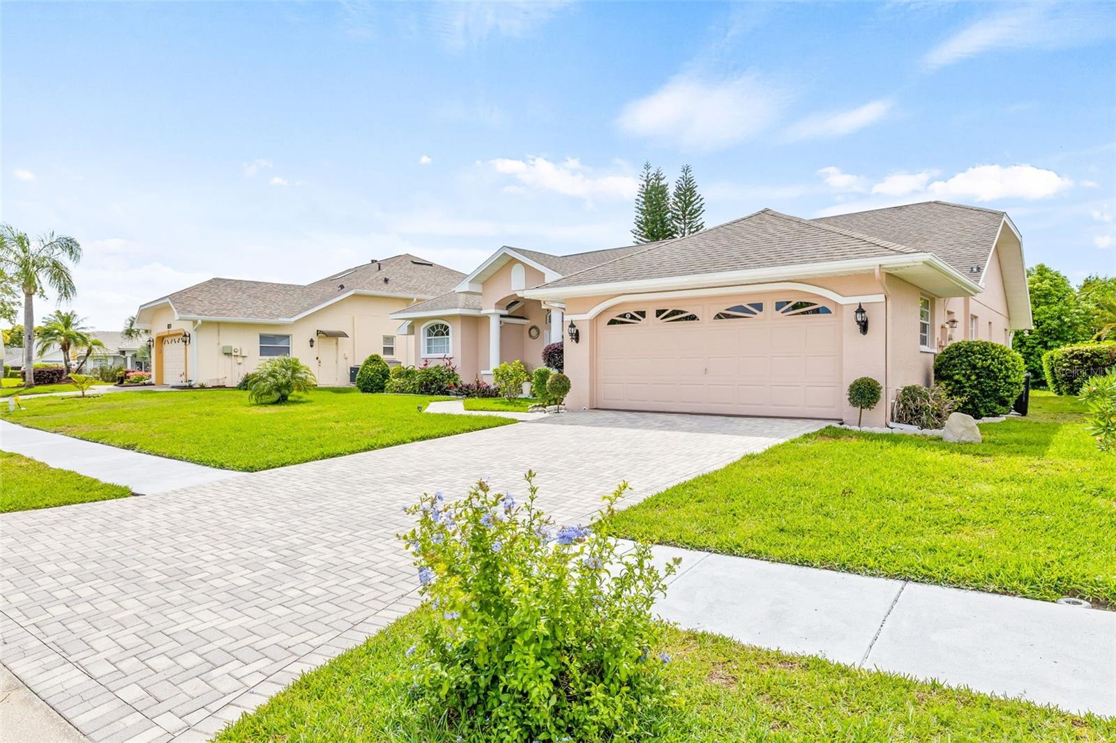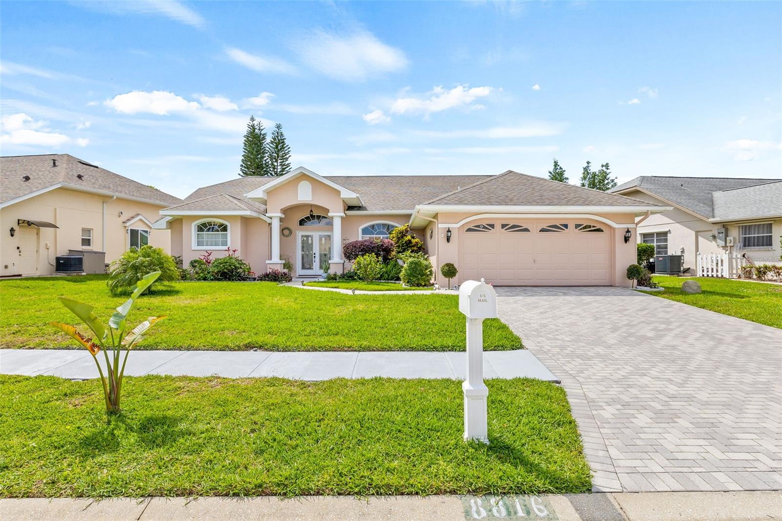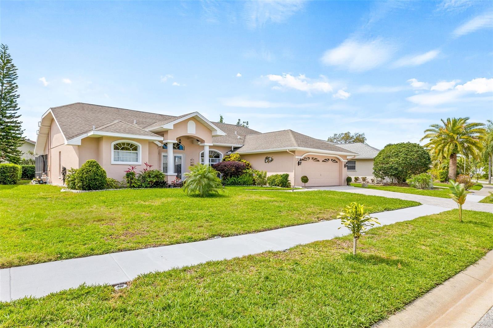 Must see this gorgeous and well maintained home.Split plan design for privacy. 3 bedroom ,2 bath, 2 car garage plus pool. Move in Ready. Exterior has been freshly painted. New French double entry doors replaced 2024. As you enter the home you will be greeted into the Great room that has vast space to entertain and Dinning room for a formal dining that views in to the Pool and patio. Enjoy swimming in the six feet deep solar panel heated pool that has been totally re-screened and freshly painted deck for year-round enjoyment. Kitchen was updated with premium vinyl flooring and offers granite countertops, updated cabinets, stainless steel appliances, breakfast bar, and breakfast nook. Laundry room holds a counter space with utility sink, a pair of matching LG washer and dryer that convey, Laundry room and hallways were updated with premium vinyl flooring. All ceiling fans have been replaced through out the home. Master bedroom opens to a view of the pool from the back window. Master bathroom includes a garden tub, walk- in shower, stall with ledge seating, dual sinks, granite countertops, and walk-in closet. The two other guest rooms have been updated with premium vinyl flooring. Guest bathroom has new vanity set, Garage floor was freshly painted with plenty of space for workshop and tools. New outdoor security lights. Landscaping is well maintained. Backyard offers privacy via perfectly trimmed bushes to 7 feet height. Well irrigation system, Water softener, HVAC replaced in 2019 with new ductwork. Quiet and Friendly neighborhood. Golf and Country Club is located across the main road. Clubhouse offers Pool, Tennis, golf course, playground, and much more. Located close to all Shopping, Restaurants, Schools, Hospitals, and Major Highways, Don't miss this opportunity. MOTIVATED SELLER.