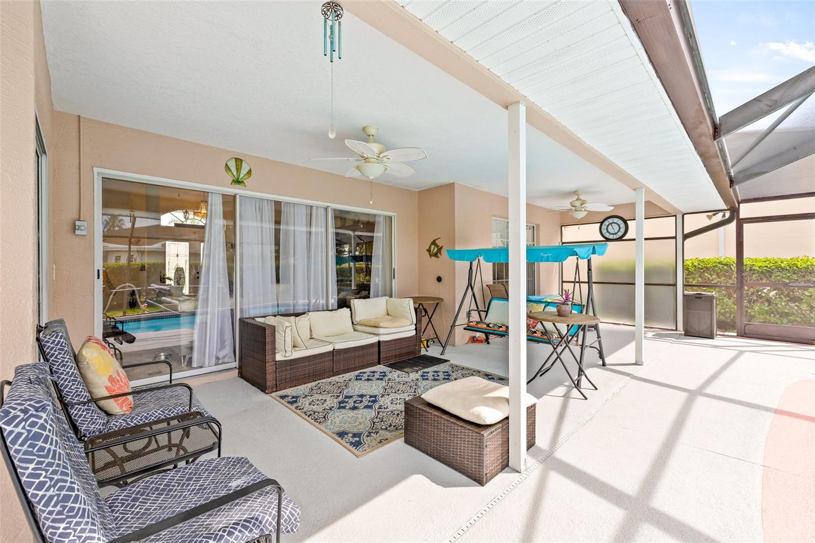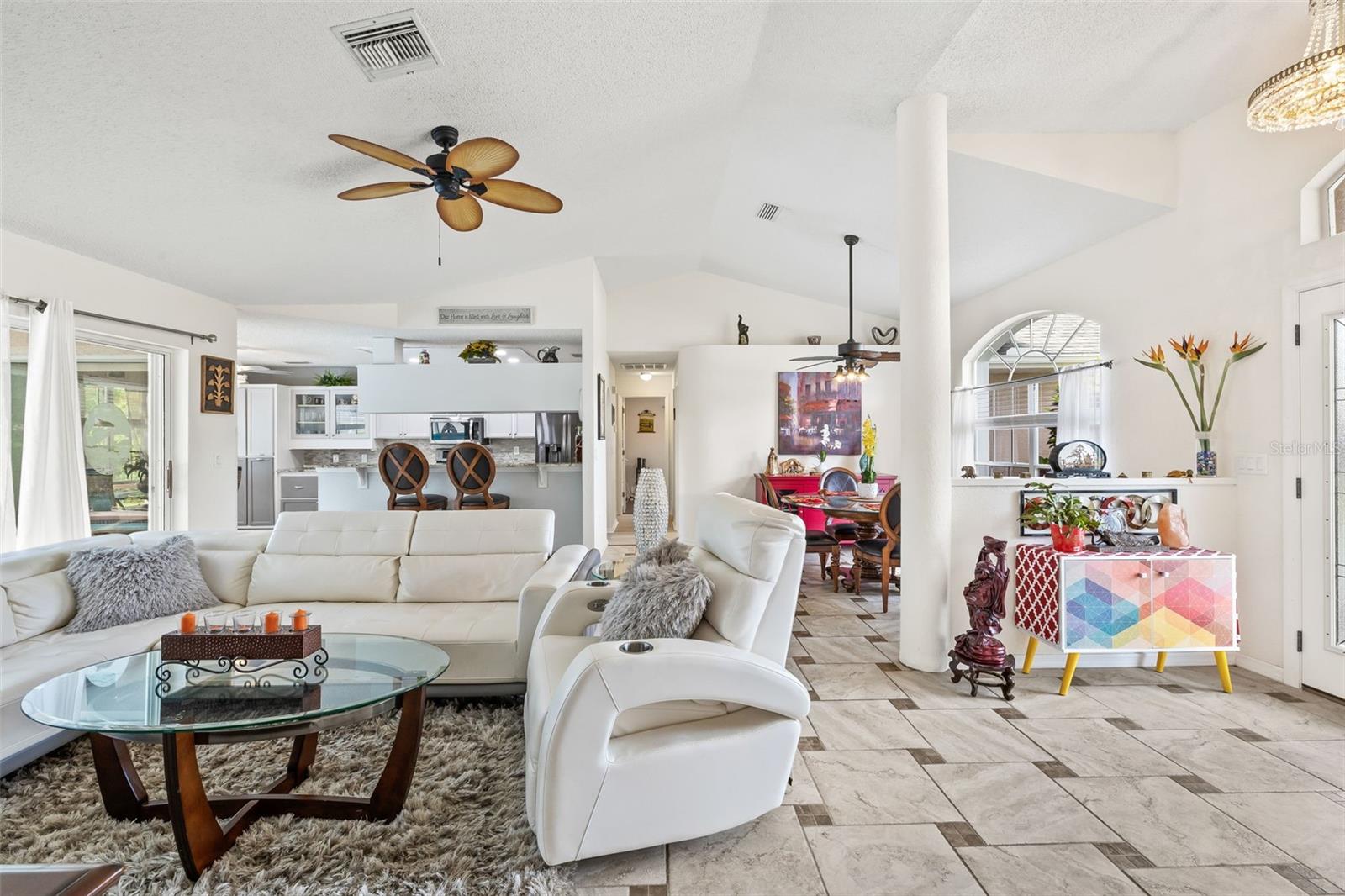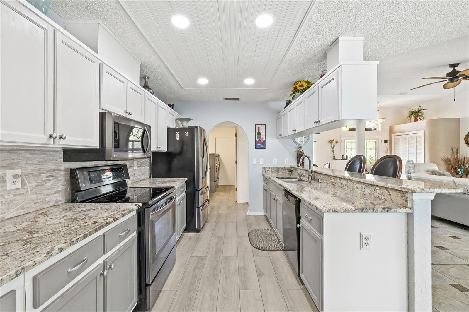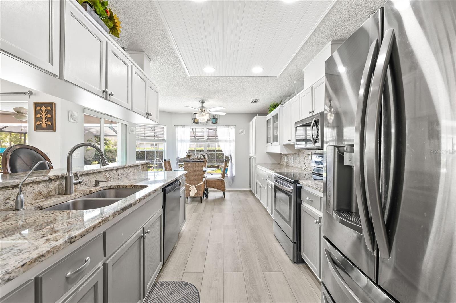 Must see this gorgeous and well maintained home.Split plan design for privacy. 3 bedroom ,2 bath, 2 car garage plus pool. Move in Ready. Exterior has been freshly painted. New French double entry doors replaced 2024. As you enter the home you will be greeted into the Great room that has vast space to entertain and Dinning room for a formal dining that views in to the Pool and patio. Enjoy swimming in the six feet deep solar panel heated pool that has been totally re-screened and freshly painted deck for year-round enjoyment. Kitchen was updated with premium vinyl flooring and offers granite countertops, updated cabinets, stainless steel appliances, breakfast bar, and breakfast nook. Laundry room holds a counter space with utility sink, a pair of matching LG washer and dryer that convey, Laundry room and hallways were updated with premium vinyl flooring. All ceiling fans have been replaced through out the home. Master bedroom opens to a view of the pool from the back window. Master bathroom includes a garden tub, walk- in shower, stall with ledge seating, dual sinks, granite countertops, and walk-in closet. The two other guest rooms have been updated with premium vinyl flooring. Guest bathroom has new vanity set, Garage floor was freshly painted with plenty of space for workshop and tools. New outdoor security lights. Landscaping is well maintained. Backyard offers privacy via perfectly trimmed bushes to 7 feet height. Well irrigation system, Water softener, HVAC replaced in 2019 with new ductwork. Quiet and Friendly neighborhood. Golf and Country Club is located across the main road. Clubhouse offers Pool, Tennis, golf course, playground, and much more. Located close to all Shopping, Restaurants, Schools, Hospitals, and Major Highways, Don't miss this opportunity. MOTIVATED SELLER.
