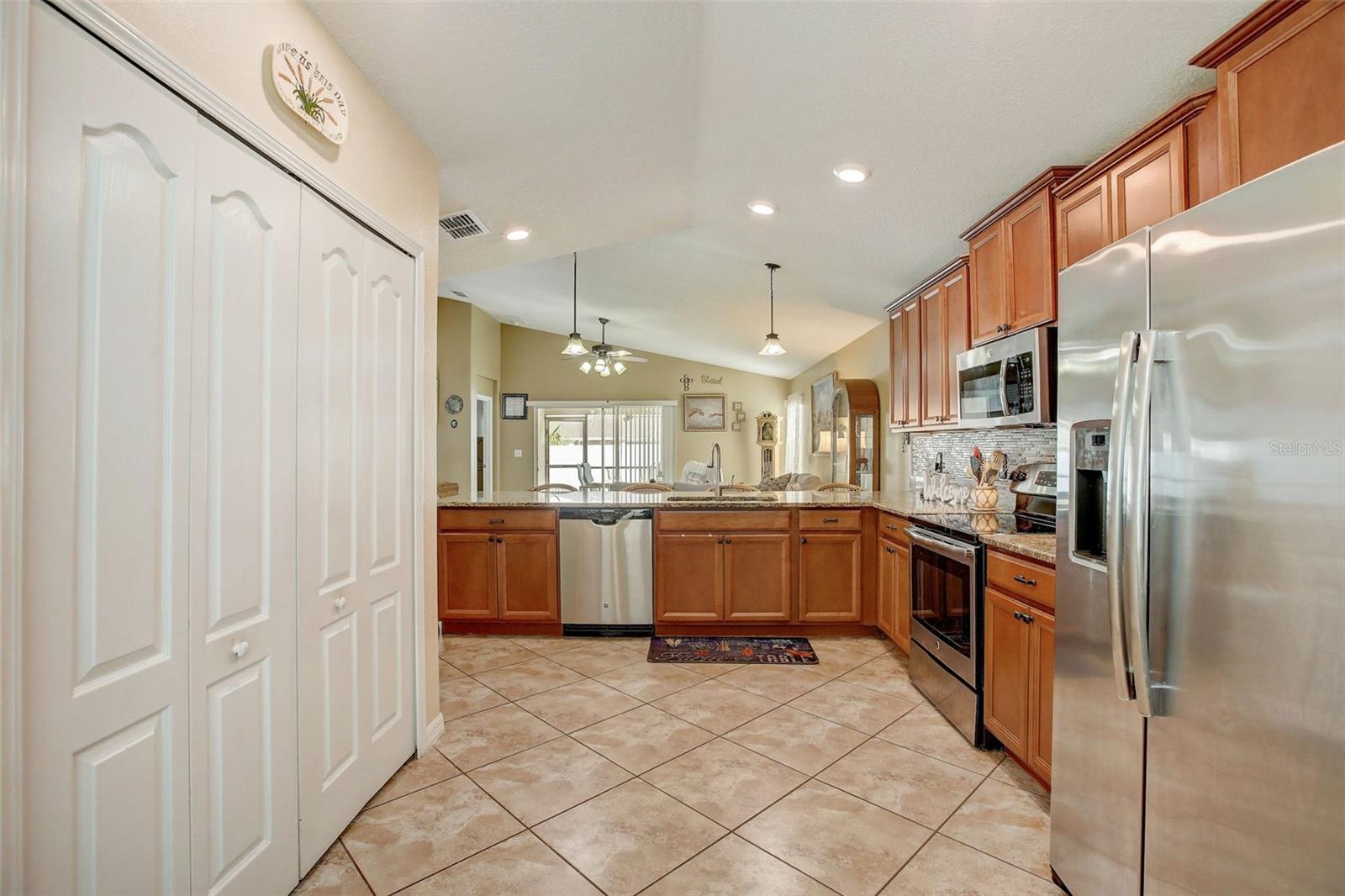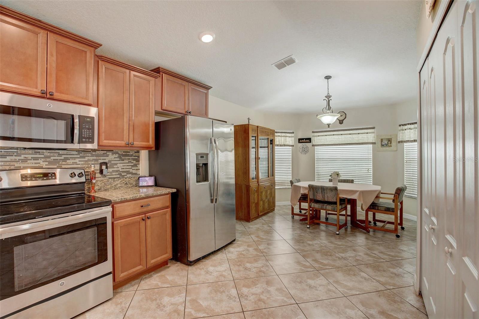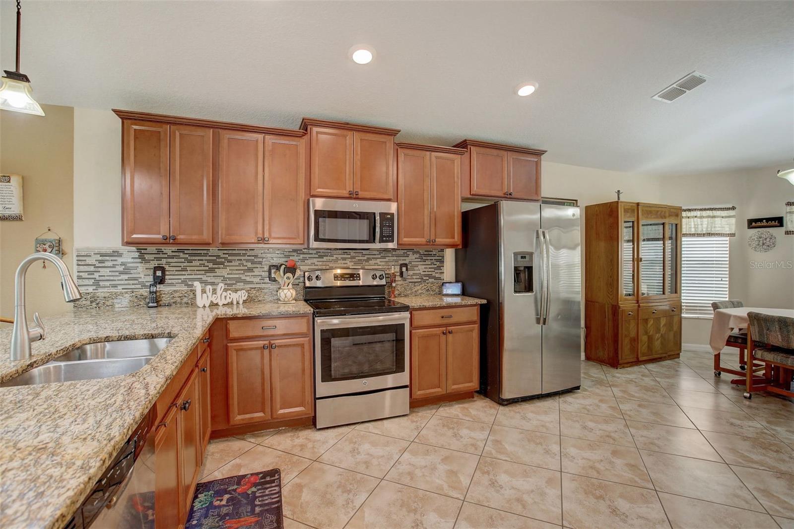 This beautifully crafted residence on a quiet cul-de-sac offers 3 bedrooms, 2 bathrooms, and a 2-car garage, perfect for modern living. Built in 2016, this home offers contemporary features and a convenient location. As you step inside, you'll be greeted by a spacious and inviting interior adorned with tile and wood floors throughout. The open floor plan seamlessly connects the living, dining, and kitchen areas, creating an ideal space for entertaining guests or relaxing with family. The kitchen is a chef's delight, showcasing solid wood cabinets, elegant granite countertops, and high-end appliances. Whether you're preparing a quick breakfast or hosting a dinner party, this kitchen is sure to inspire your culinary creativity. With a split floor plan, the primary bedroom is a tranquil retreat, complete with an en suite bathroom featuring a luxurious shower and ample closet space. Two additional bedrooms provide comfort and versatility, perfect for a growing family, accommodating guests or working from home. Outside, a vinyl fence surrounds the property, offering privacy and a secure area for outdoor activities. The backyard provides a peaceful oasis for enjoying Florida's sunshine or hosting BBQ gatherings on the screened in lanai. Near the community mailboxes, the location can't be beat. Don't miss this opportunity to own a stylish and well-appointed home in a desirable location near the beach, shopping centers, and restaurants. Schedule your private tour today and make this Hudson gem your own! Seller open to all offers!