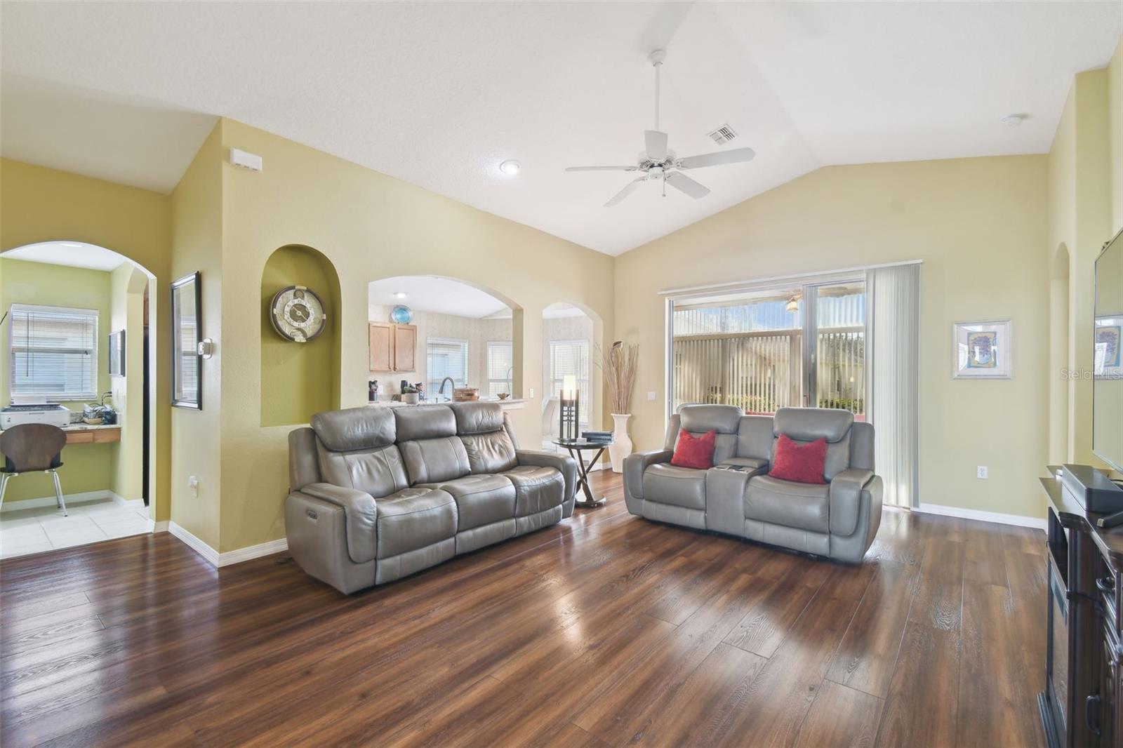 PRICE REDUCTION ON THIS OUTSTANDING IMMACULATE COUNTRY CLUB HOME THAT COMES WITH A GOLF CART, SO YOU CAN TEE IT UP OR DRIVE TO THE CLUBHOUSE WHERE LOTS OF ACTIVITIES TAKE PLACE. PICKLE BALL, TENNIS, LOUNGE, POOL AND AN EXCEPTIONAL RESTAURANT, EXERCISE ROOM, GAME ROOM AND MUCH MORE. THIS 2 BEDROOM 2 BATH HOME BOASTS HIGH KNOCK DOWN CEILINGS, WOOD CABINETS WITH LOTS OF GRANITE TOPS. WOOD GRAIN LUXURY VINYL PLANKING, CERAMIC TILE AND CARPET HIGHLIGHT THE FLOORS IN THIS WIDE OPEN HOME. A NEW ROOF WITH CURRENT AND ASSIGNABLE WIND MITIGATION REPORT WILL ALLOW YOU DISCOUNTS FOR HOME INSURANCE. NEWER AIR CONDITIONING SYSTEM, APPLIANCES INCLUDING THE NEW WASHER AND DRYER. EXTERIOR GROUND MAINTAINCE IS TAKEN CARE OF AND THIS HOME IS PART OF A VILLAGE WITH A PAINT RESERVE, ASSURING THE EXTERIOR PAINT ON YOUR HOME IS FRESHLY PAINTED EVERY 5 YEARS. THIS IS DEFINITELY A MUST SEE HOME.