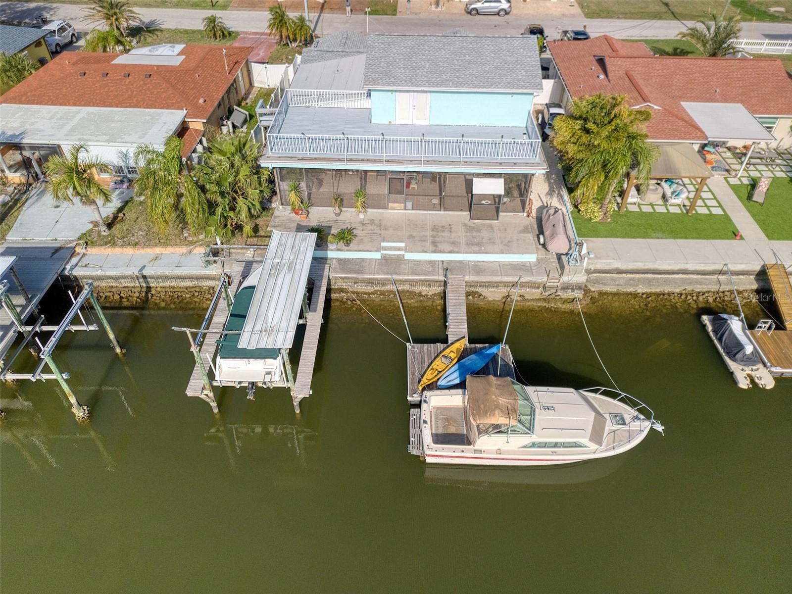 MILLION DOLLAR VIEWS with DIRECT GULF ACCESS, GORGEOUS SUNSETS AND A BOATLIFT with NO HOA! This 3- bedroom - 3.5 bath SPLIT plan is now MOVE IN READY! Situated on a large canal with 60' of water frontage provides seamless access to the open waters just around the corner! A 10,000-pound boat lift and floating dock are already in so bring the boat and the fishing poles! NEW tile floors throughout the main living space and second bedroom! NEW drywall and interior paint! NEW baseboards, trim and interior doors! NEW lower kitchen cabinets with GRANITE COUNTERTOPS and STAINLESS-STEEL appliances! NEW bathroom vanities with matching GRANITE countertops! NEW front door! New roof in 2021 and tankless water heater in 2023! Upstairs is a 1 bedroom - 1 bathroom studio apartment with a kitchenette, large rear deck and its own private entrance! Use it as a mother-in-law suite or rent it out for additional income. Come relax outback on the screened in lanai and watch dolphins and manatees swim by or cast a fishing line - all from your own backyard. The neighborhood is golf cart friendly with several waterfront restaurants and tiki bars along with a small public beach, picnic pavilions, marinas and the public boat ramp just a short golf cart ride away. Hudson Beach is a small coastal town just north of Tampa Bay & Clearwater, along the Gulf Coast of Florida. Come enjoy the laid-back coastal lifestyle without the crowds. Conveniently located off Hwy 19 for shopping, restaurants and hospital nearby. Just 15 minutes to the Expressway for easy access to downtown Tampa and the airports. Don't miss the opportunity to own a waterfront home with Gulf views at an incredible price! Schedule a showing today!