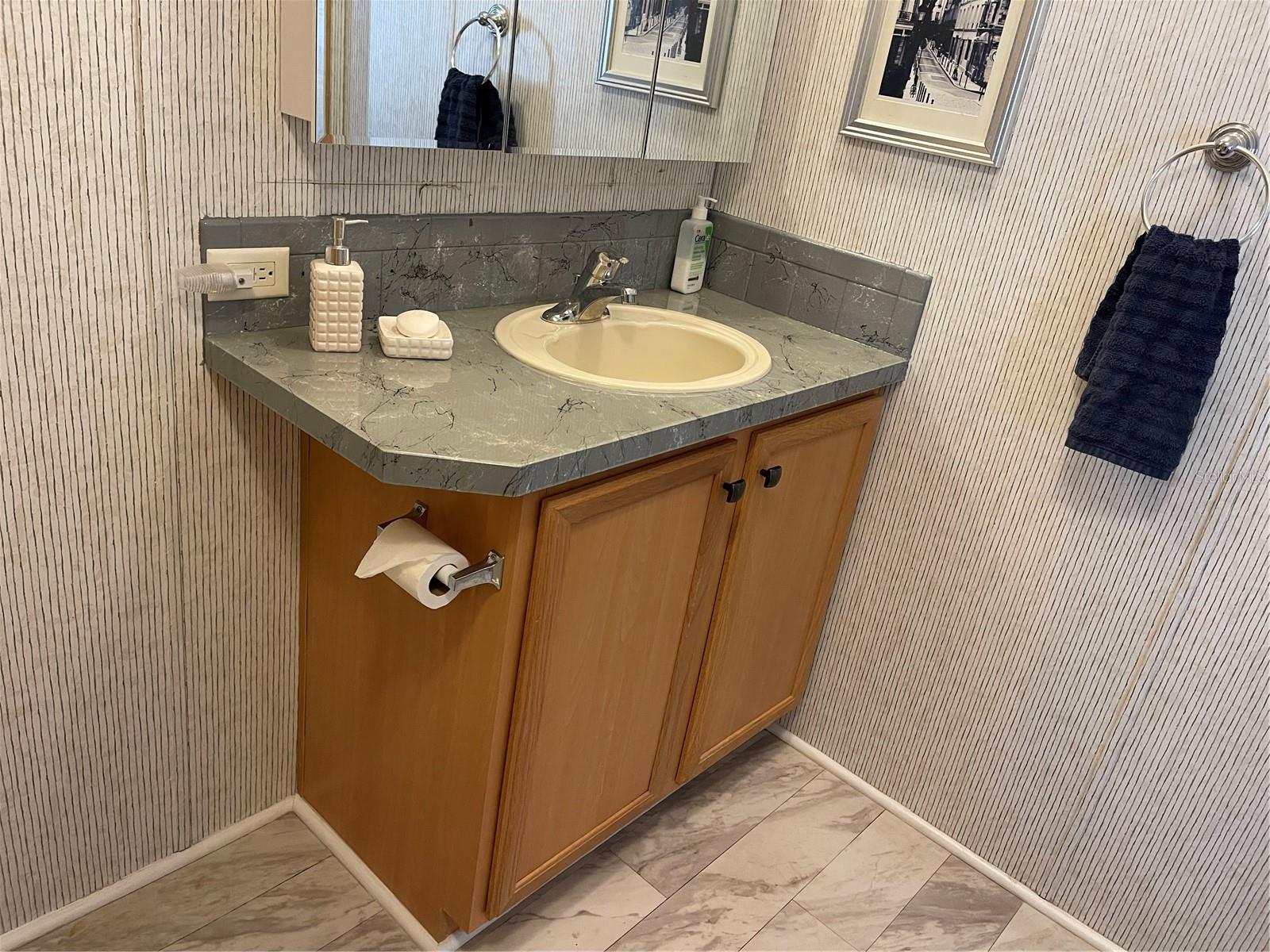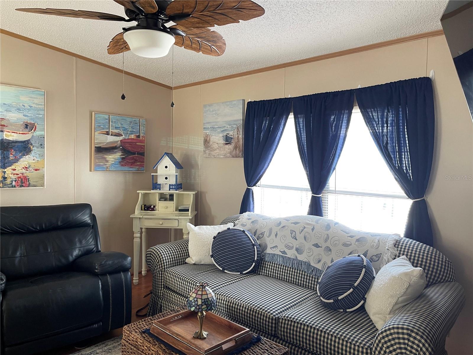 This adorable three-bedroom two-bath manufactured home is ready to be loved by a new owner. The home sits on a corner lot and faces South. The attached deck and retractable awning with lights is a great place to sun or watch the themed golf cart parades pass by on holidays. You can enter the home from the front of the house through the cheerful kitchen that has a breakfast nook facing East. The Gallery style kitchen looks amazing with white kitchen cabinets and a faux granite finish on the counter tops. Appliances in the kitchen have been replaced within the last five years as well as the kitchen and dining room light fixtures. For your convenience the laundry closet with extra shelving is in the kitchen. The other front entrance of the home enters into the living room and dining area. The two bedrooms to the west have walk in closets. The guest bathroom has a tub shower combination with a transom window in the shower. The primary bedroom has two windows, ample closet space, a ceiling fan with light kit and the ensuite with shower. The air conditioner was replaced in 2021 and all the duct work was professionally cleaned at that time. Owners installed laminate flooring throughout and repainted the home in popular coastal colors. The property has two sheds with electricity, a well and a septic tank. The driveway has a carport with two parking spaces. The landscape in this yard is low maintenance and has a loquat tree. You can eat fruit in season off the tree and take the leaves to make a delicious tea. Enjoy the freedom of living life nude in a neighborhood that does not have a homeowner’s association. Land is zoned agricultural, so vegetables and an herb garden are welcome. City Retreat is an established nudist community that adjoins Eden RV Resort. Residents can enjoy the amenities Eden provides with paid membership to the Resort. Eden has a heated pool, hot tub, tiki bar, restaurant, pickle ball, tennis courts, a club house, many yard games, bands, DJ’s, karaoke, jam sessions, water aerobics, dart tournaments and many other scheduled activities and events throughout the year.
