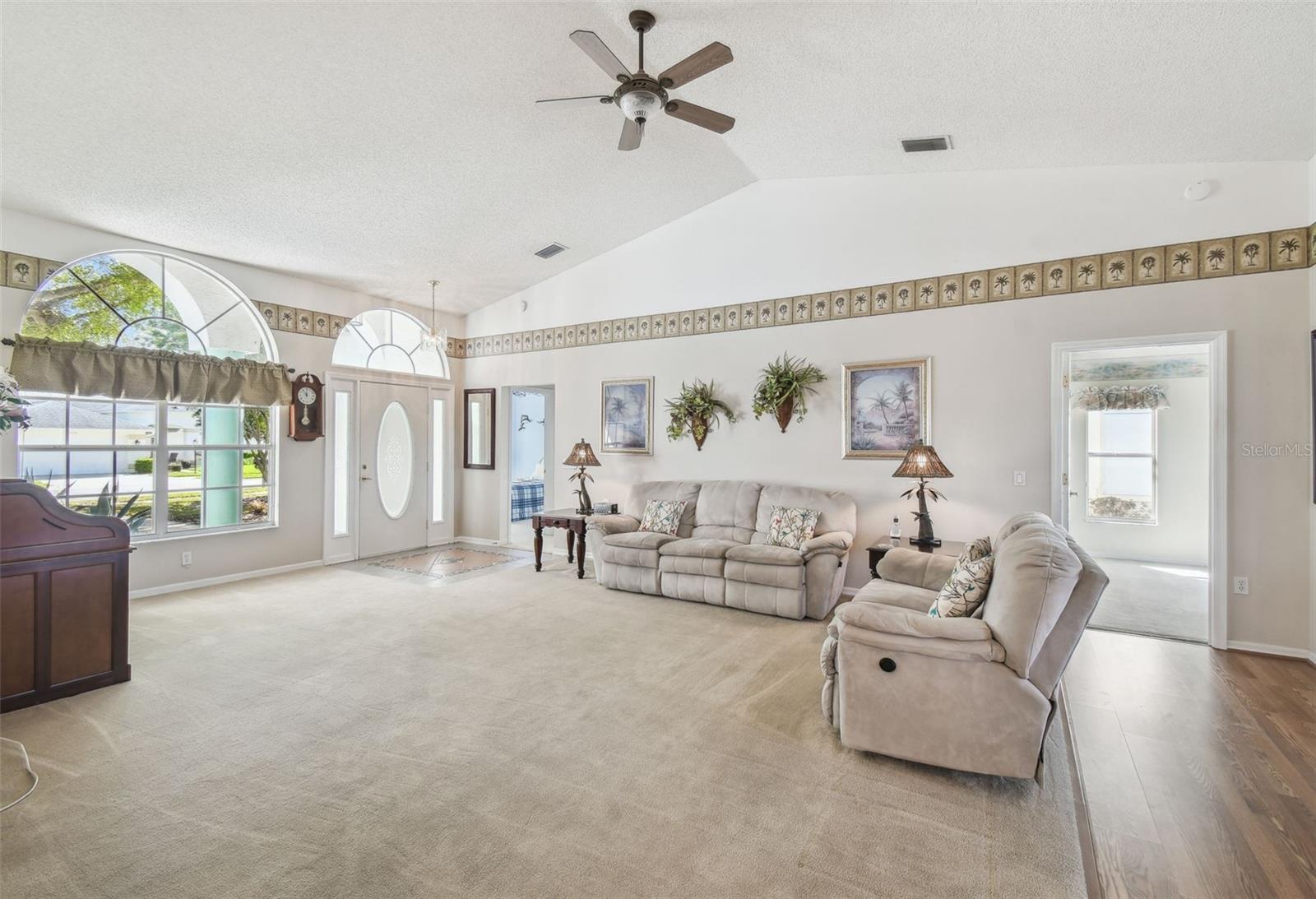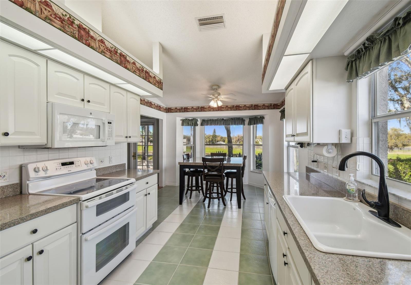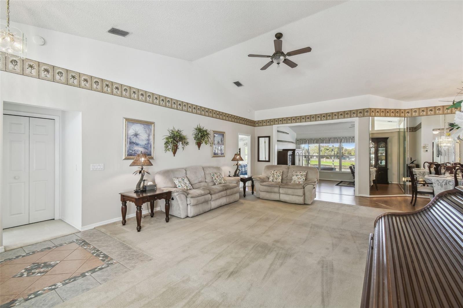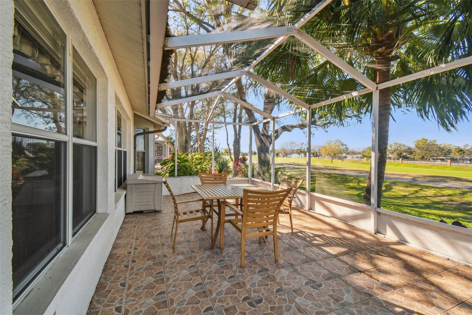 CUSTOM HOME ON GOLF COURSE! THIS HOME HAS MANY EXTRA FEATURES SUCH AS: LIVING/DINING ROOM COMBINATION WITH ACCENT WALL OF MIRRORS; SPACIOUS MASTER BEDROOM WITH BAY WINDOW AND TWO WALK-IN CLOSETS; MASTER BATH WITH WALK-IN SHOWER/JACUZZI TUB/DUAL SINKS/VAULTED CEILING; GUEST BEDROOM WITH ADJOINING FULL BATH; 3RD BEDROOM/DEN/OFFICE; OFFICE/STUDY; BRIGHT KITCHEN WITH ABUNDANT CABINETS & COUNTER SPACE; BREAKFAST ROOMWITH FABULOUS VIEWS TO GOLF COURSE; FLORIDA ROOM TO ENJOY MEDIA AND GAMES; LARGE SCREENED AND TITLED LANAI WITH GOLF COURSE FRONTAGE AND SHADED BY STATELY OAK TREES; EXTENDED SCREENED GARAGE WITH LAUNDRY FACILITIES AND EXTRA CABINETS/STORAGE AND SIDE DOOR ENTRY. AC/HEAT 2024; ROOF 2018; HOT WATER 2021 ENJOY YOUR WINTERS OR RETIREMENT IN THIS ACTIVE ADULT GOLF COURSE COMMUNITY