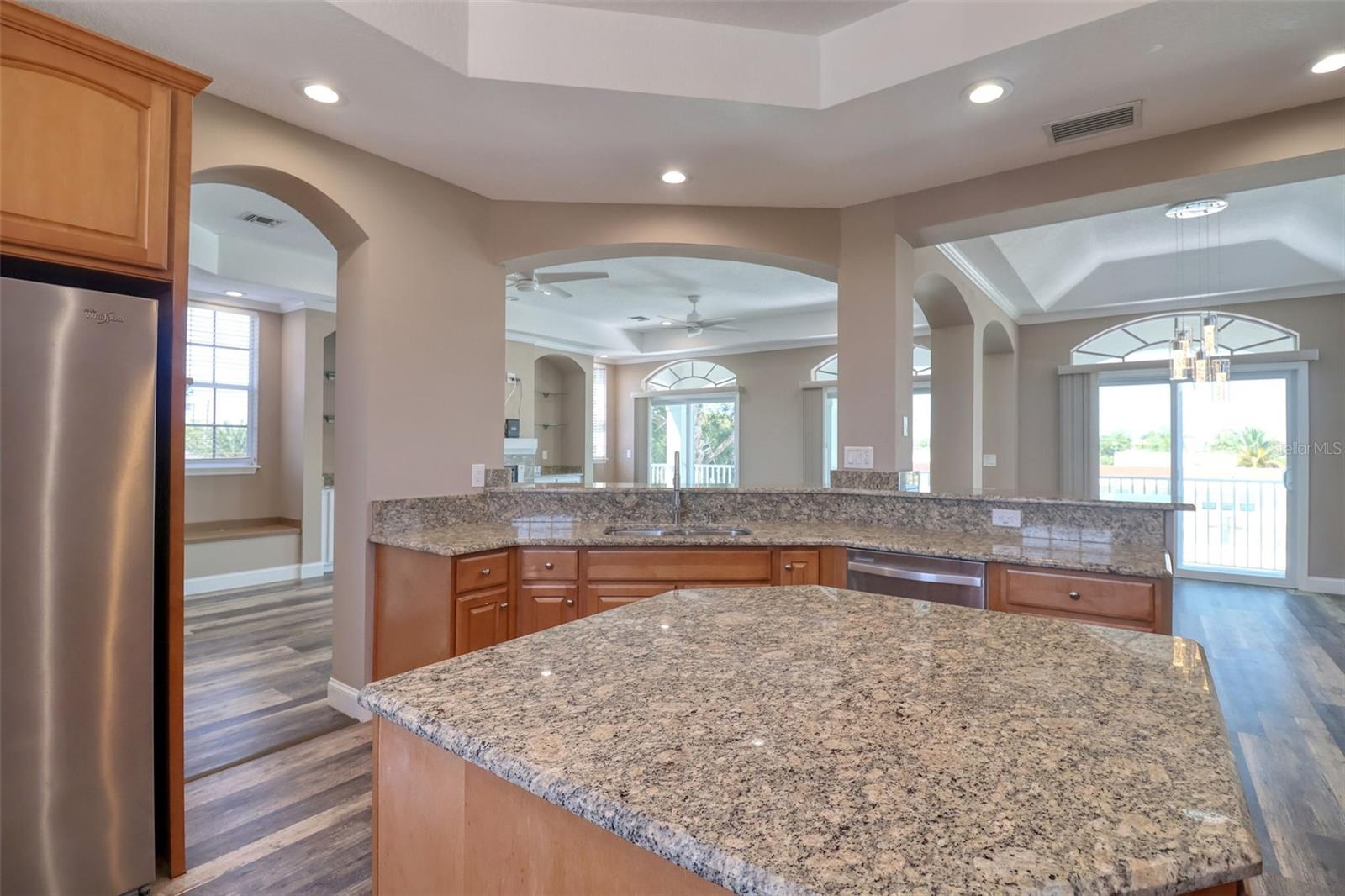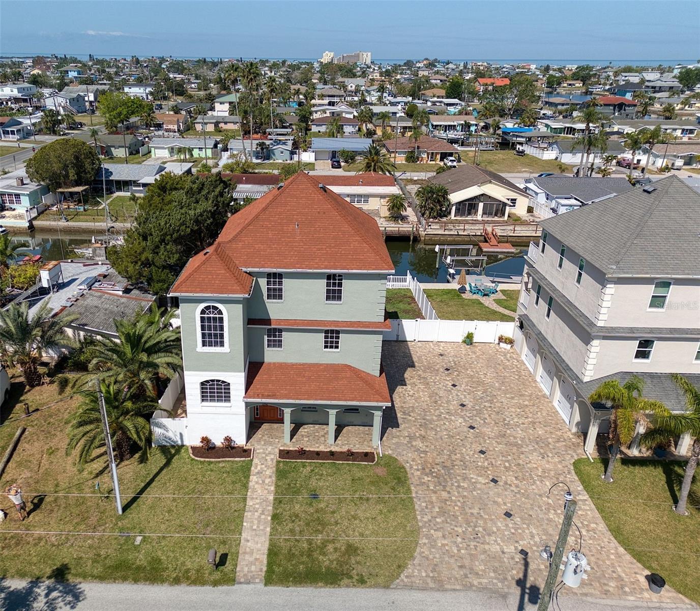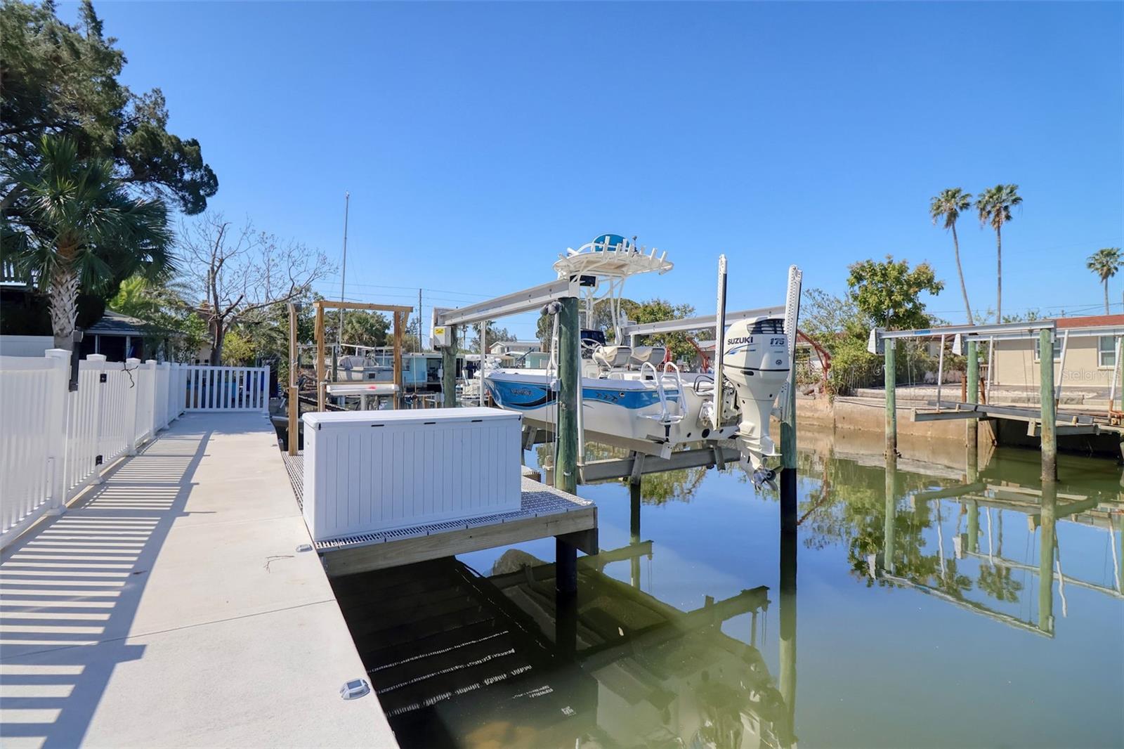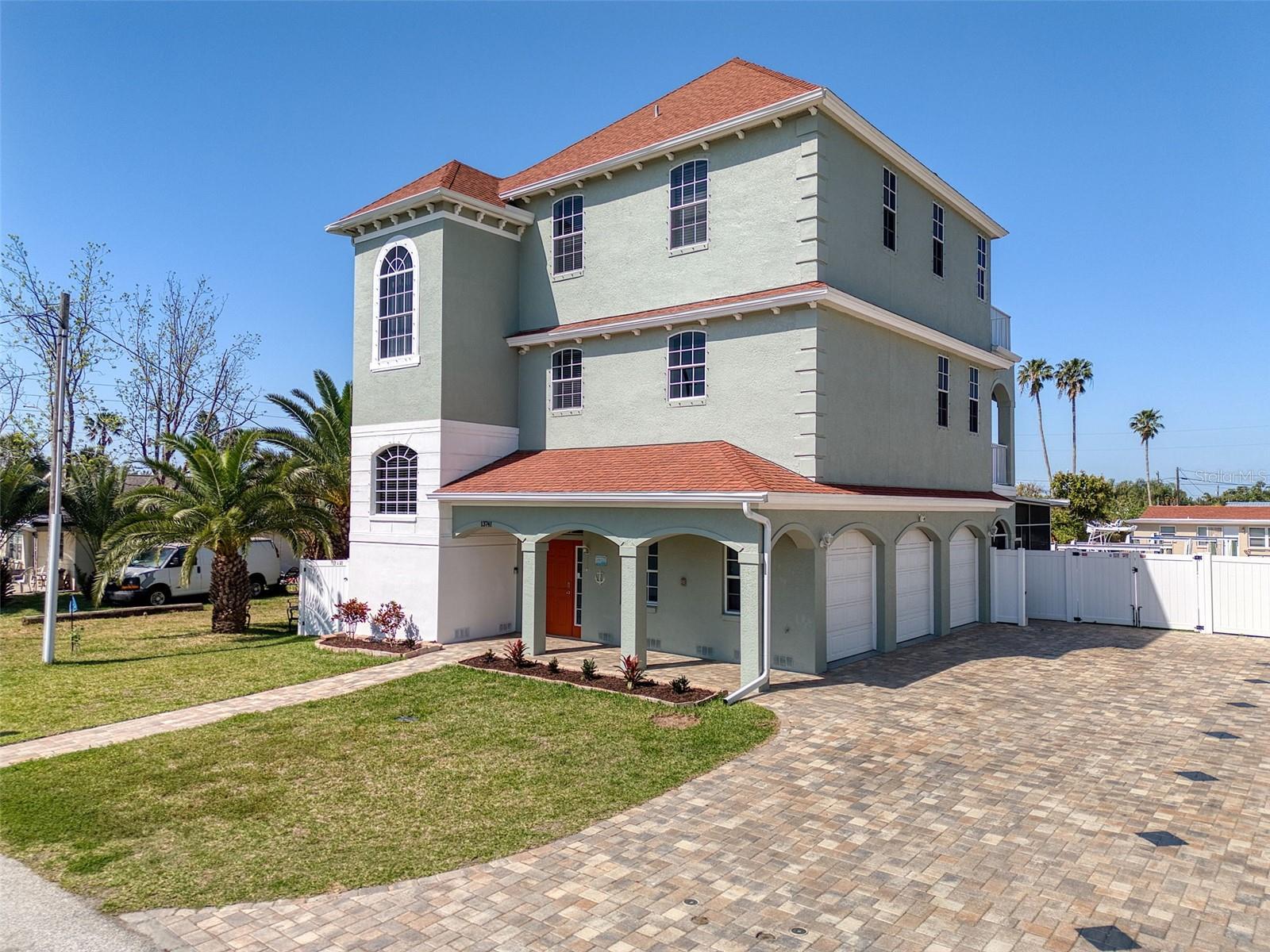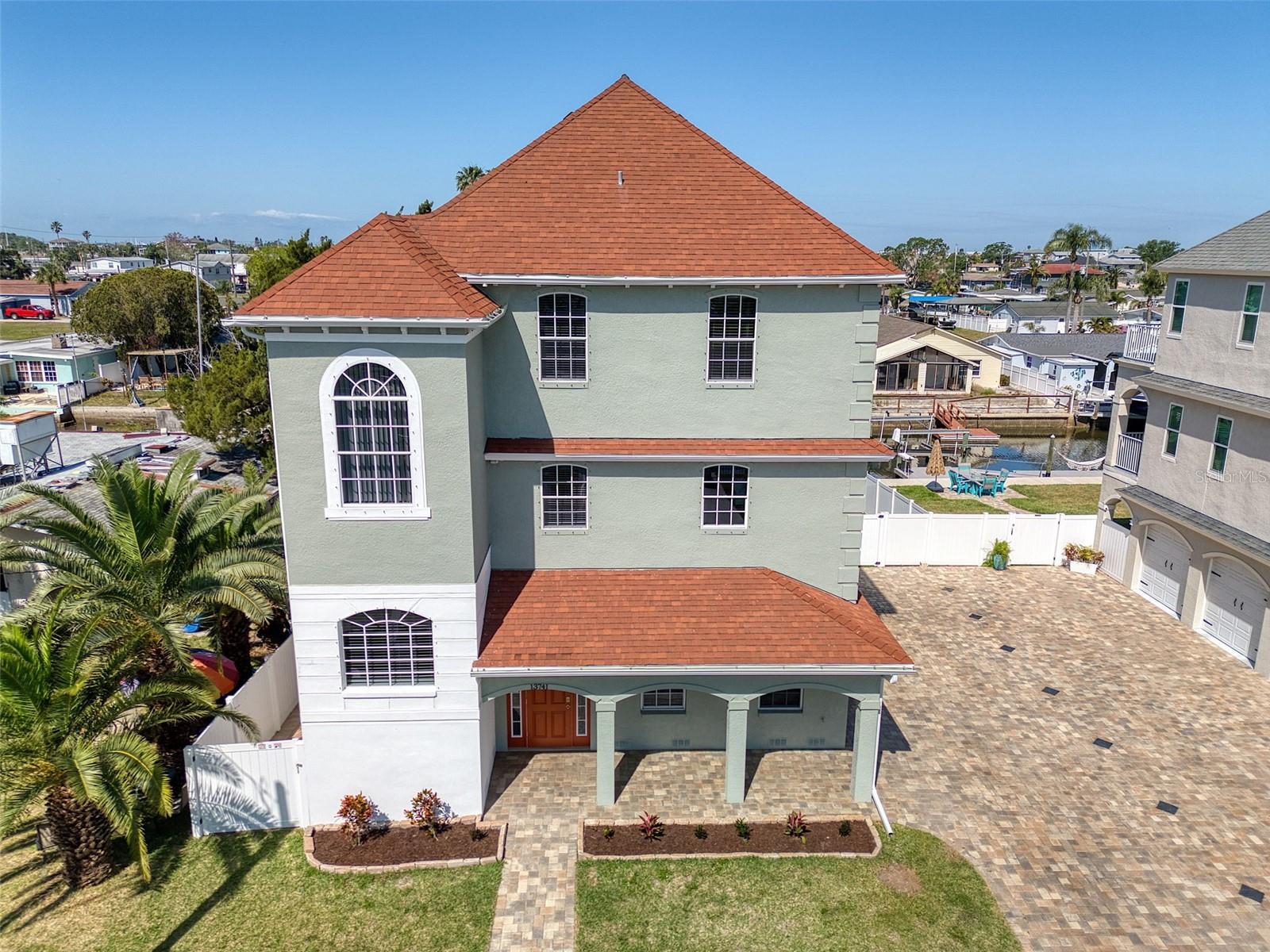 One or more photo(s) has been virtually staged. DIRECT GULF ACCESS with NO HOA and a BOATLIFT! This ELEVATED 3-bedroom, 3-bathroom home offers breathtaking sunsets from the two upper balconies and MOVE IN READY! Must have features including a 10,000 lb boat lift with GEM remote (NEW motors 2025). Fish cleaning station with water and electric. A floating dock with flow thru decking for easy cleaning and easy access kayaking, paddleboarding or your jet ski. Off the 3 car garage you will find a large screened in lanai with shades which is the perfect outdoor entertaining space all year round or sit back and relax after a long day with your favorite beverage. There is also a storage room for all your fishing gear and a 1/2 bath. Upstairs is a spacious, open concept layout with high ceilings, crown molding, large baseboards, waterproof luxury vinyl flooring and a dream kitchen with a large island for entertaining. Double STAINLESS-STEEL oven & appliances, GRANITE countertops and a breakfast bar. 7-NEW impact sliders (2023) and a 1/2 bath complete the 2nd floor main living space. On the 3rd floor you will find your primary bedroom with ensuite, a balcony for sunset views and a walk-in closet with built in shelves and storage. The 2nd bedroom has a walk-in closet and access to the balcony as well. The back yard is completely fenced in for privacy with plenty of space for your fur babies to run. Other notable upgrades include an underground propane line for the fireplace and tankless water heater. Whole house tenting with warranty was done in 2025 as well as NEW interior paint and NEW exterior paint in 2024. NEW 19 SEAR AC UNIT in 2022. Bring the boat and your fishing poles and start living the salt life today! Hudson Beach is a golf cart friendly small coastal town located just north of Clearwater and Tampa with a small public beach, marinas and waterfront restaurants like Sam's Beach Bar, Ollies and Inn on the Gulf just a short ride away. Conveniently located off Hwy 19 with shopping & hospital nearby. And just 15 minutes to the expressway for easy access to downtown Tampa and major airports. Don't miss the opportunity to own this unique waterfront property! PS- the same home is available for sale next door! Ideal for multi-generational living, best friends, grandparents or make it a shared vacation retreat! Call me to schedule a showing today!