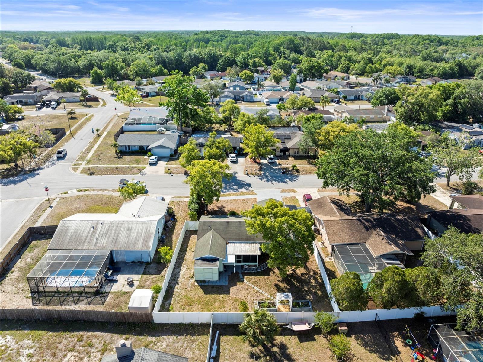 Charming 3-bedroom, 2-bath home freshly painted which features a spacious open floor plan . NEW ROOF being put on before closing- Buyer can pick out the shingle color! NEW AC & Electrical panel too!! A great opportunity for a growing household or those seeking a winter residence. The fully fenced backyard offers ample room to play, entertain, or create your dream garden oasis. Enjoy outdoor living year-round in the screened-in patio and take advantage of the designated gardening area—perfect for planting, potting, or starting your seedlings. The one-car garage has been thoughtfully converted into a workshop but can easily be transformed back into a garage if desired. This home is move-in ready and waiting for your personal touch! Located in the community of Shadow Ridge , which is conveniently located about 5 minutes from the Suncoast Parkway , providing easy access to Tampa and surrounding areas.