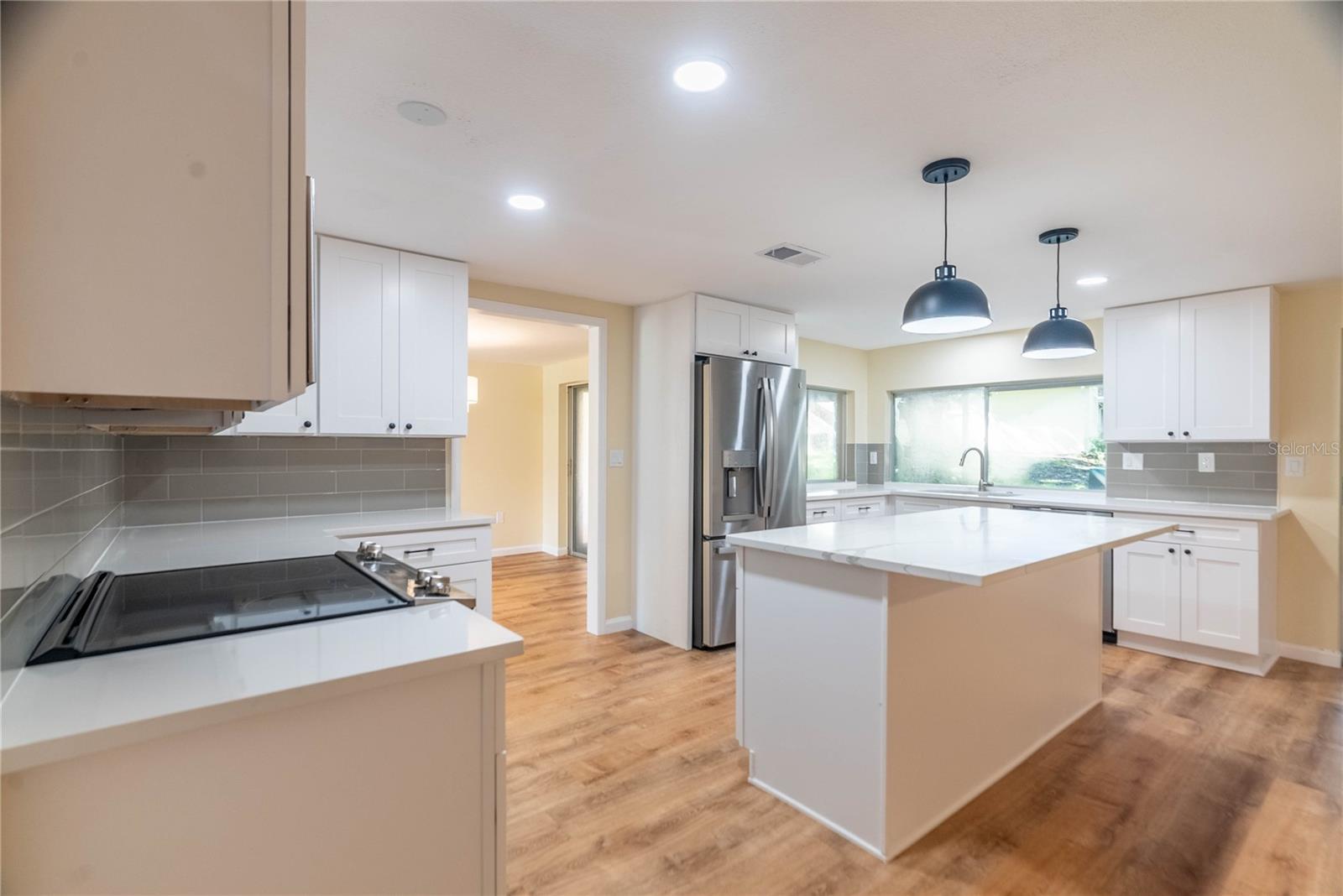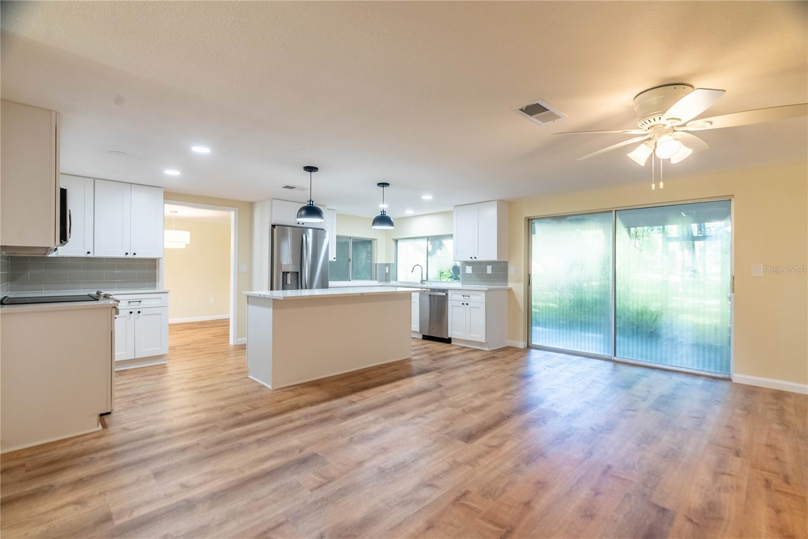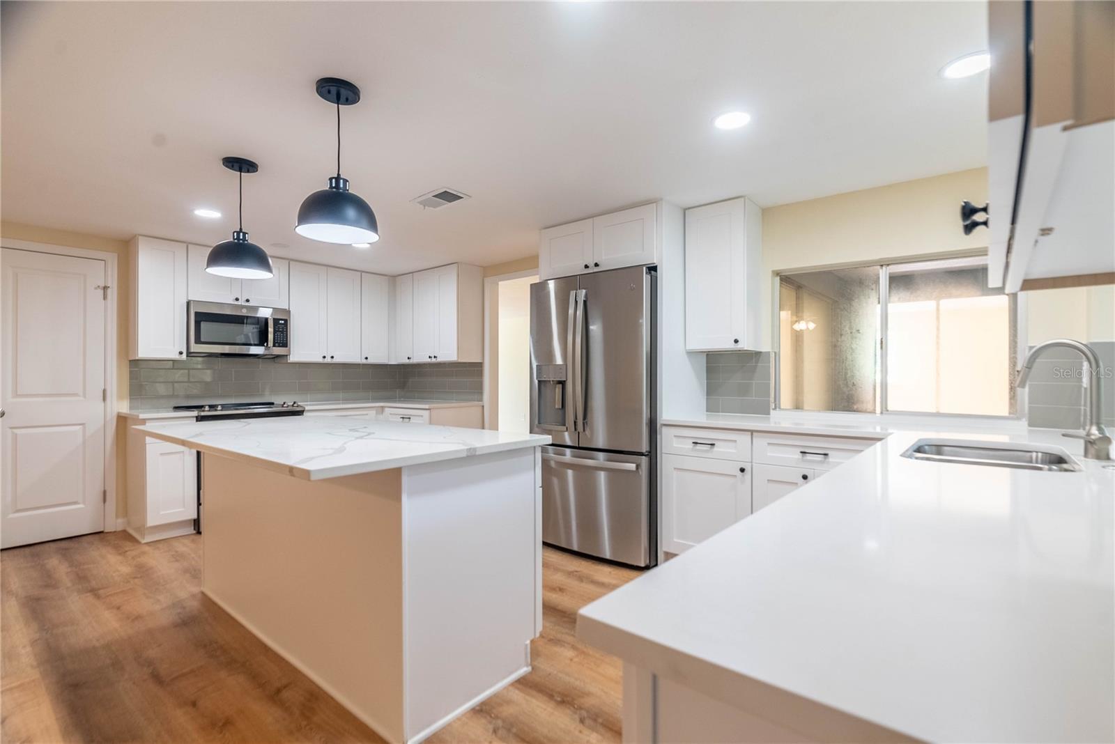 Step into this completely updated 4-bedroom, 3-bathroom gem nestled in the desirable Beacon Woods community. This home boasts a bright, open-concept layout perfect for both everyday living and entertaining. The stunning kitchen features brand-new stainless steel appliances, solid wood cabinetry, and sleek quartz countertops. From the kitchen, sliding glass doors lead you out to a screened-in lanai, offering a peaceful retreat surrounded by mature trees. The spacious primary suite includes a fully renovated ensuite bath and a walk-in closet. Three additional bedrooms are generously sized and share two updated full bathrooms. A new roof was installed in 2022, giving you peace of mind for years to come. New hurricane windows will be installed in all 4 bedrooms and a new front door is also being installed. Additional features include an attached two-car garage and a convenient laundry room. Located in a golf course community, residents enjoy access to a clubhouse, pool, tennis and basketball courts, shuffleboard, and more—plenty of options to stay active and social!